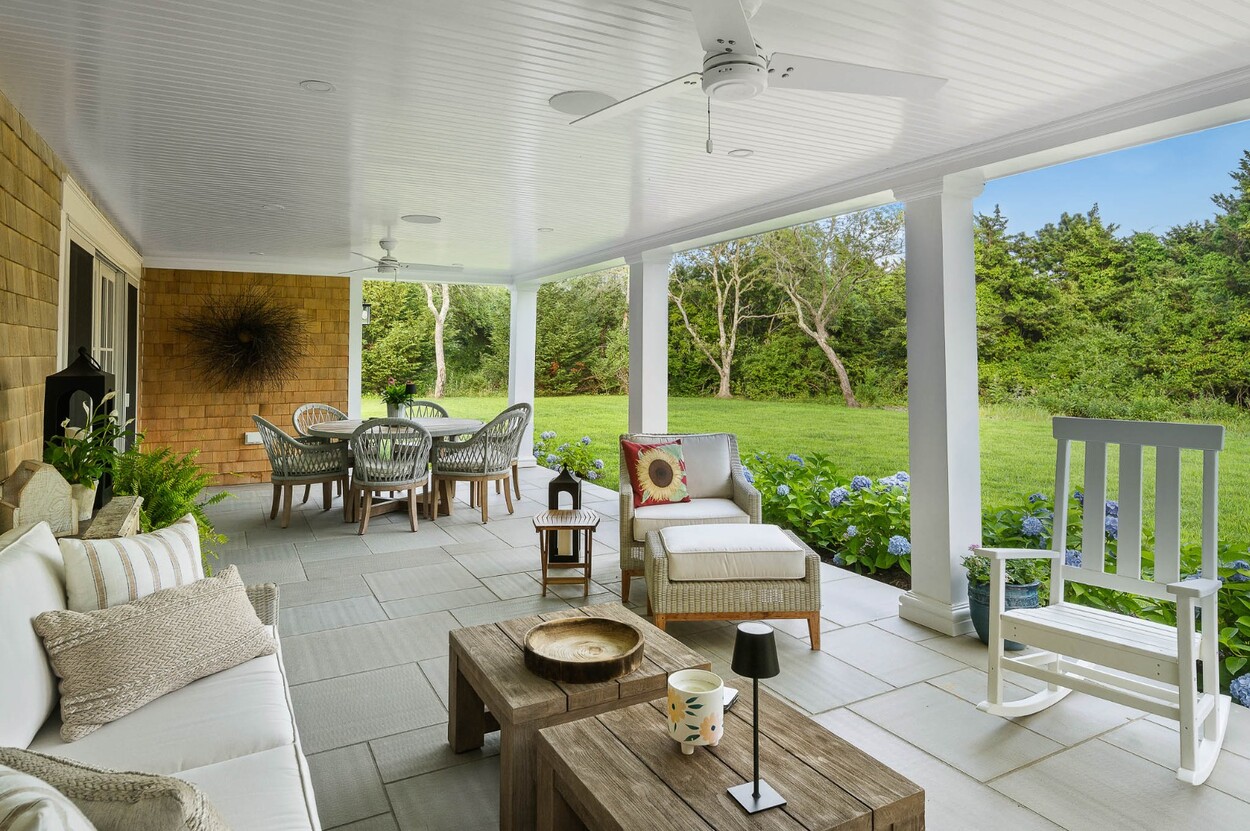 Stunning Katama Retreat ~ Welcome to this newly constructed architectural gem, nestled on half an acre in the heart of Katama. Perfectly positioned just blocks from the Field Club, close to South Beach, the bike path, and Edgartown Village, this home offers the ultimate indoor-outdoor Martha’s Vineyard lifestyle. The elegant entryway sets the tone, leading into a spectacular vaulted living room anchored by a floor-to-ceiling stone fireplace. Oversized doors open seamlessly to a professionally landscaped backyard—offering privacy and ample space for a future pool. Designed for effortless entertaining, the open-concept living and dining areas flow into a gourmet kitchen outfitted with top-of-the-line appliances and an oversized island perfect for casual gatherings. The adjacent covered patio, complete with a gas fireplace, is a true outdoor haven for relaxing or hosting guests. Thoughtfully designed for everyday ease, the home features a smartly tucked-away mudroom, laundry area, a stylish half bath, and a quiet den off the front entrance. The first-floor primary suite offers a peaceful retreat, with dual walk-in closets, a spa-like bath with soaking tub and glass shower, and direct access to an outstanding three-season room. Upstairs, discover a charming lounge loft with built-in beds and a desk—ideal for lounging and overflow. Two additional bedrooms each offer unique character: one features a private deck and en-suite bath, and the other boasts its own den/seating area, as well as access to a luxurious full bath with a double-sink vanity. The home's exterior is equally striking, from the pea stone driveway to the covered front and rear porch with fireplace—destined to be your favorite gathering spot. With its exceptional design, premium finishes, and ideal location, this is a rare opportunity to own a true Katama treasure.