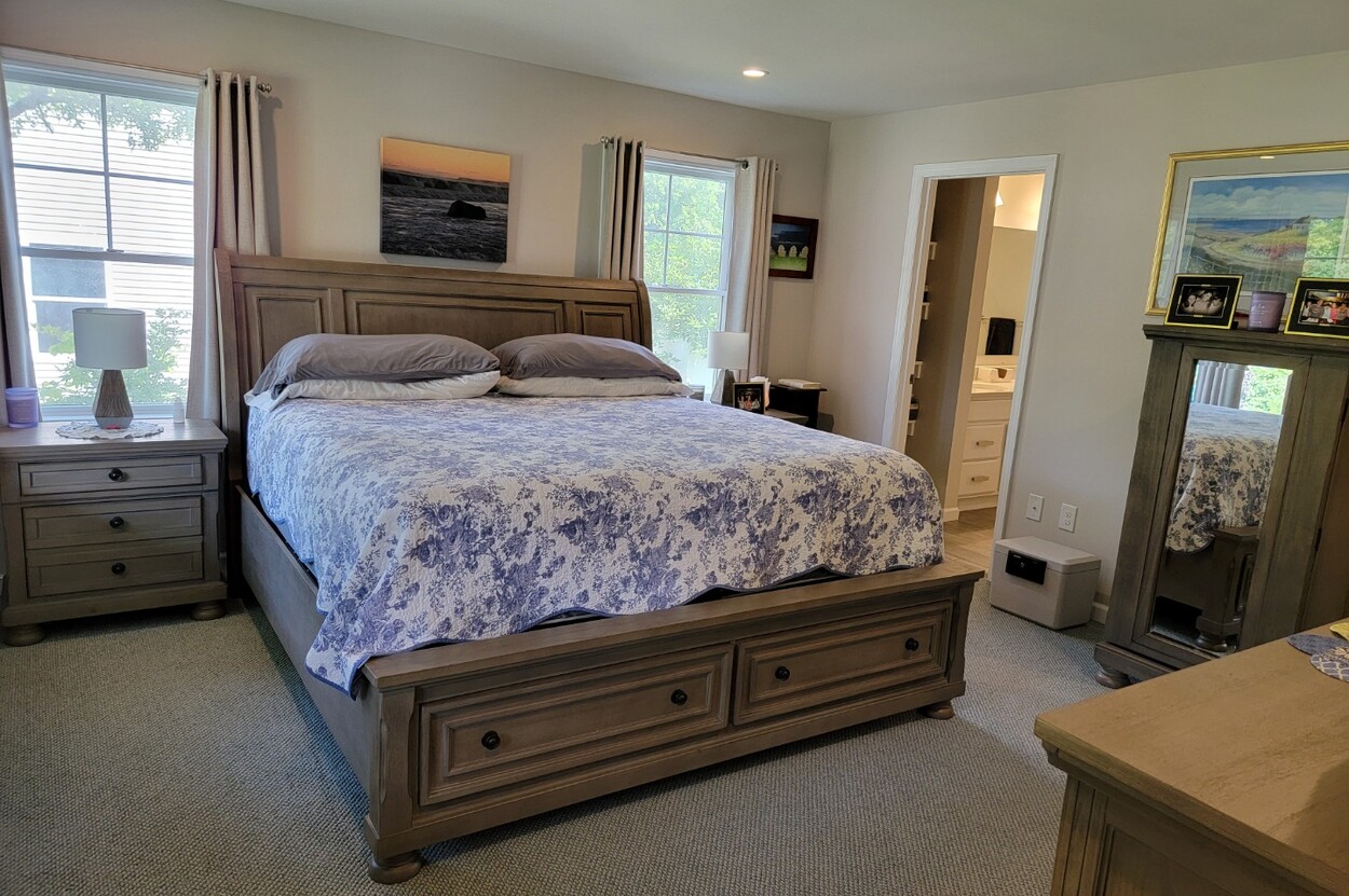 Inside, spread out across 4,032 square feet of well-designed space, you'll find five spacious bedrooms and three and a half bathrooms. The main floor boasts a primary suite with an ensuite bathroom and a roomy walk-in closet—ideal for your personal retreat.