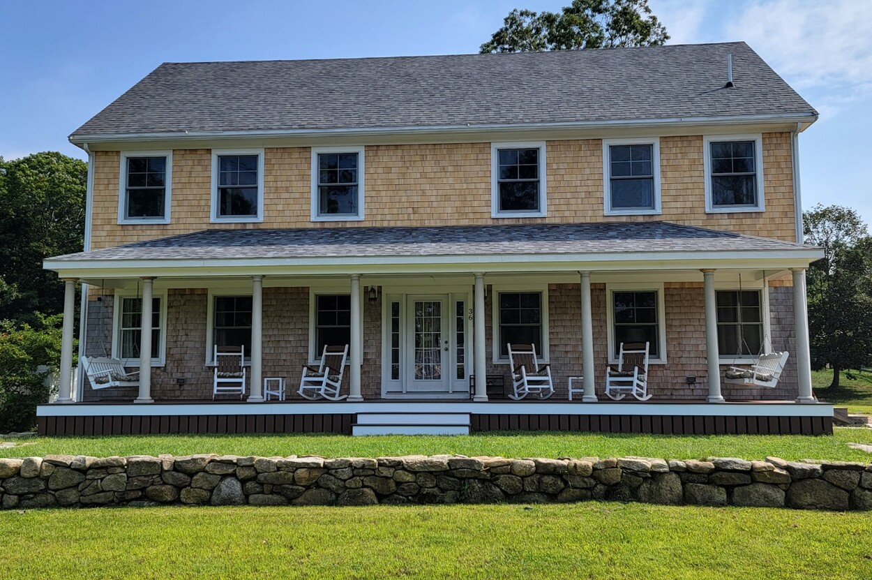 Welcome to 36 Ferro Way in beautiful Tisbury, MA! This stunning Colonial-style home, built in 2020, is where classic charm meets modern comfort. As you step onto the inviting farmer’s porch, you can immediately feel the warmth this home exudes.