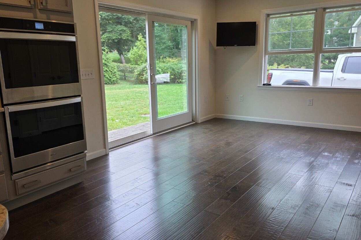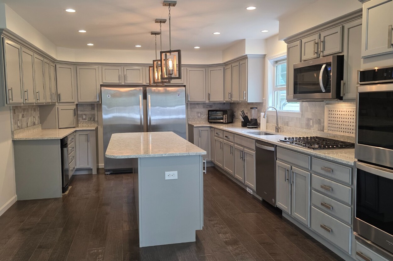 The heart of this home is its expansive eat-in kitchen, perfect for those who love to cook and entertain. Equipped with dual ovens and a gas stove, along with high-end cabinetry and elegant countertops, it's a chef’s dream come true. The kitchen flows seamlessly into the living areas, making it perfect for gatherings.