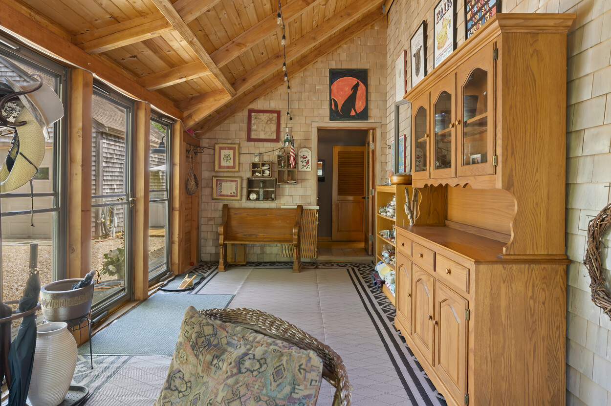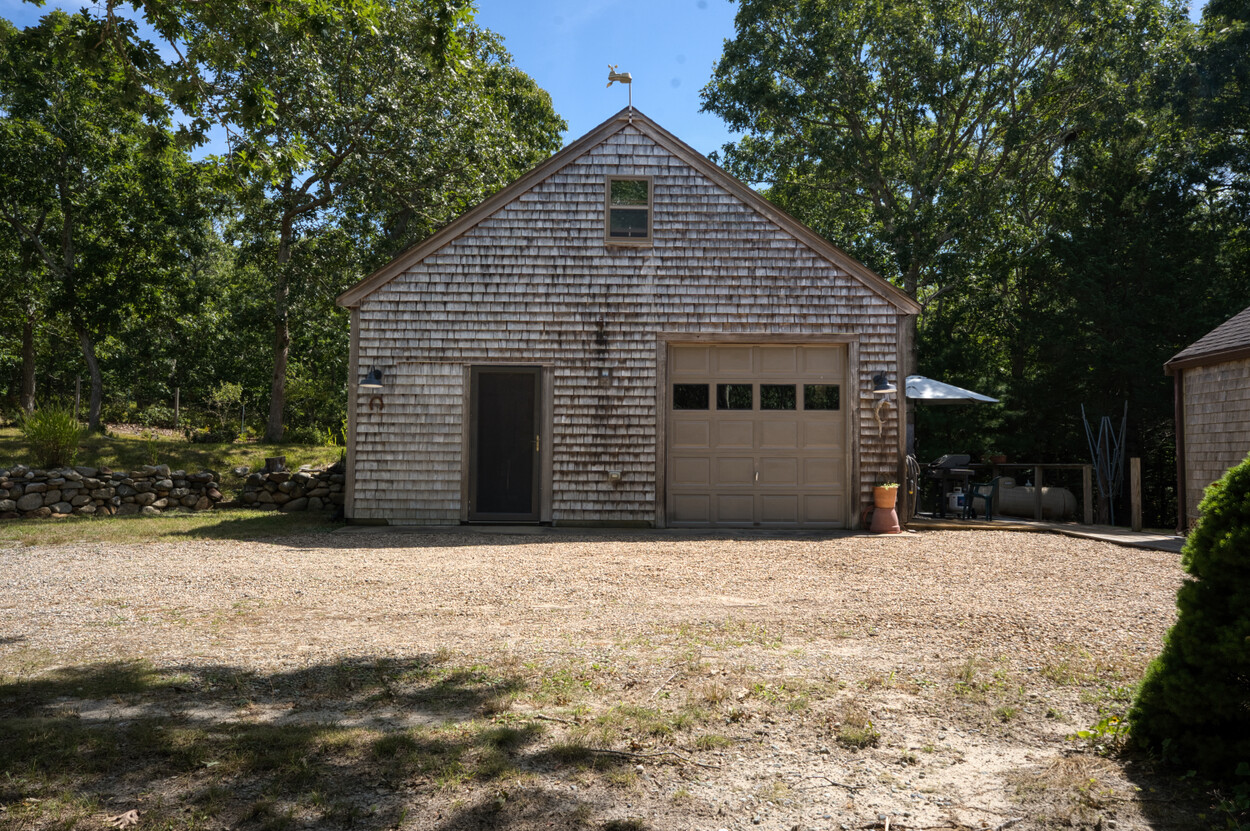 Tucked away behind association common land, this year-round compound offers the perfect blend of privacy, space, and flexibility. The post-and-beam main house features four bedrooms and combines timeless character with functional design, ideal for everyday living or seasonal enjoyment. A separate two-bedroom guest house with a welcoming farmer’s porch is thoughtfully sited to ensure privacy and independence, complete with its own driveway and parking. The detached garage, with a loft above, adds even more versatility—ideal for storage or future finished space. Situated on one of the largest parcels in the Smith Hollow Association, the property enjoys a tranquil, park-like setting. With direct access to the bike path at the end of the road, you're just minutes from Edgartown and all down-island amenities. More than just a house—this is a place to call home.