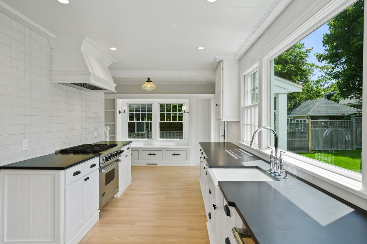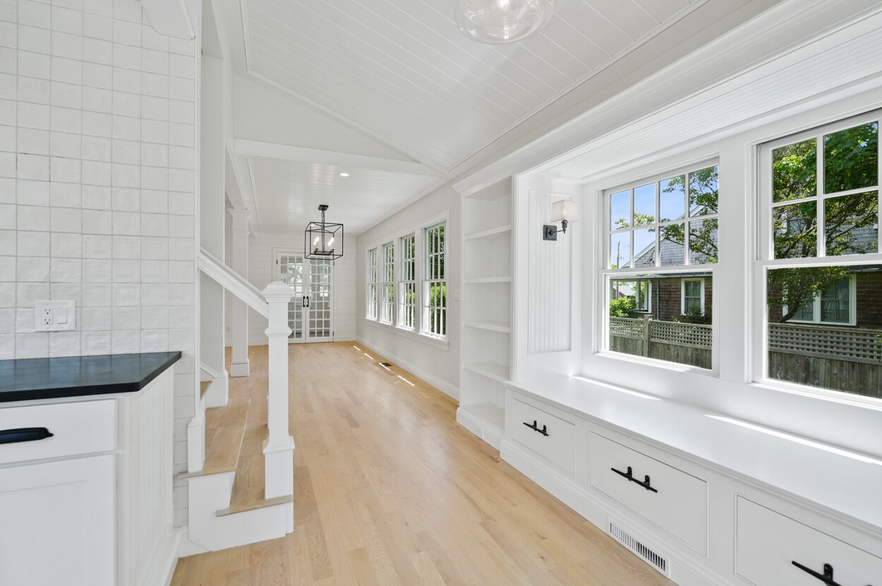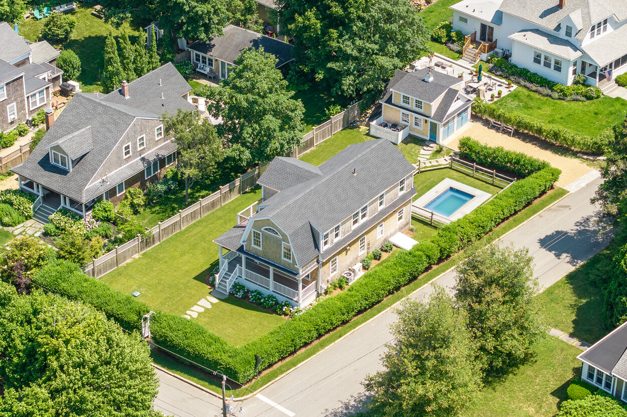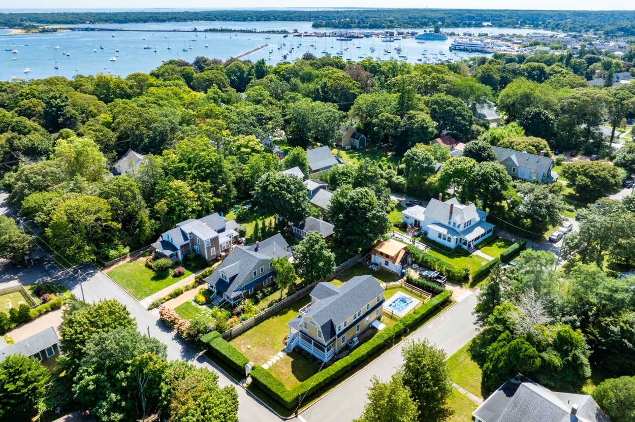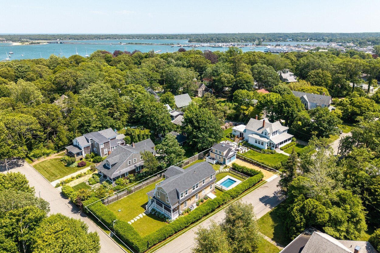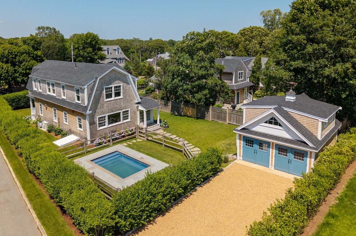 This beautifully renovated gambrel-style home in Vineyard Haven seamlessly blends classic charm with modern luxury. This pristine residence is nestled within a private, hedge-lined yard in one of Vineyard Haven’s most quiet and quaint neighborhoods. With the new heated salt-water pool, lovely plantings, and beautiful gardens, no detail has been overlooked. The property also features a renovated garage with an unfinished second level, perfect for a creative studio. Inside, the home exudes warmth and elegance, with wide pine flooring, custom craftsmanship, and intricate wood detailing on the ceilings. The spacious living room, centered around a gas fireplace, is both inviting and stylish. The sunlit kitchen, equipped with top-of-the-line appliances and refined finishes, includes a cozy window seat that adds to its charm. The primary bedroom suite offers a serene retreat, complete with a private tile bath and access to a 2nd-floor deck. The three additional bedrooms are equally comfortable and well-appointed, providing ample space for guests. The lower level is partially finished and offers the potential to expand your living space further, ideal for a home theater, gym, or playroom. Spend your days soaking in this privacy that this tranquil abode provides, or take advantage of its ideal location to access the hustle and bustle of downtown Vineyard Haven where you can enjoy various galleries, shops, and fine dining. This location is also convenient to Owen Park Beach, West Chop and Mink Meadows Golf Club.