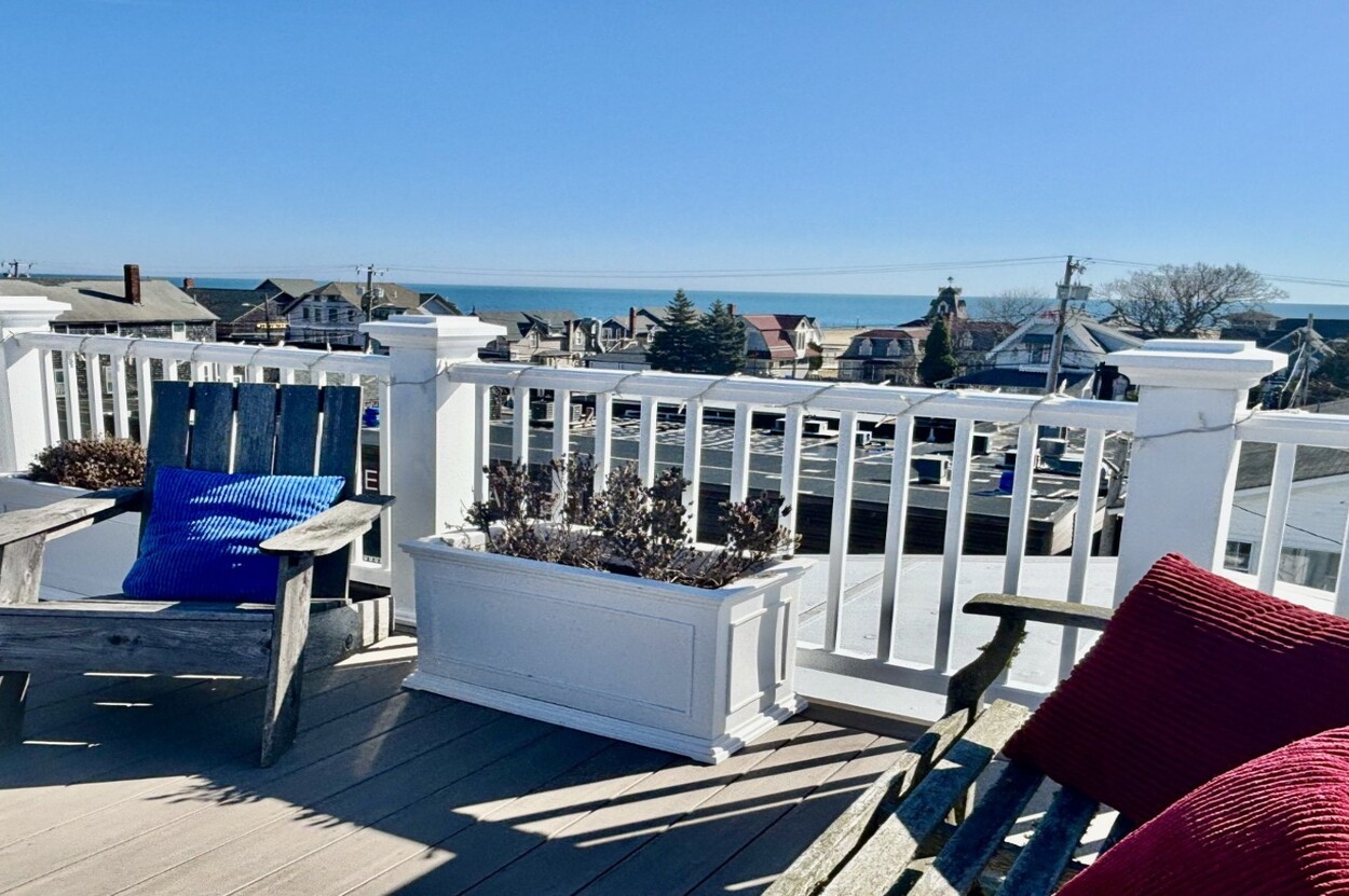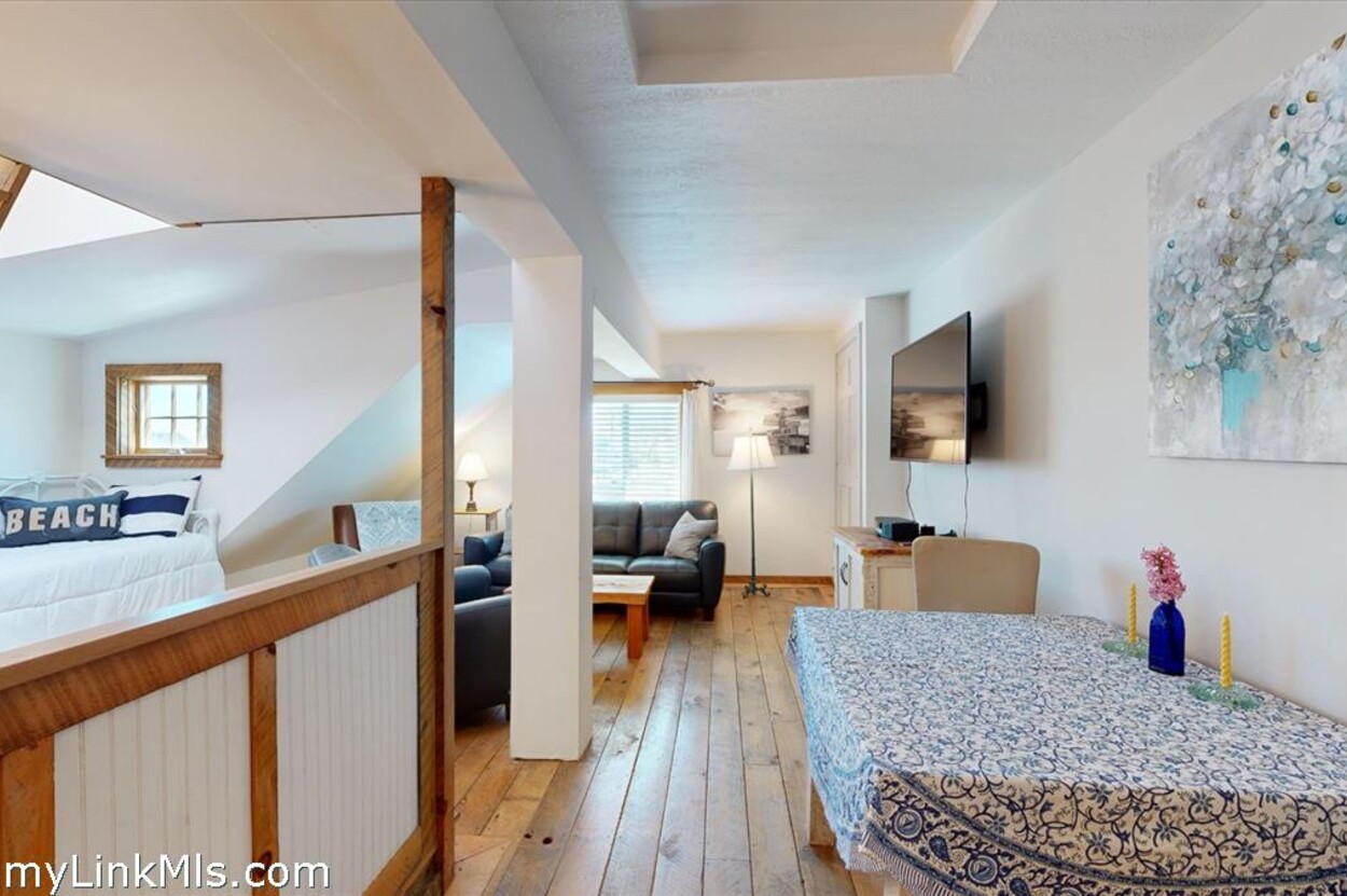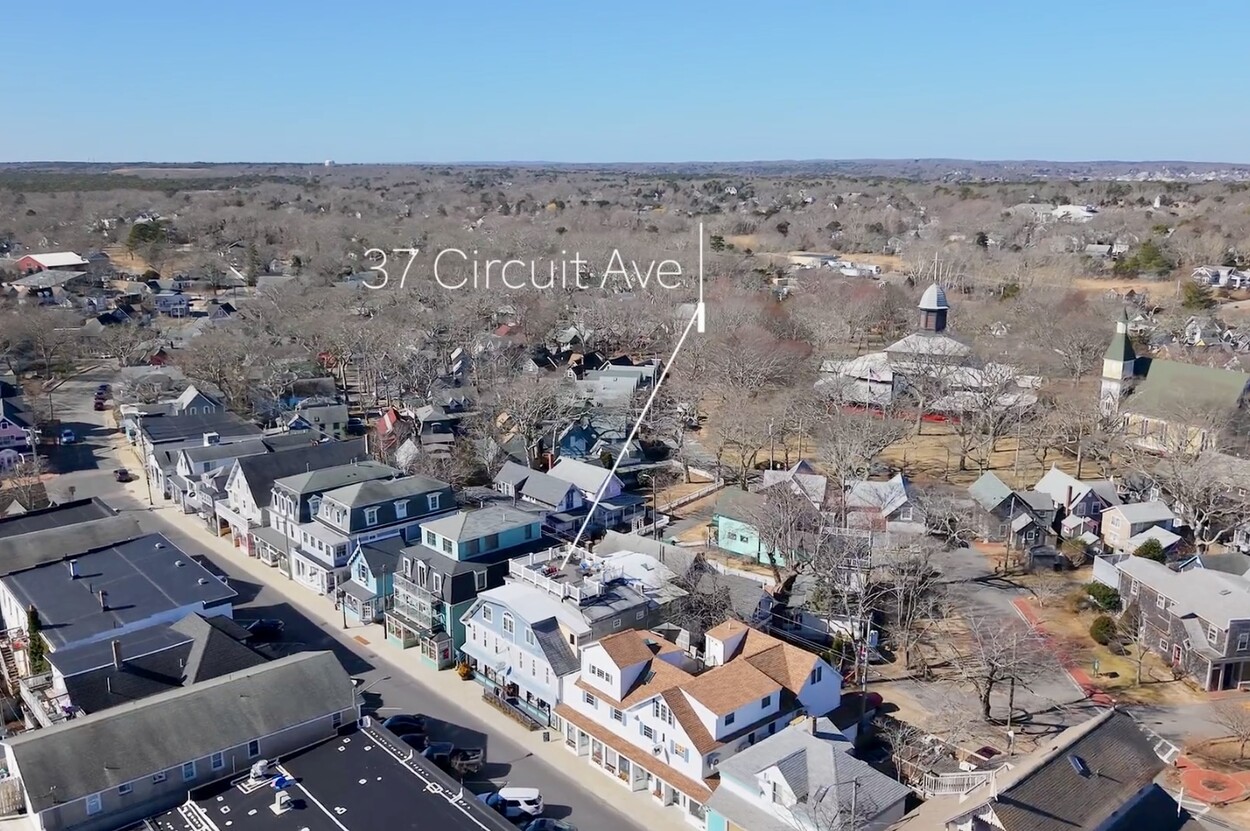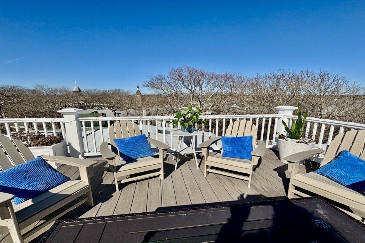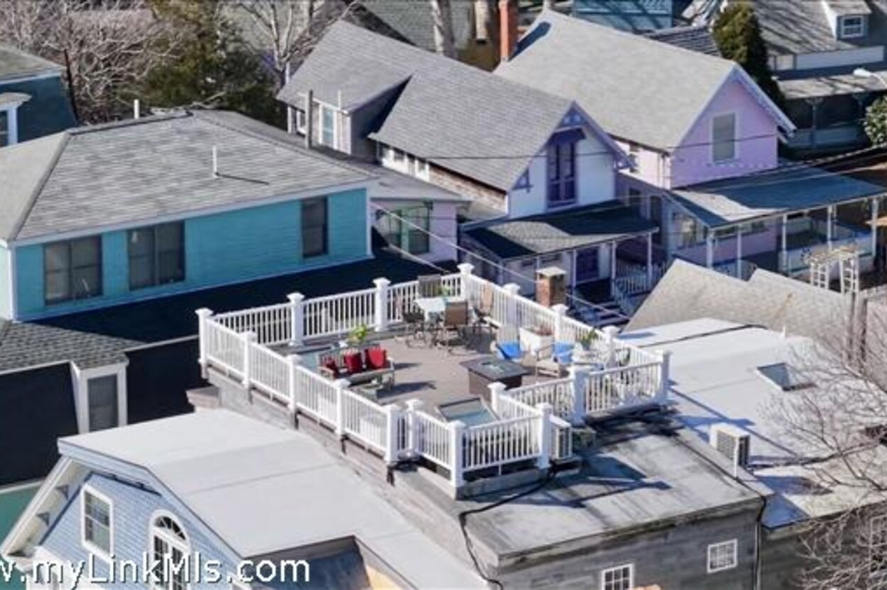 In the heart of Downtown Oak Bluffs Restless Winds Unit #5 comes with an amazing roof top deck shared with only one other condo (unit #4). You're in the middle of it all with this great location, yet you have easy access to a private and peaceful deck overlooking the town of Oak Bluffs and the surrounding waters. This incredible space takes you to another level of relaxation and a birds eye view of Downtown Oak Bluffs. Sit back and watch the boats come into the harbor at one of the many seating areas or enjoy diner al fresco under the stars. This spacious unit has many custom wooden features including a staircase leading to the rooftop deck creating a storage area and sleep nook with daybed. Take a step down to the comfortable living area. With hardwood floors throughout, the kitchen and dining area are divided with custom cabinetry. The spacious bedroom has an additional alcove area with pull down skylight, ideal for an exercise area or office. A tiled bathroom with full tub and shower can be entered off the hall or bedroom. A separate Laundry room is shared by 2 other units.