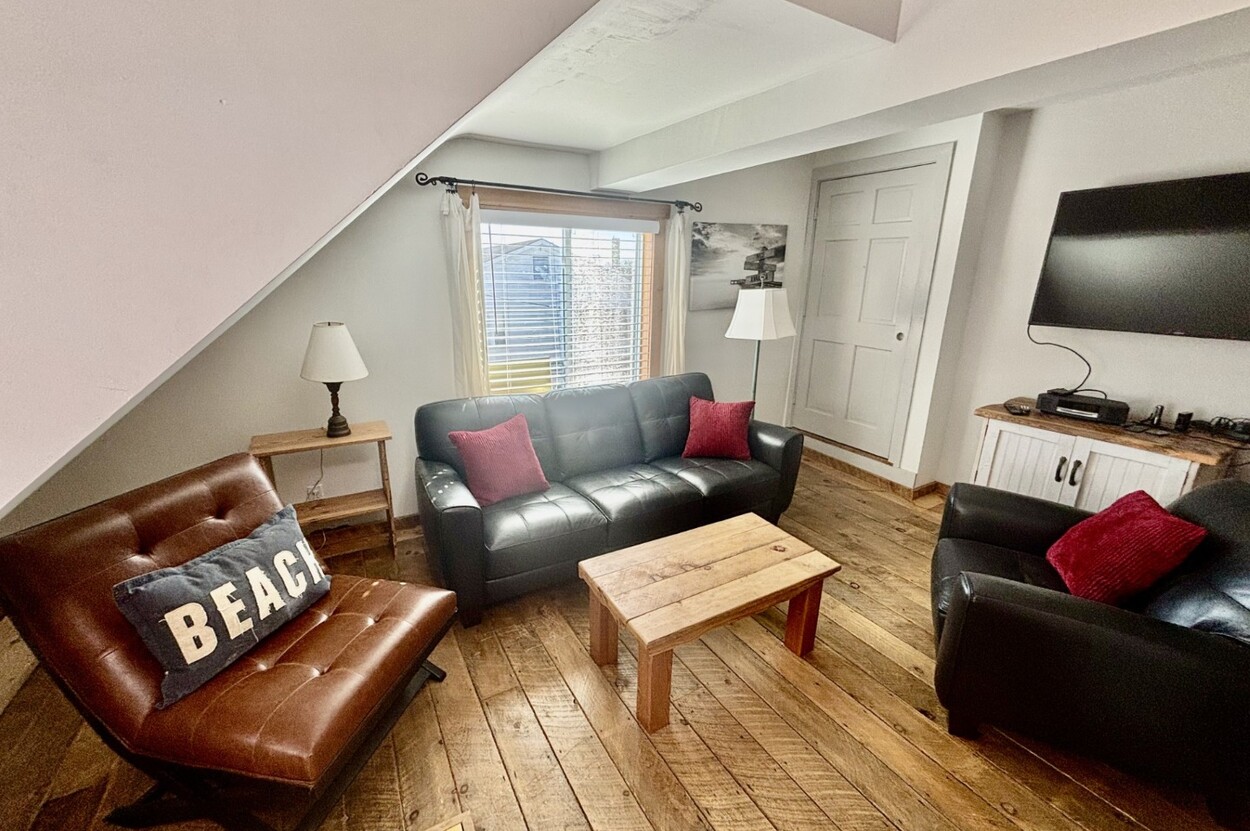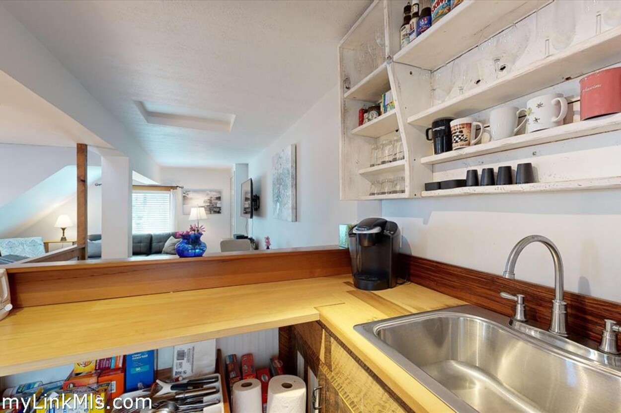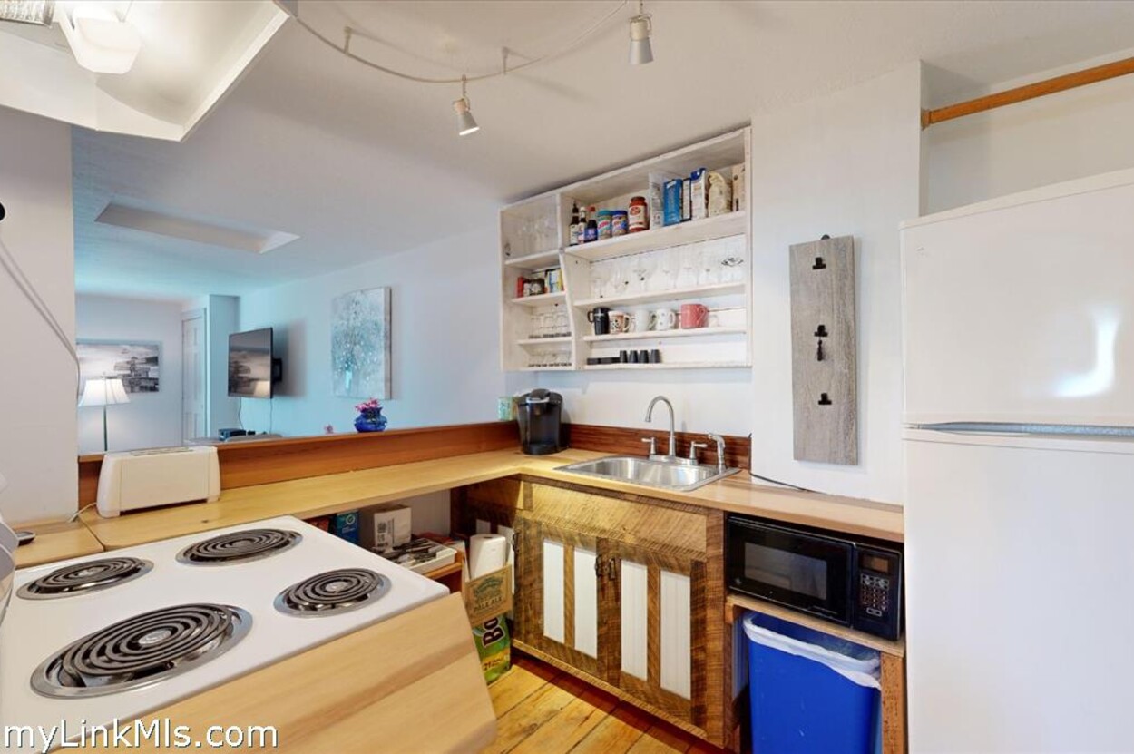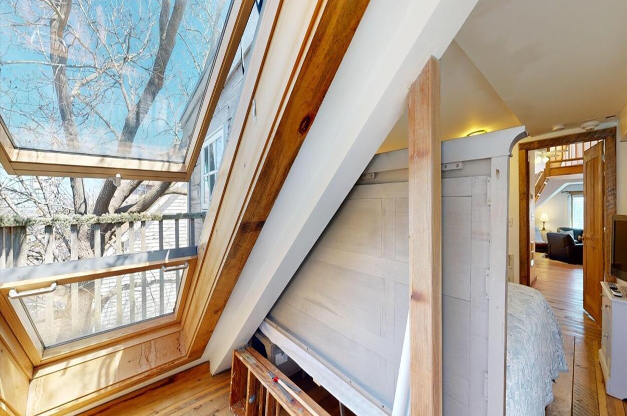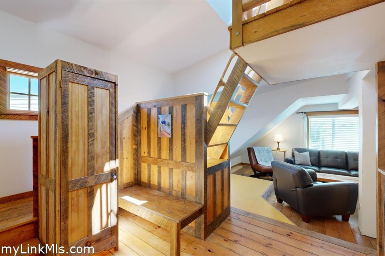 In the heart of Downtown Oak Bluffs Restless Winds Unit #5 comes with an amazing roof top deck shared with only one other condo (unit #4). You're in the middle of it all with this great location, yet you have easy access to a private and peaceful deck overlooking the town of Oak Bluffs and the surrounding waters. This incredible space takes you to another level of relaxation and a birds eye view of Downtown Oak Bluffs. Sit back and watch the boats come into the harbor at one of the many seating areas or enjoy diner al fresco under the stars. This spacious unit has many custom wooden features including a staircase leading to the rooftop deck creating a storage area and sleep nook with daybed. Take a step down to the comfortable living area. With hardwood floors throughout, the kitchen and dining area are divided with custom cabinetry. The spacious bedroom has an additional alcove area with pull down skylight, ideal for an exercise area or office. A tiled bathroom with full tub and shower can be entered off the hall or bedroom. A separate Laundry room is shared by 2 other units.
