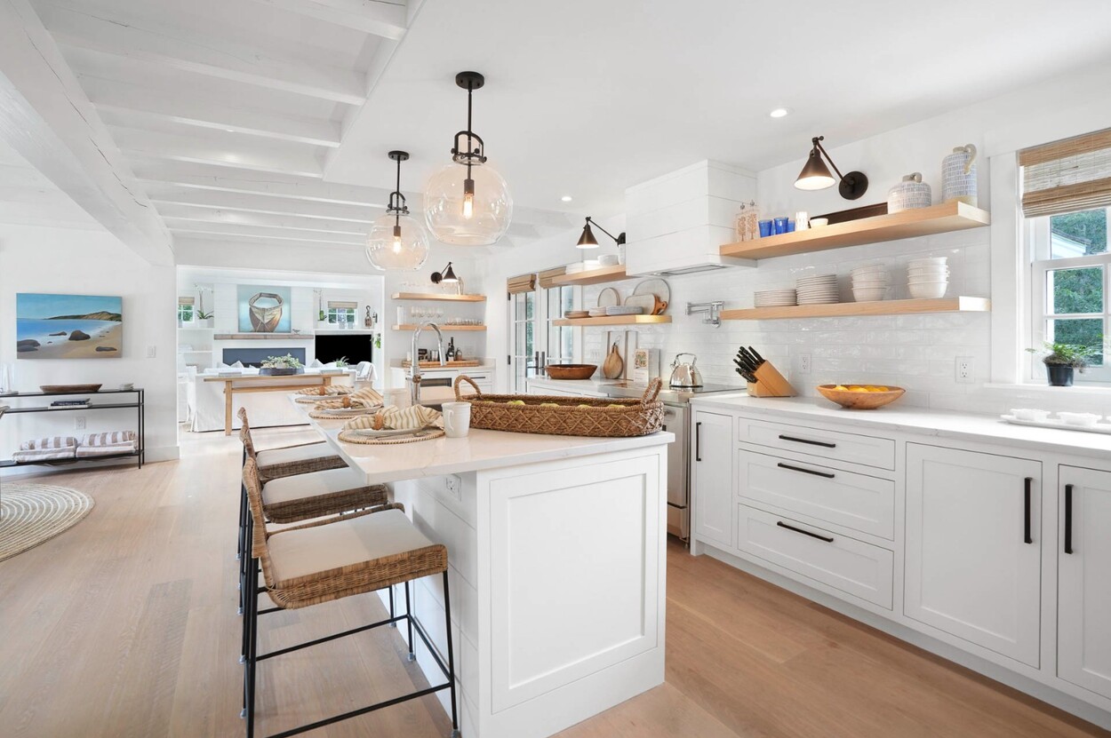 The residence offers fresh and inviting living spaces featuring Rubio® finished hardwood floors, custom shiplap and paneling details, custom built-ins, designer light fixtures and more! Every detail has been thoughtfully curated to balance understated elegance with coastal comfort.