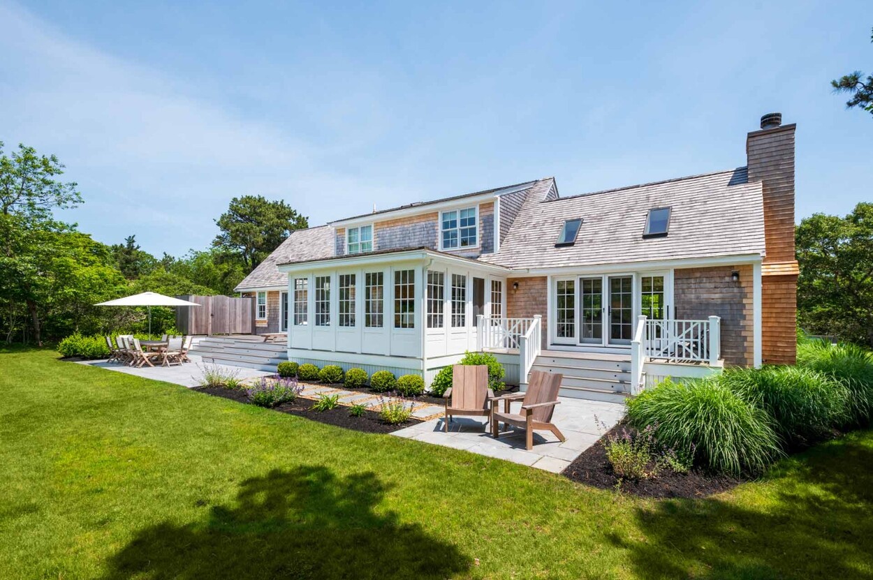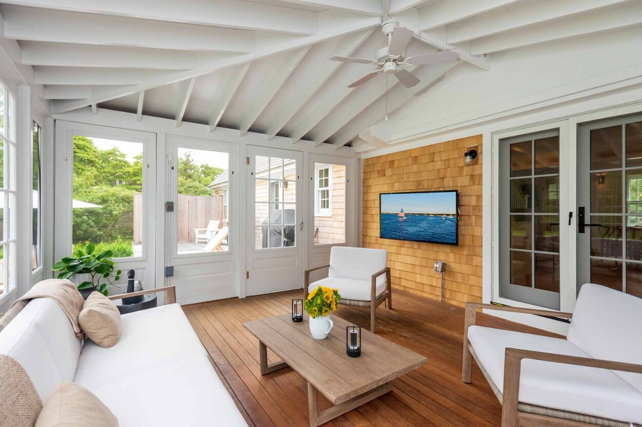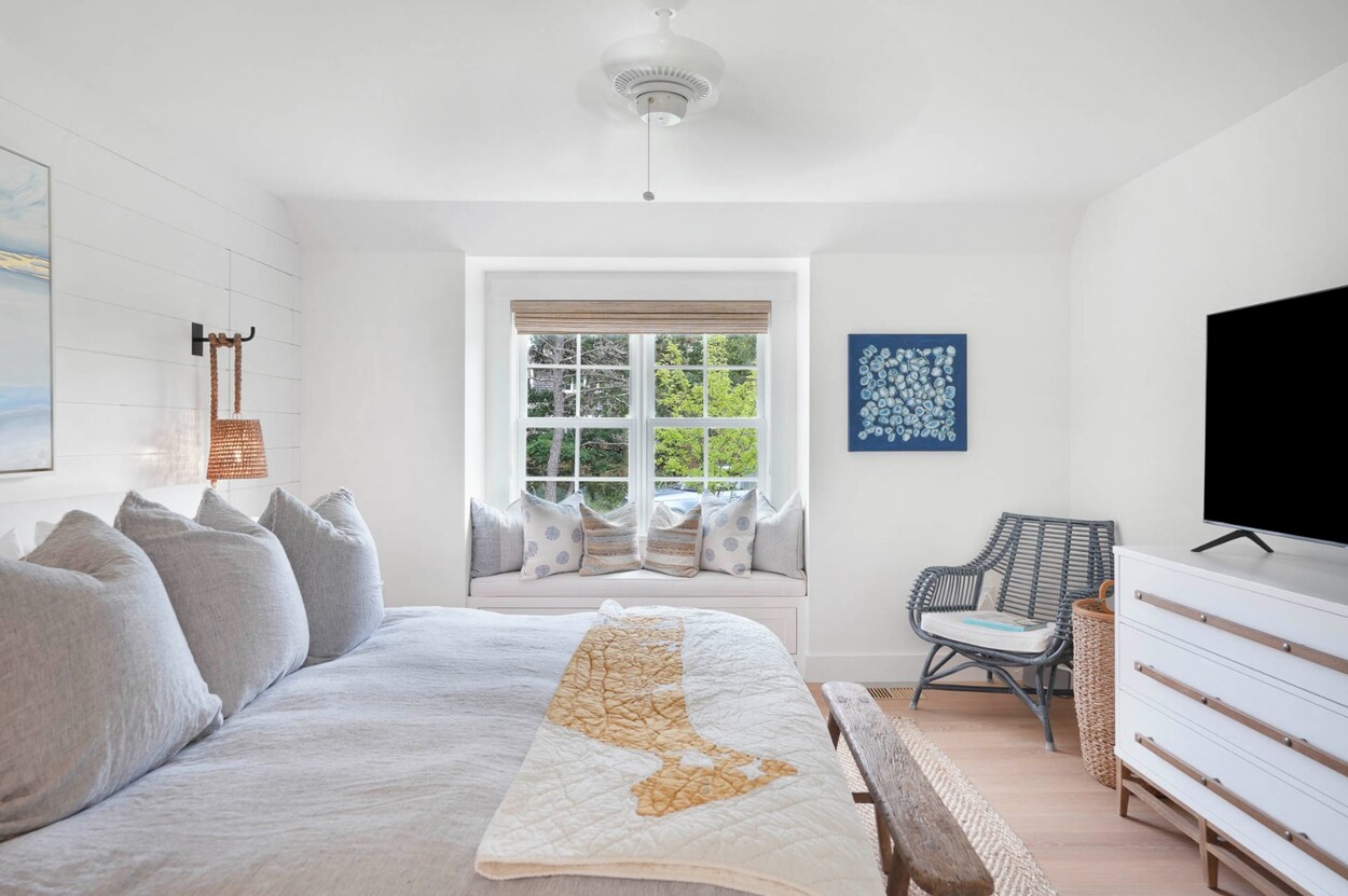 Set behind a charming white picket fence lined with blooming hydrangeas, this beautifully reimagined Edgartown property blends classic island character with all the benefits of new construction. Renovated from top to bottom in 2024 by a top-tier island builder and pursuant to custom plans, the home is essentially brand new — offering immediate comfort and timeless style, with the rare opportunity to expand into a fully customized luxury compound.