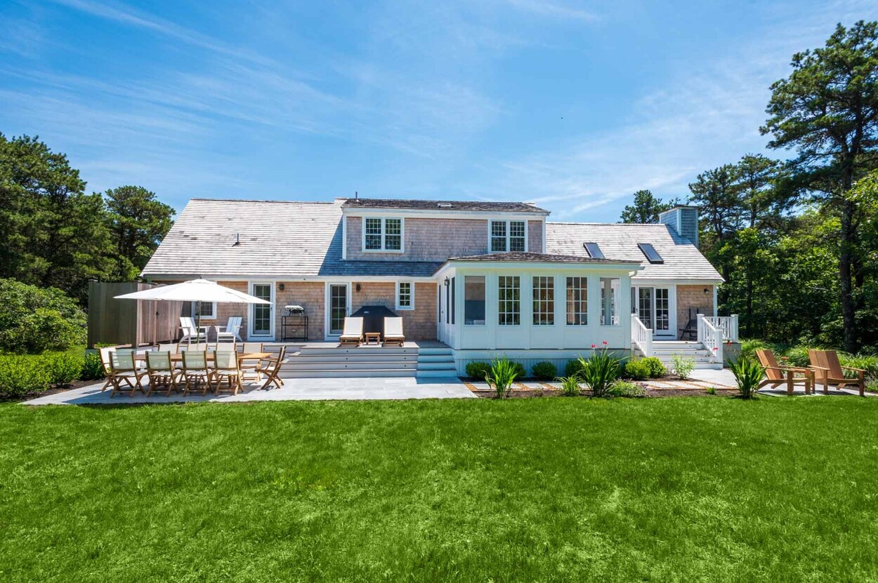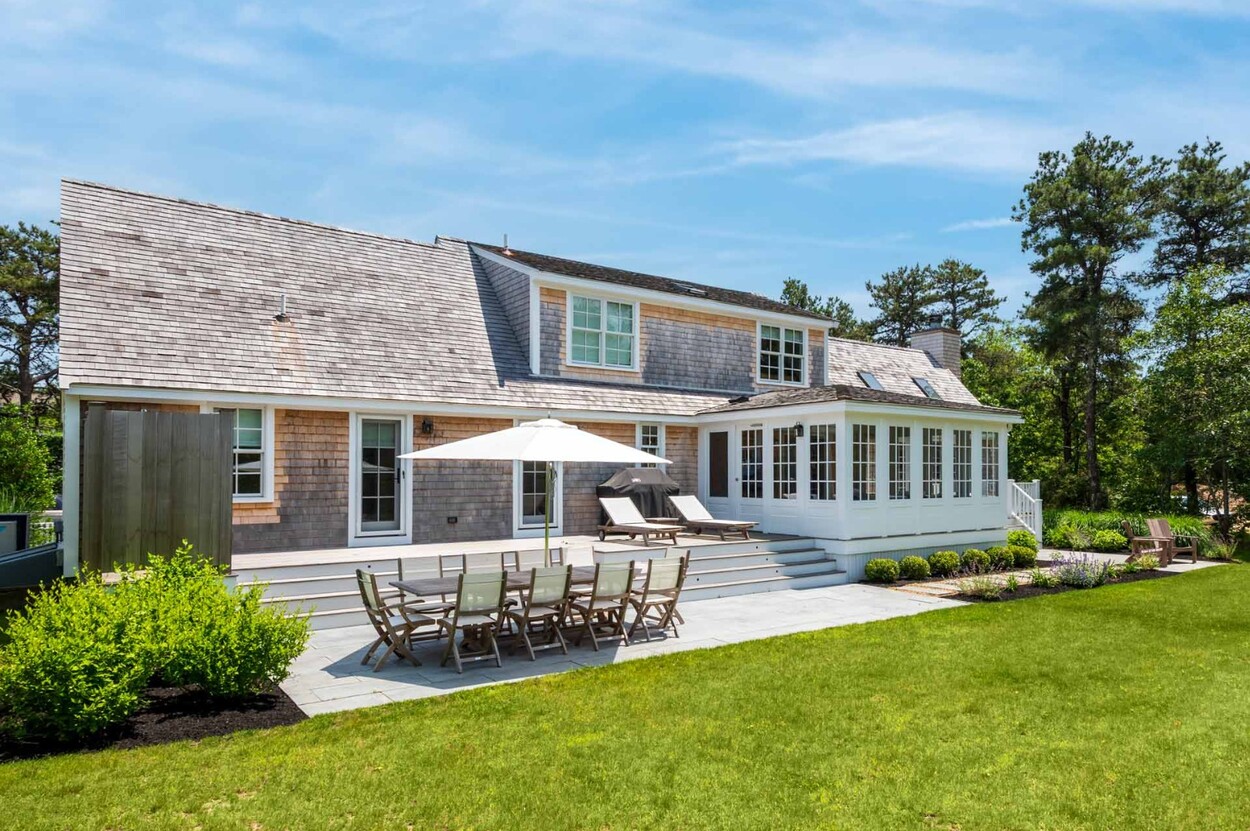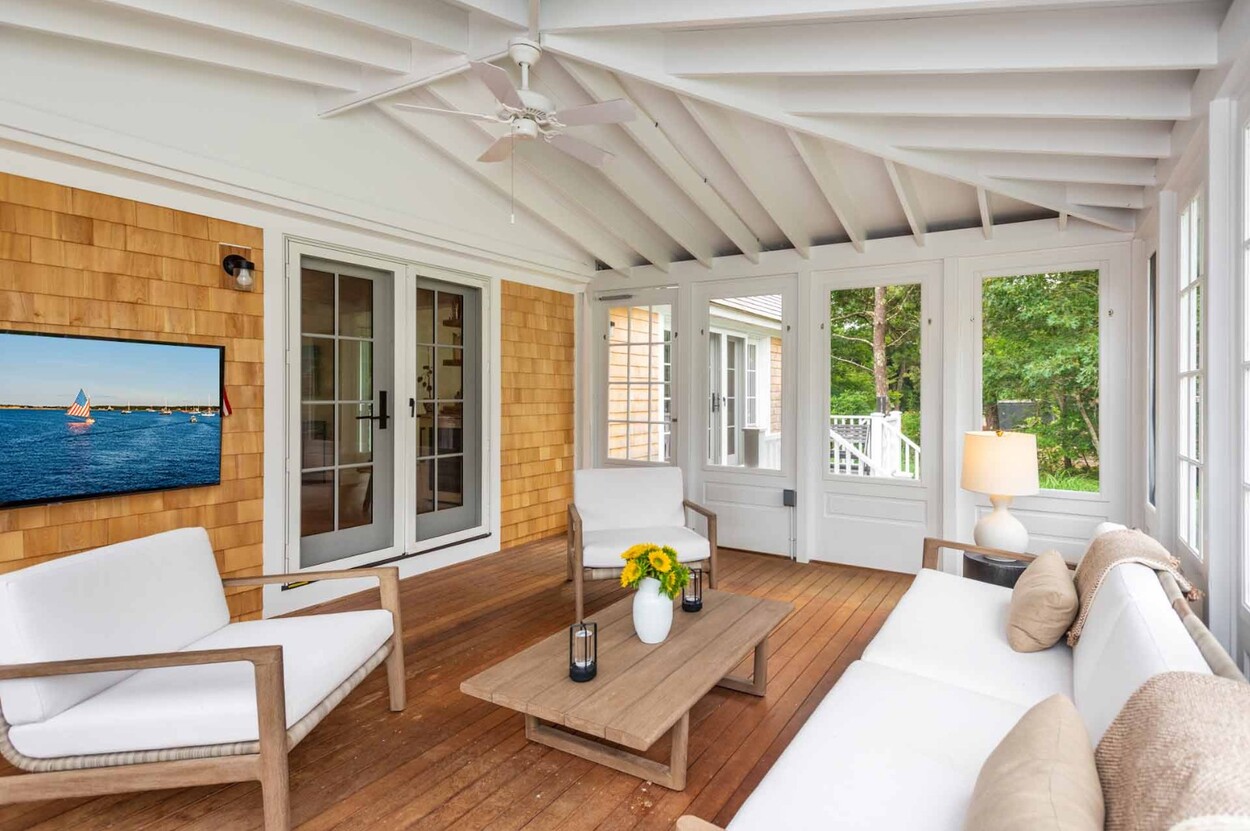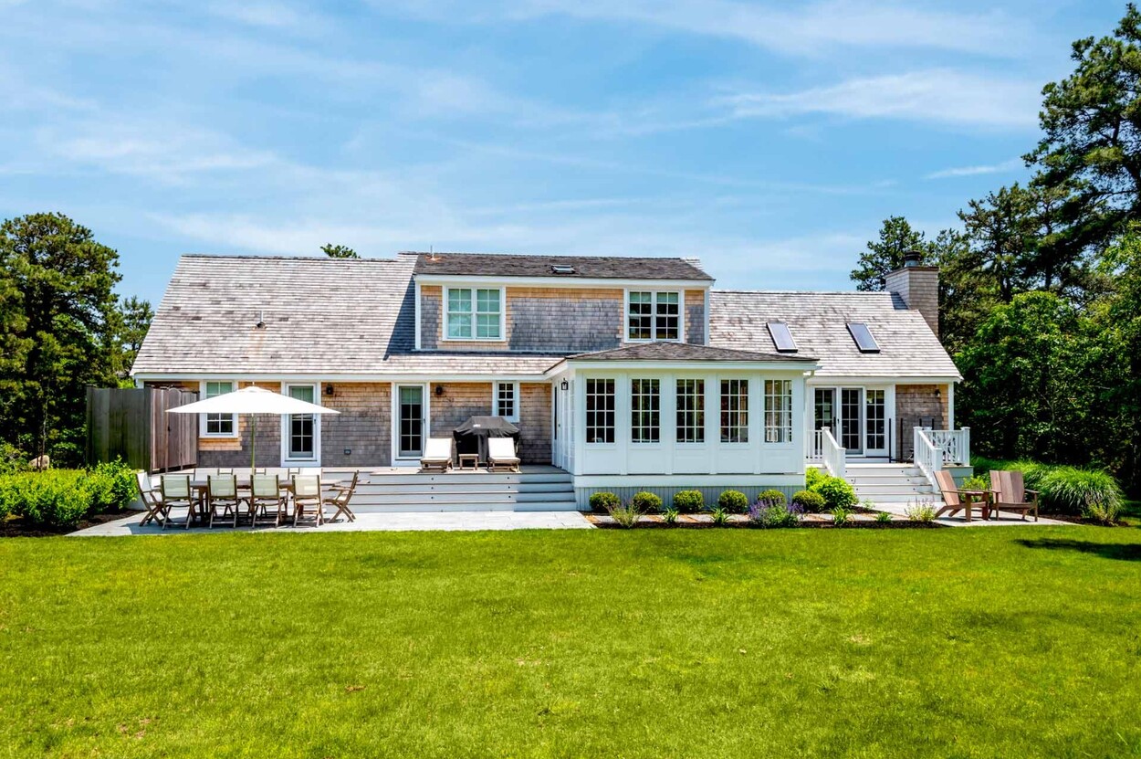 Set behind a charming white picket fence lined with blooming hydrangeas, this beautifully reimagined Edgartown property blends classic island character with all the benefits of new construction. Renovated from top to bottom in 2024 by a top-tier island builder and pursuant to custom plans, the home is essentially brand new — offering immediate comfort and timeless style, with the rare opportunity to expand into a fully customized luxury compound.