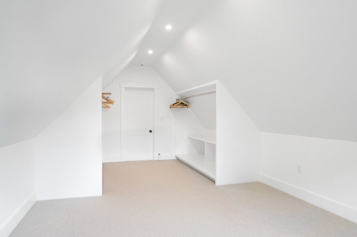 At the heart of the home, the chef’s kitchen impresses with premium appliances, gorgeous stone countertops, and a center island with counter seating . . all seamlessly integrated behind custom cabinetry. Open shelving, a full tile backsplash, and a custom vent hood create a space that's both functional and full of character.