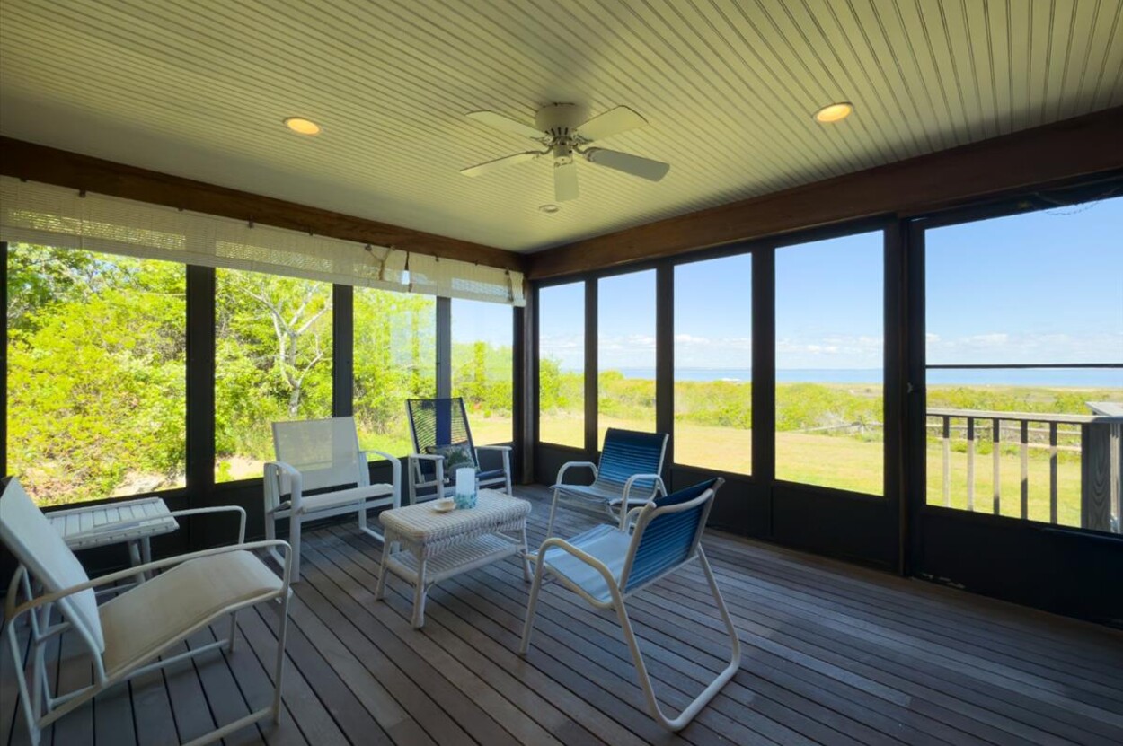 Enjoy morning coffee with ocean breezes and relaxing evenings watching the sun set while on this expansive deck or screened-in porch.