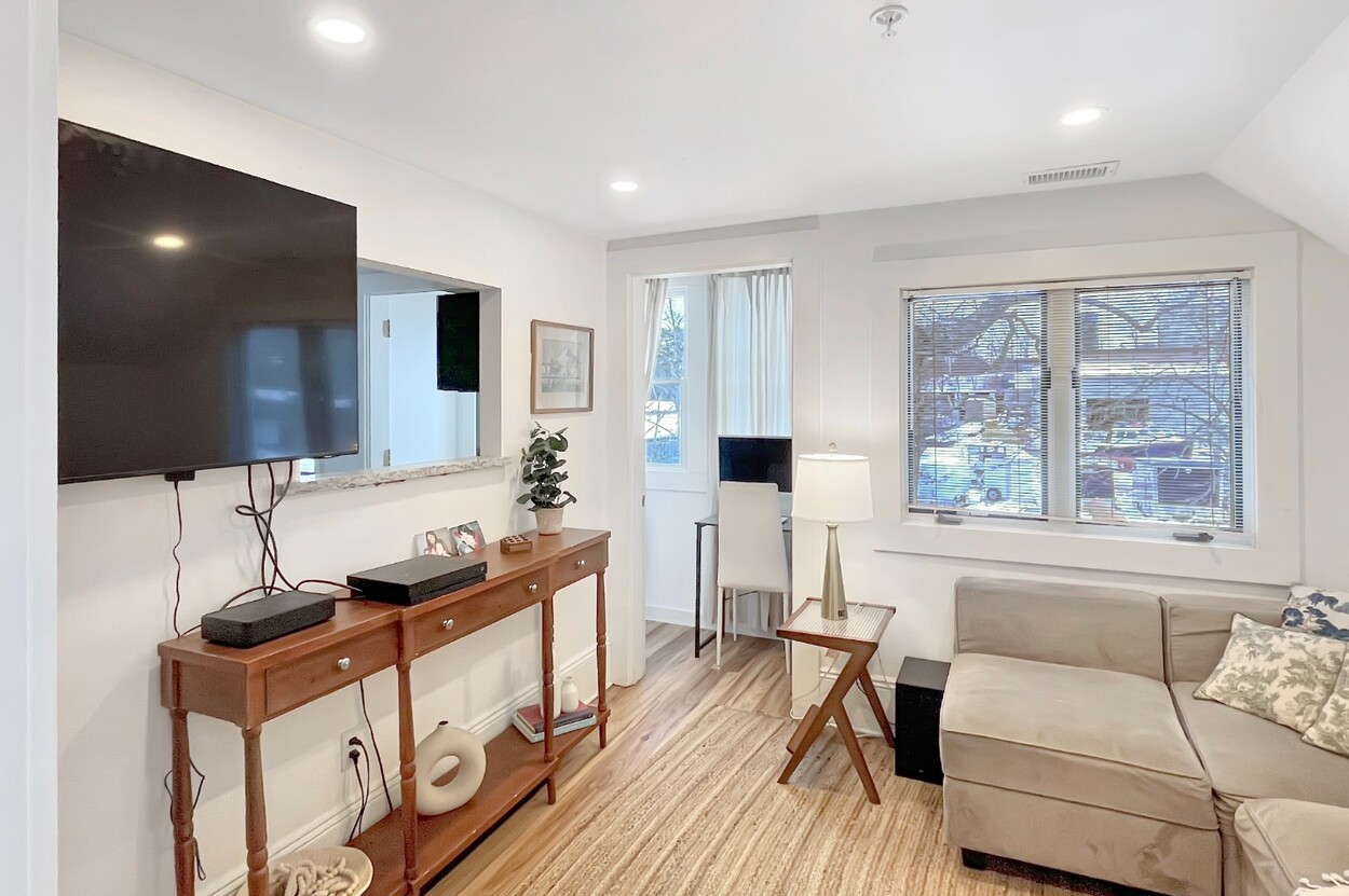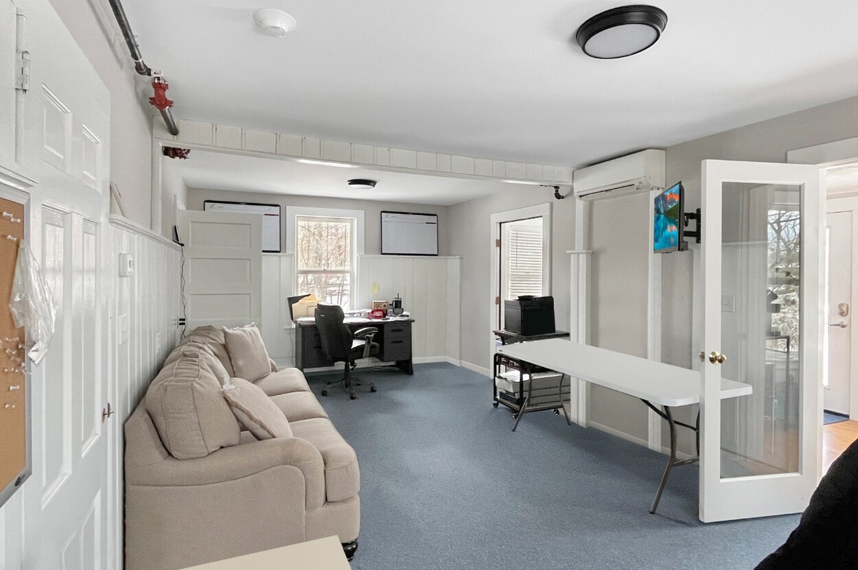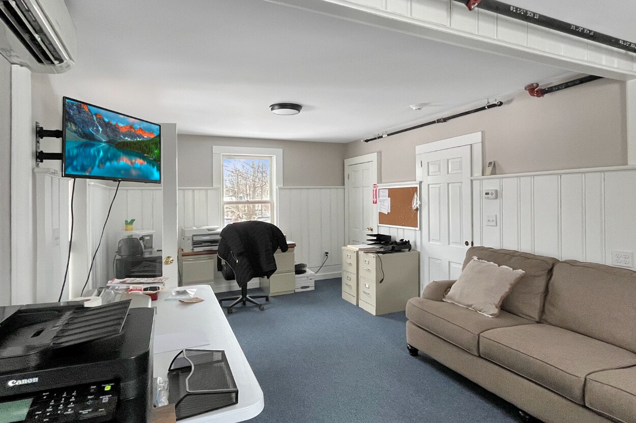 MIXED USE PROPERTY WITH PROFESSIONAL OFFICES AND TWO-BEDROOM APARTMENT - Extensively renovated mixed-use property in a high-visibility location on State Road in Tisbury. The first floor offers three offices, plus a reception area (or 4th office), 1.5 baths, and a kitchenette, with both front and side entrances, including handicap access. The second floor features a bright and sunny two-bedroom apartment with a full bath, living room, and kitchen—ideal for owner occupancy or rental income. The entire building has been renovated and includes sprinkler system, heat and air conditioning throughout, off-street parking for multiple vehicles in the rear, and a yard.