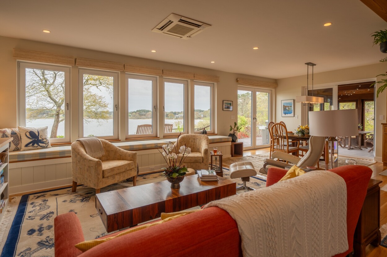 SPECTACULAR WATERFRONT home with stunning water views from every room. Situated in a private location in the Sengekontacket Association, this is an exceptional property in a rare setting. Completely renovated in 2014. In addition to the breathtaking water view of Major's Cove and of Felix Neck throughout the home, the front of the property faces serene pastoral views. This home offers four bedrooms with a main floor master and ensuite, exquisite craftmanship throughout and a unique setting on the water. Great care was taken in the planning of this home to ensure maximum enjoyment of the tranquil surroundings and views. Each of three bedrooms on the second floor has a water view. The quality of materials used in the construction of this home is outstanding. As you walk through the property, the landscaping and gardens are impeccable, and have been featured in MV Magazine. The back yard gently slopes down to the water. Carefully planned by the owners, this home was constructed to follow net zero design principles which provide an energy-efficient retreat. Lovingly maintained by the owners, this property is a true one of a kind sanctuary on the Vineyard.
