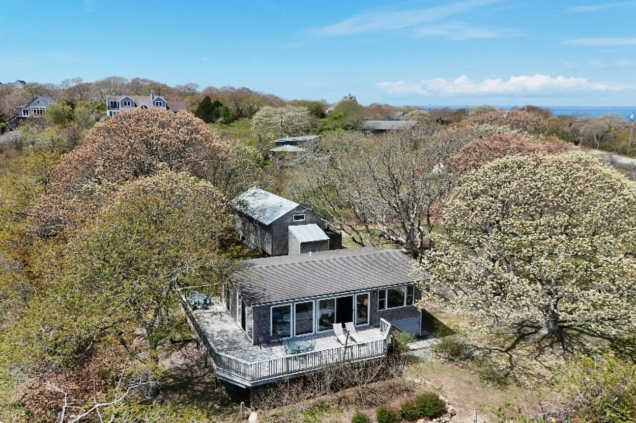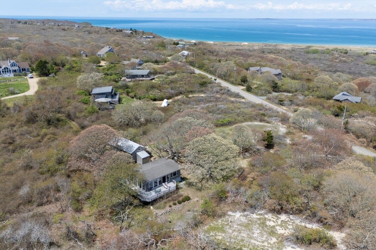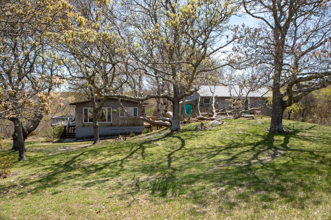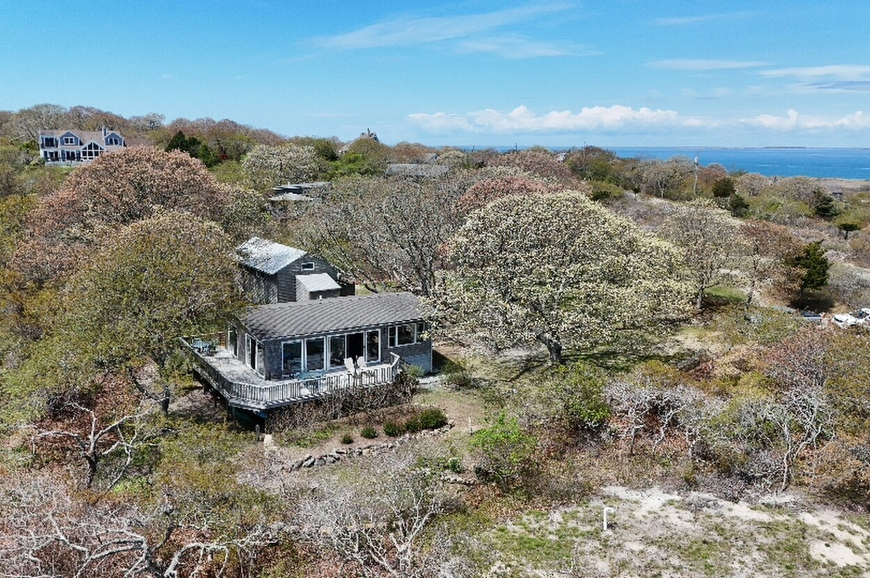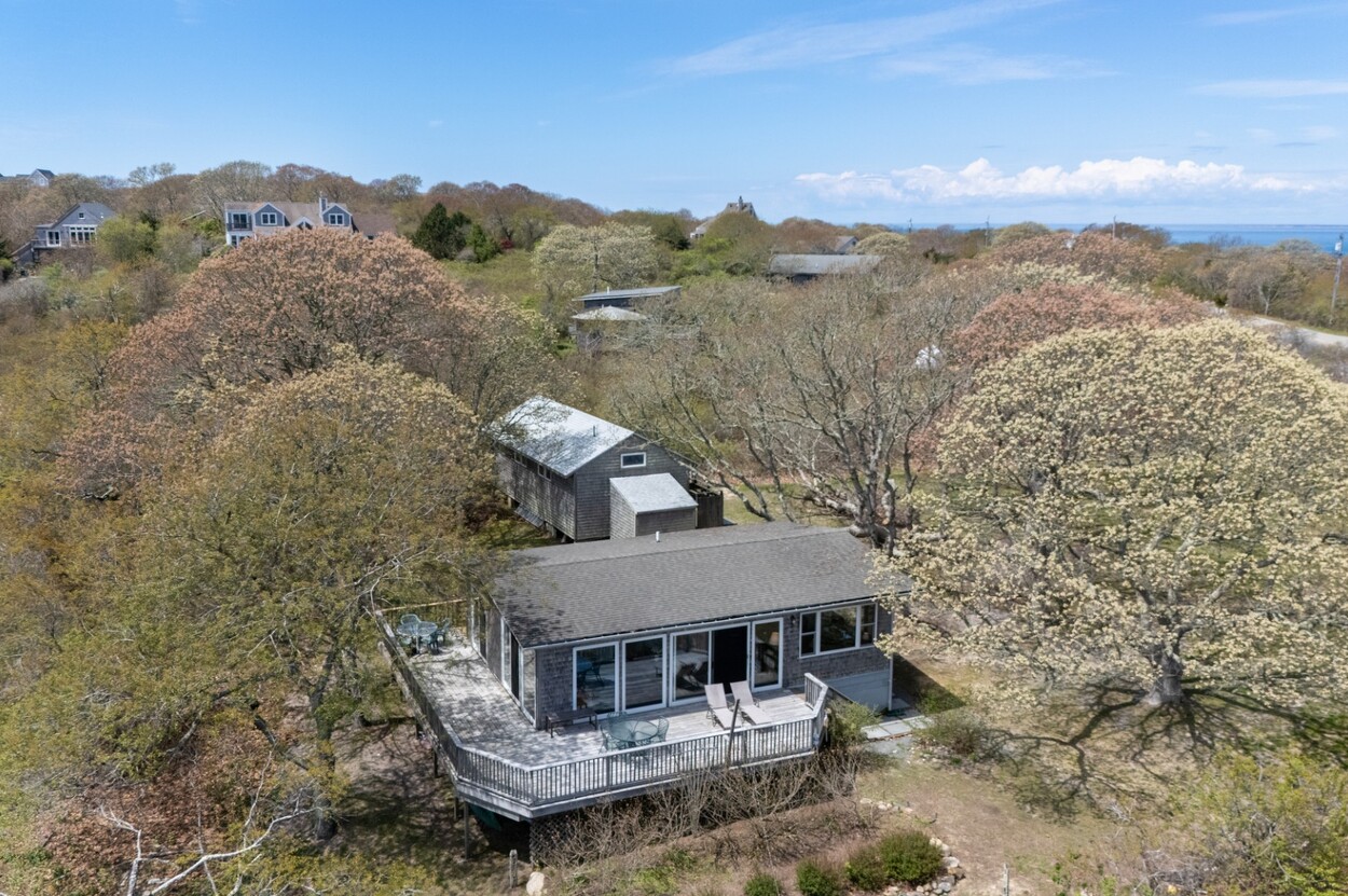 Ranch style home & Guest camp situated on 1+/- acre lot. The Main House offers distant views of Lobersterville beach and the Vineyard Sound beyond. Located in the desirable Lighthouse Road area, which offers walkable/close-by beach access and quiet roads. The view can be enjoyed from the Kitchen/Living/Dining as well as the wrap-around deck. Enjoy the open concept main living area, two bedrooms, and a shared bath. Follow the connected deck to the guest camp, which includes three bedrooms and a bathroom with laundry combined. Outdoor shower, storage shed, and the wrap-around deck complete this camp. Make this your family’s Aquinnah getaway!