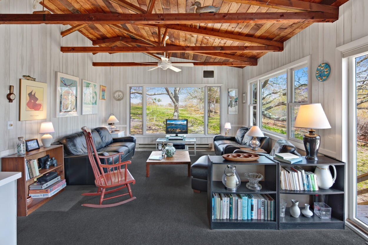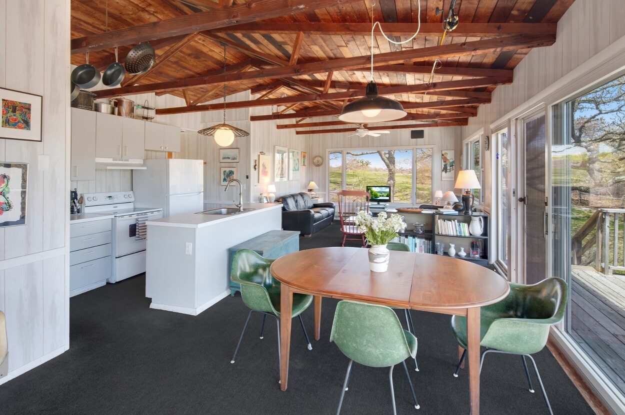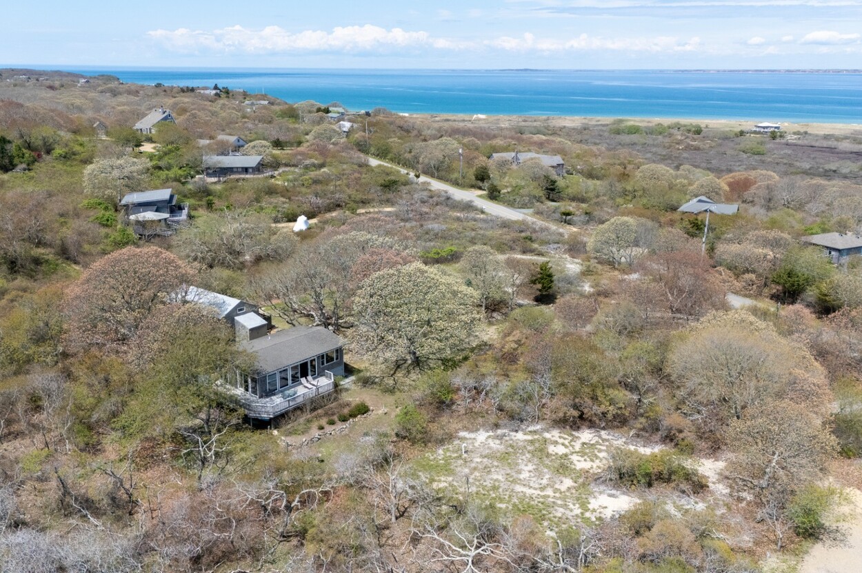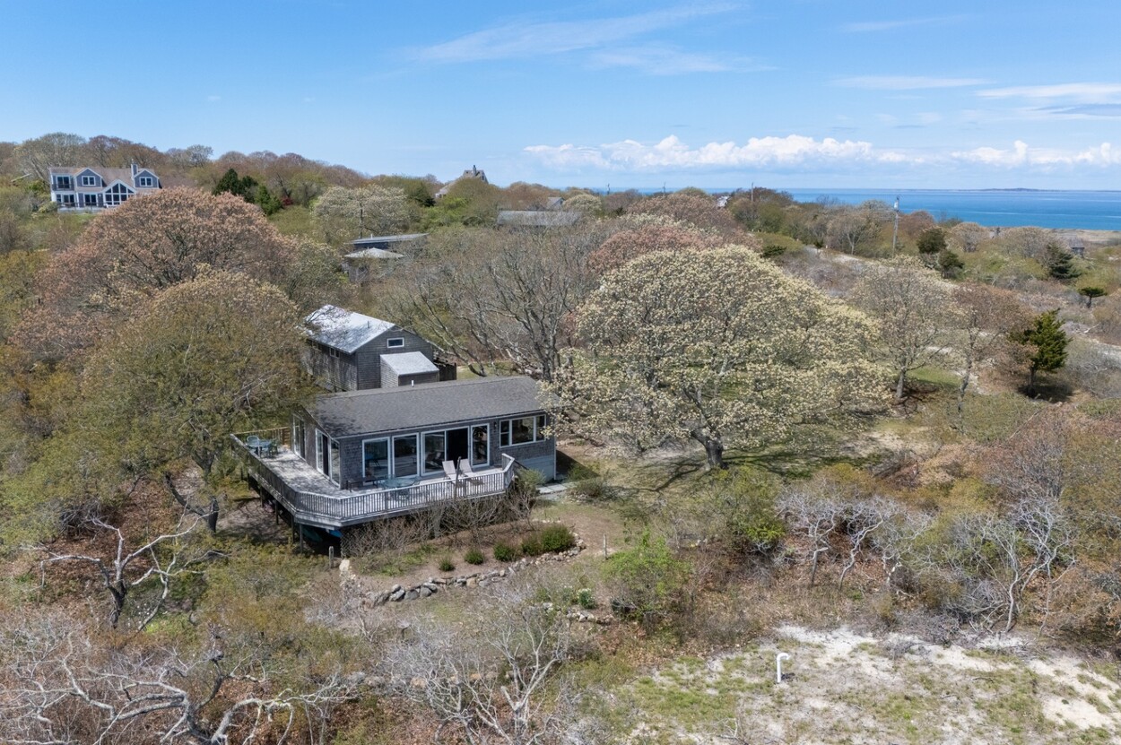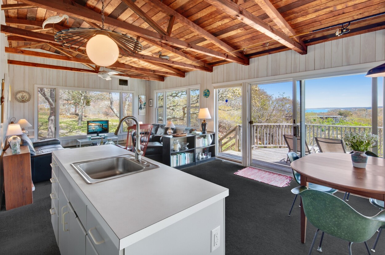Ranch style home & Guest camp situated on 1+/- acre lot. The Main House offers distant views of Lobersterville beach and the Vineyard Sound beyond. Located in the desirable Lighthouse Road area, which offers walkable/close-by beach access and quiet roads. The view can be enjoyed from the Kitchen/Living/Dining as well as the wrap-around deck. Enjoy the open concept main living area, two bedrooms, and a shared bath. Follow the connected deck to the guest camp, which includes three bedrooms and a bathroom with laundry combined. Outdoor shower, storage shed, and the wrap-around deck complete this camp. Make this your family’s Aquinnah getaway!