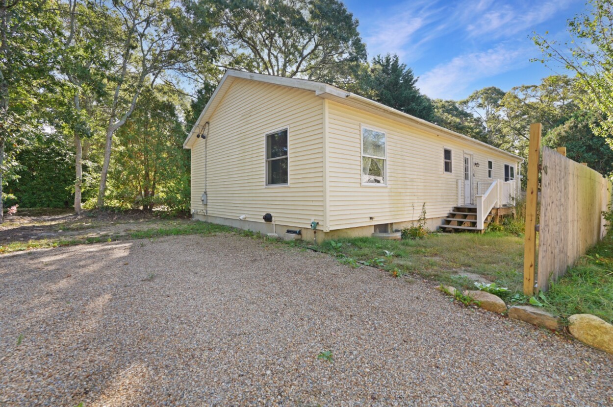 Close to downtown Edgartown, yet far enough away to be in a residential location with a nice yard, this home is a must-see! This is a ranch style home with two bedrooms and two bathrooms, plus an office. Open concept for the living, dining and kitchen area with a slider to the back deck. With a few updates and finishing touches, this could transform into your perfect family home. It is being sold “As-Is.” New septic installed September 2023, and a new heating system installed January 2023. This property also has a full basement that is partially finished. Please note that there is a shared driveway entrance from Edgartown/VH road. This home has a new driveway layout with 4 car parking.