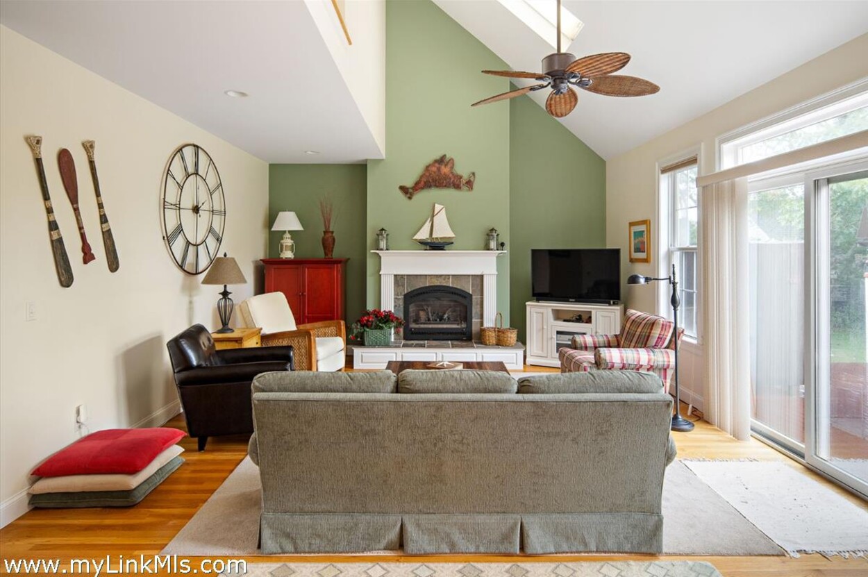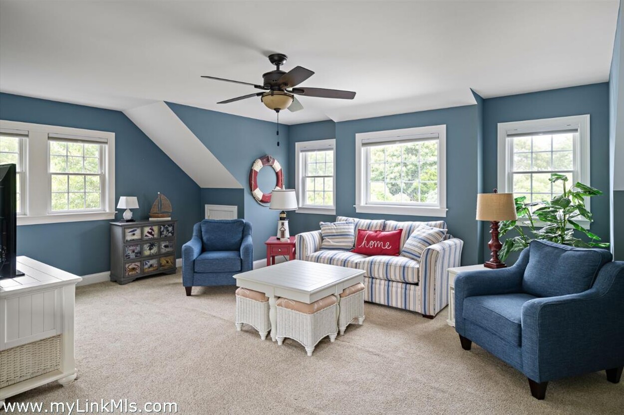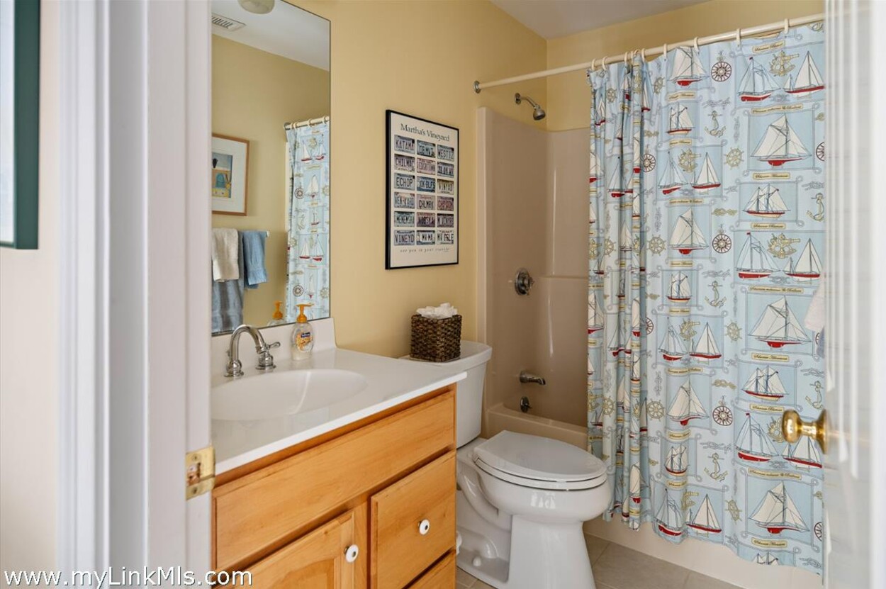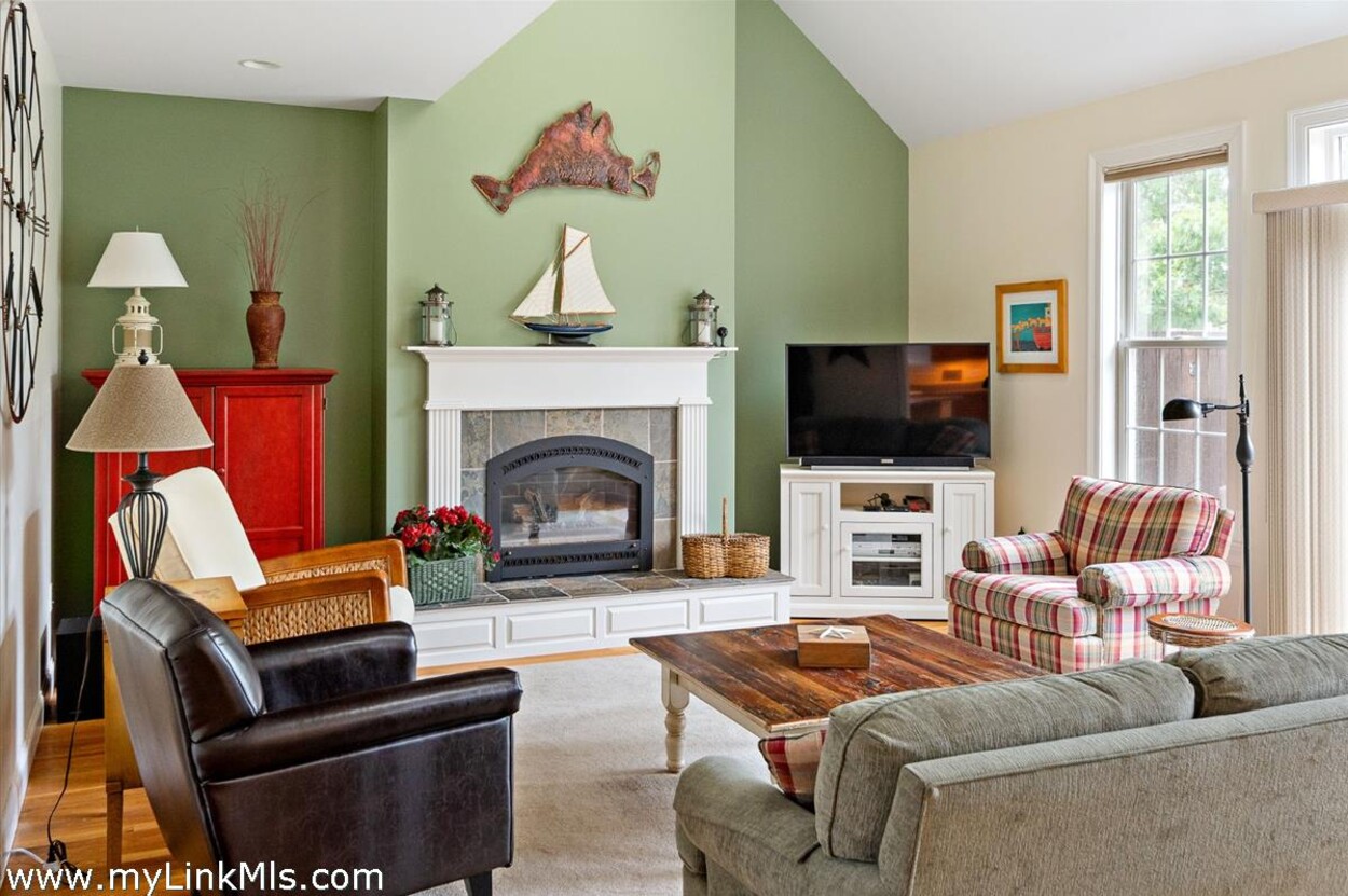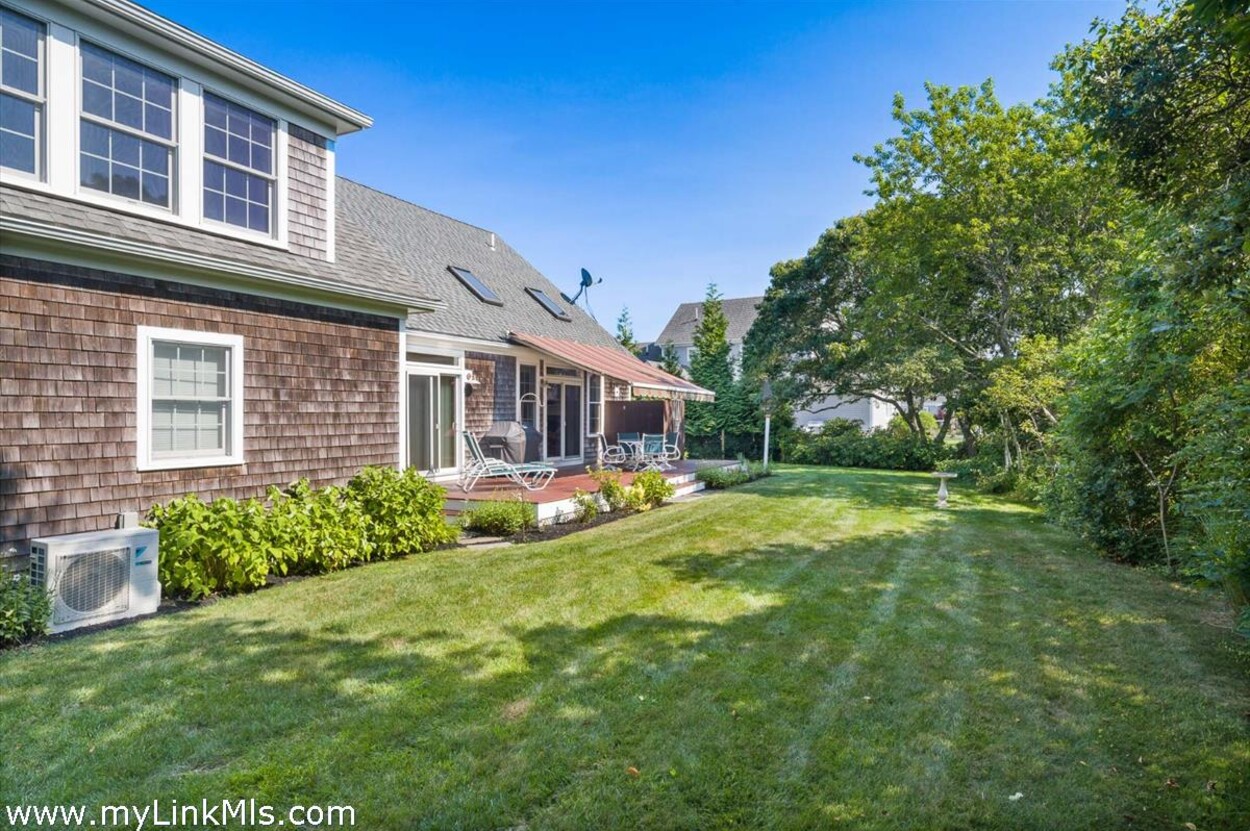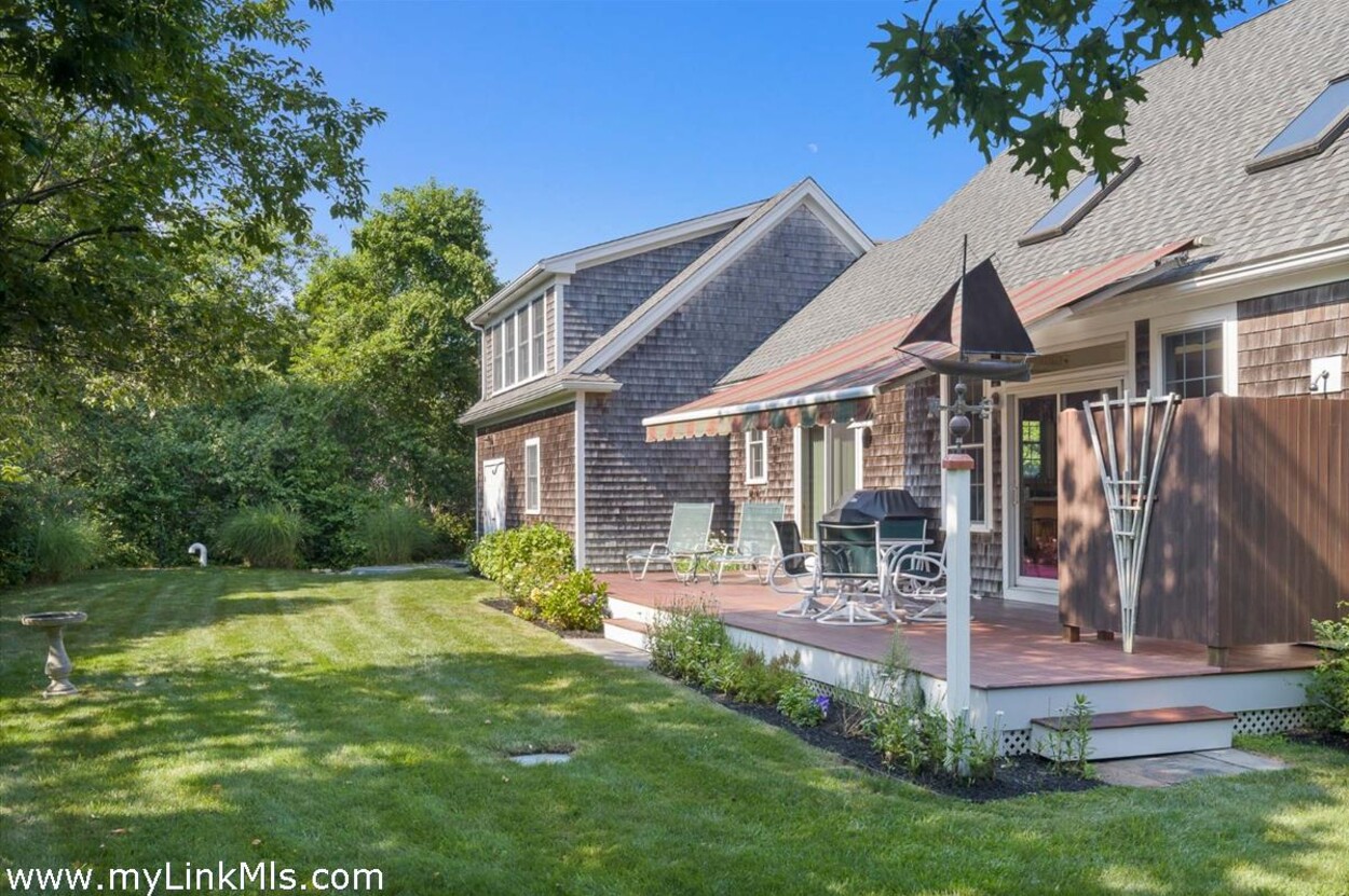 Inside, the home is bright and comfortable, with a vaulted living room and gas fireplace that makes it just as cozy in the shoulder seasons. The open kitchen and dining area flow right out to a large back deck—ideal for grilling, relaxing, and long summer evenings of entertaining. And of course, there’s an outdoor shower for rinsing off after the beach. The first-floor primary suite offers a private, laid-back retreat with cathedral ceilings, a walk-in closet, and its own bath. Upstairs, two spacious bedrooms share a full bath, giving everyone room to spread out. Over the garage, you’ll find a great bonus space with a half bath—perfect for guests, a home office, or a hangout spot. With a mudroom/laundry area, oversized two-car garage, full unfinished basement awaiting your vision, and a flexible layout, the home works just as well for year-round living as it does for summer getaways. Being offered fully furnished, it’s ready for you to move right in and start making Vineyard memories.