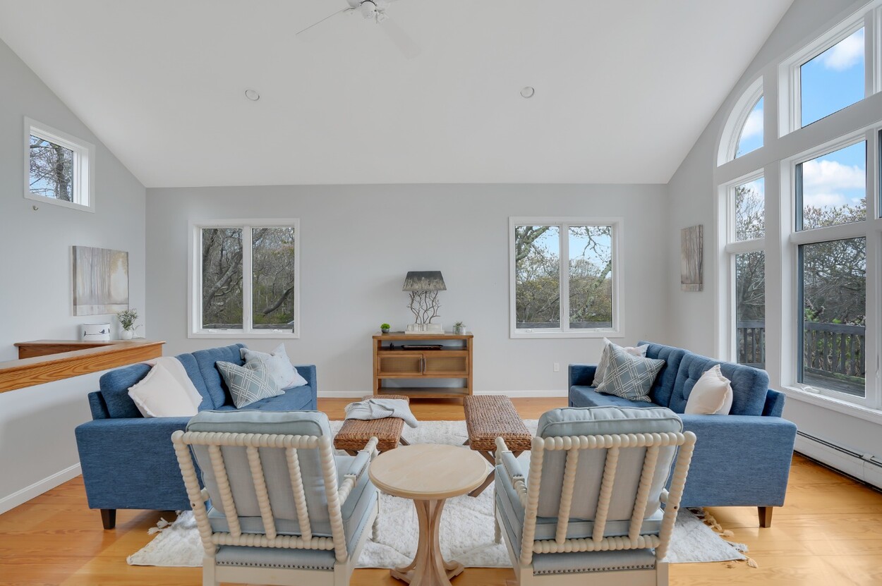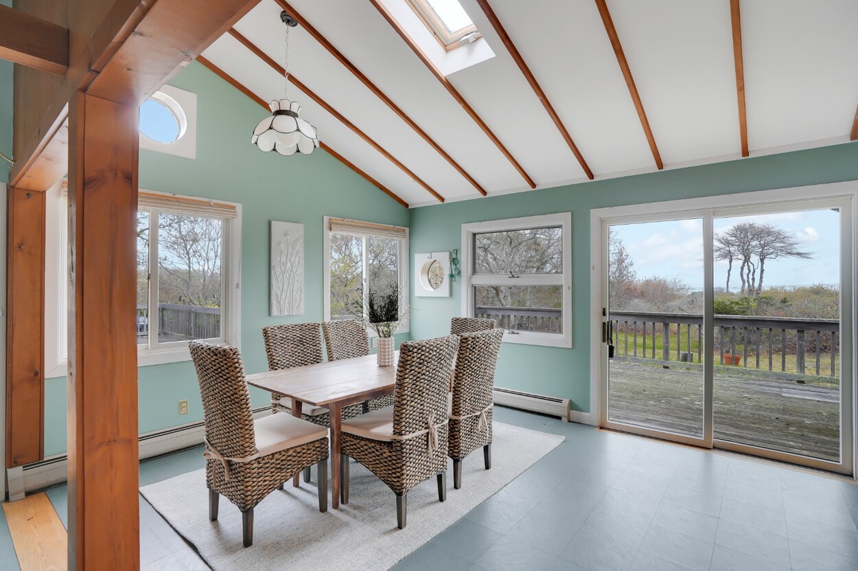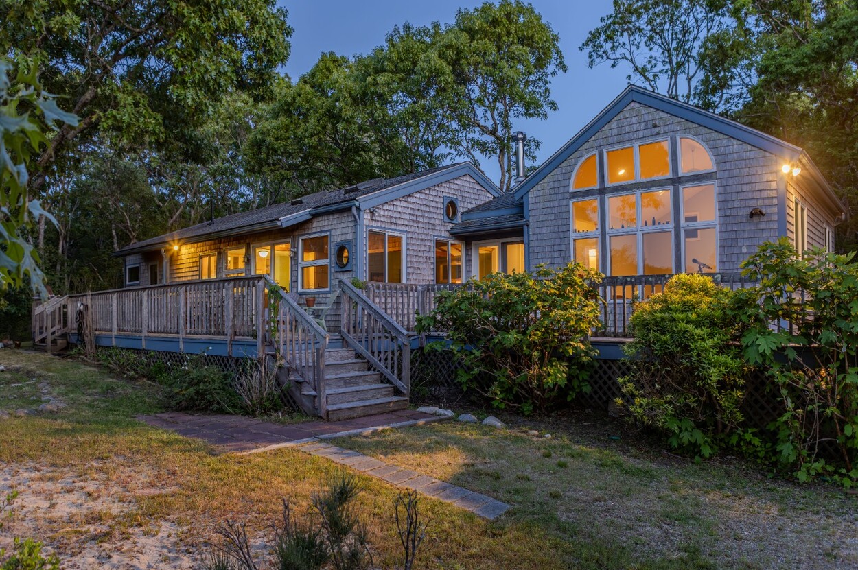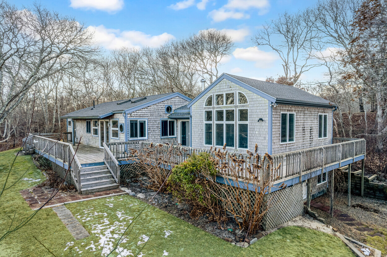 HUGE PRICE CUT! Aquinnah Retreat, set on a private 1.1-acre lot! This beautiful single-family home was lovingly built & cared for by one family, offering peaceful surroundings & beautiful ocean views, now, move-in ready for new owners to relax & put their own personal touch to. The wrap-around deck provides a stunning viewpoint to take in the coastal air & setting. Inside, the kitchen & dining area are filled with natural light thanks to skylights and large windows, flowing into a cozy sitting area with a fireplace—perfect for gathering with friends and family. The left wing of the home includes three bedrooms, a full bath, and a half bath. On the opposite end, a spacious great room features cathedral ceilings, oversized windows framing ocean views, and a second half bath with laundry hookups. The lower level is a walk-out that includes a bathroom and bonus room, offering potential for living space, guest accommodation, or rental income. A heated studio, two storage sheds, and an outdoor shower add to the home’s flexibility. New roof (2021), Title 5, & Smoke passed—this special Aquinnah property is ready for its next chapter!