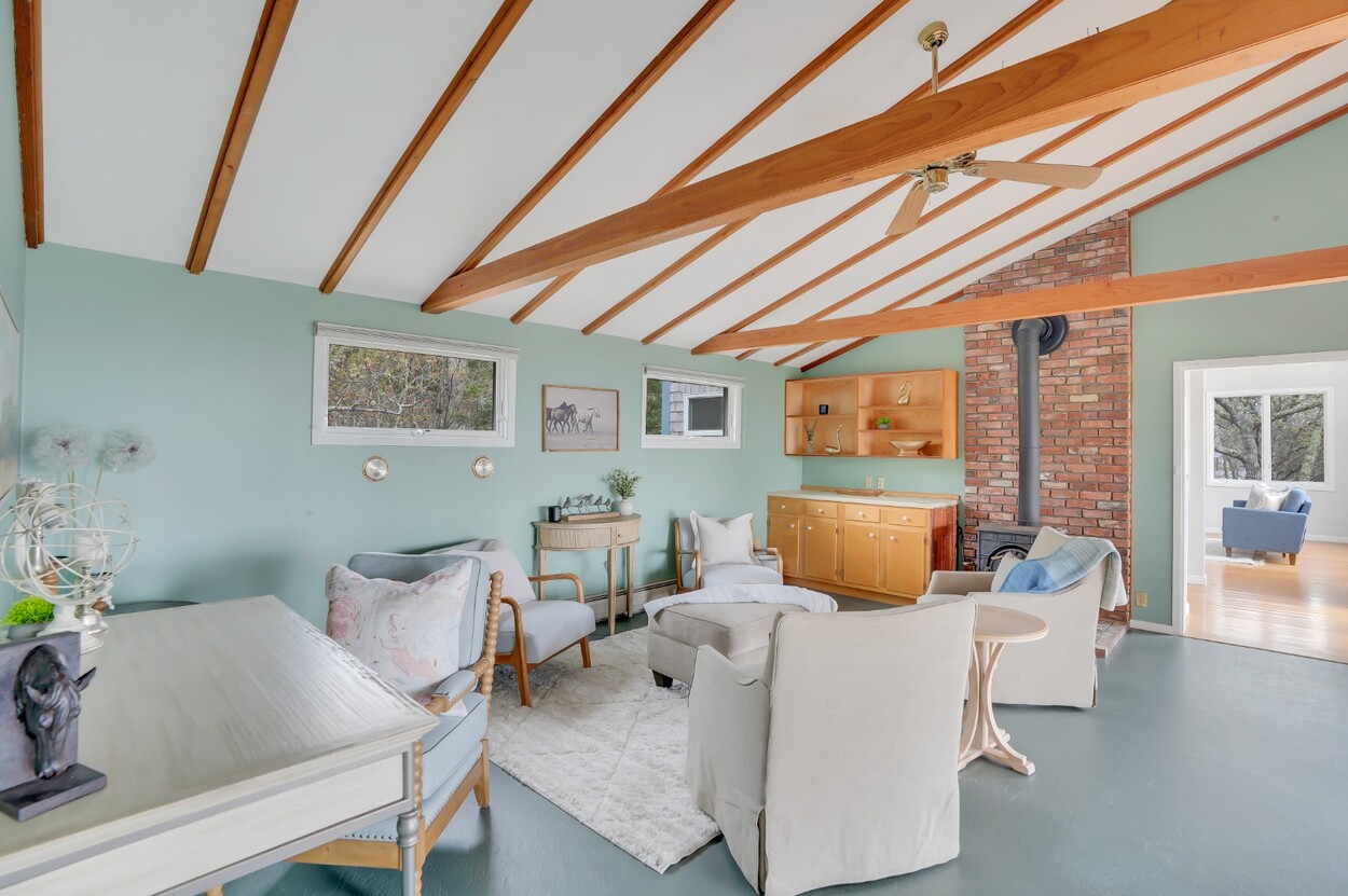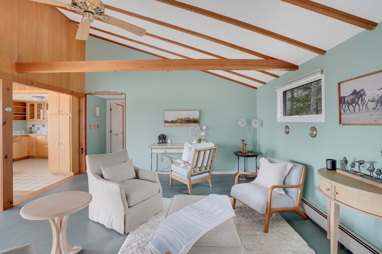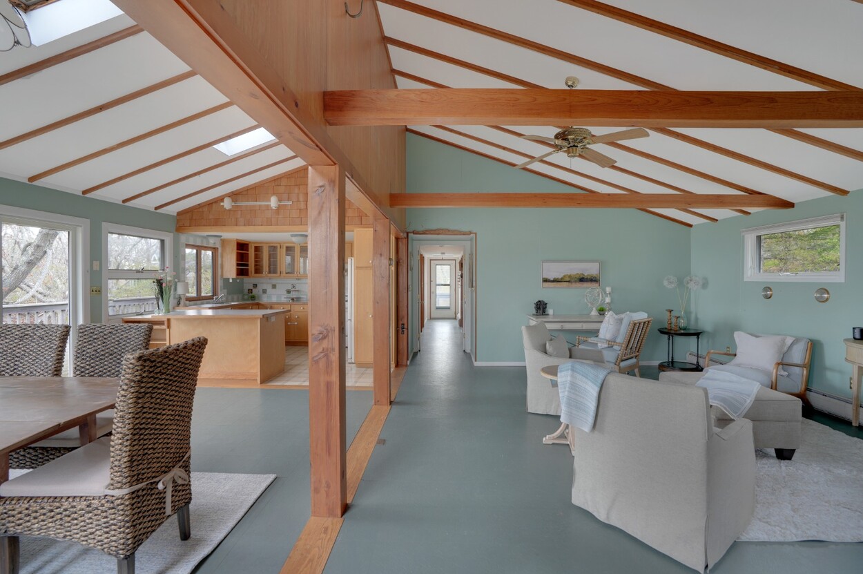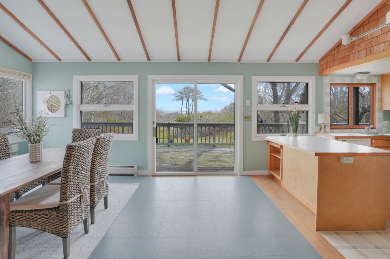 HUGE PRICE CUT! Aquinnah Retreat, set on a private 1.1-acre lot! This beautiful single-family home was lovingly built & cared for by one family, offering peaceful surroundings & beautiful ocean views, now, move-in ready for new owners to relax & put their own personal touch to. The wrap-around deck provides a stunning viewpoint to take in the coastal air & setting. Inside, the kitchen & dining area are filled with natural light thanks to skylights and large windows, flowing into a cozy sitting area with a fireplace—perfect for gathering with friends and family. The left wing of the home includes three bedrooms, a full bath, and a half bath. On the opposite end, a spacious great room features cathedral ceilings, oversized windows framing ocean views, and a second half bath with laundry hookups. The lower level is a walk-out that includes a bathroom and bonus room, offering potential for living space, guest accommodation, or rental income. A heated studio, two storage sheds, and an outdoor shower add to the home’s flexibility. New roof (2021), Title 5, & Smoke passed—this special Aquinnah property is ready for its next chapter!
