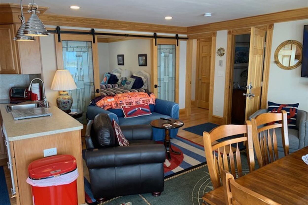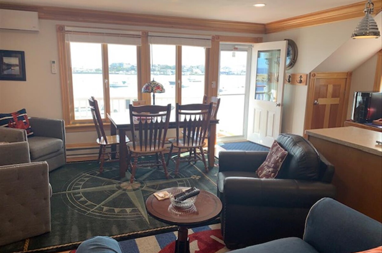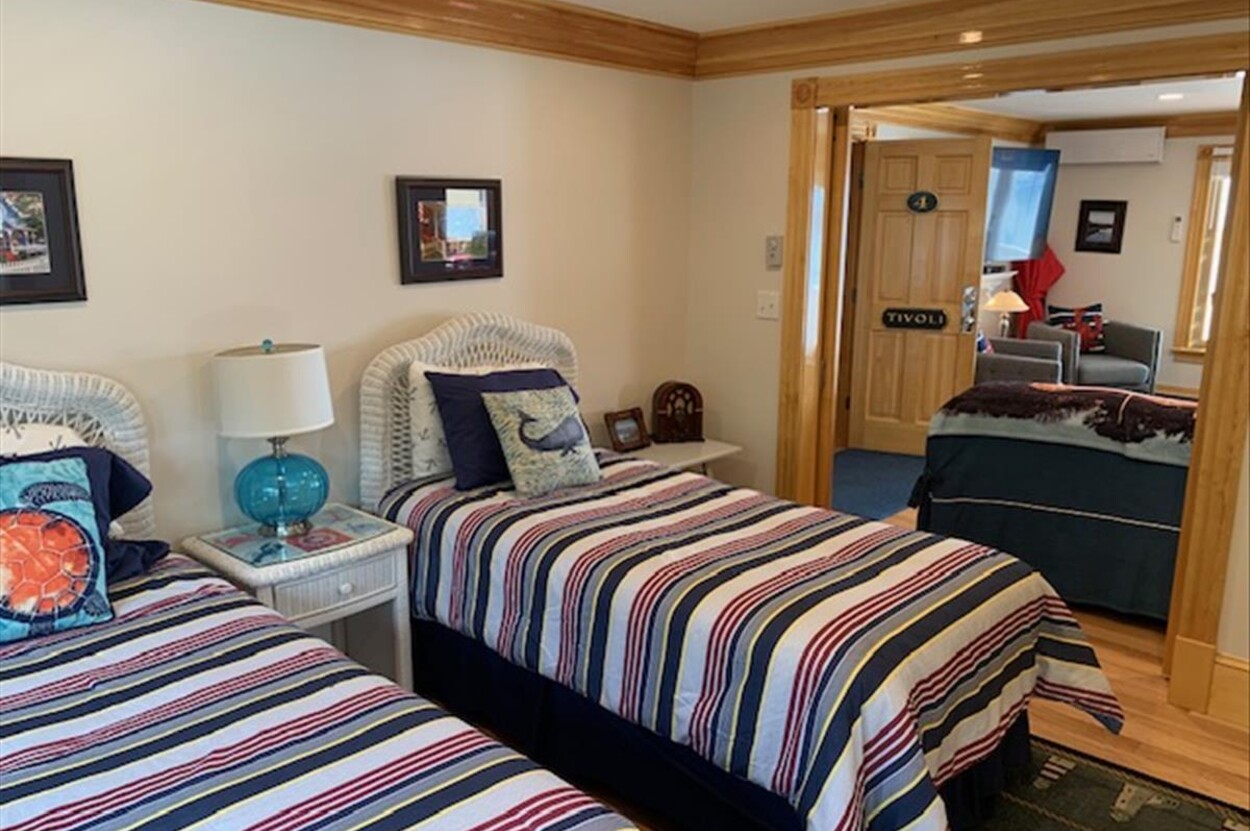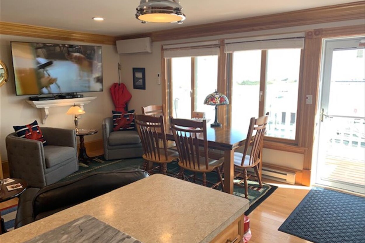 East Chop Harbor Front Luxury Condominiums -- This 2-bedroom, 2nd floor, waterfront condominium, the "Tivoli", features outstanding water views of the harbor and the sound beyond all the way to Chappaquiddick. Located just steps from the tennis club, beaches, restaurants, ferries to the mainland and downtown, this unit includes new kitchen with Bosch appliances, living and dining areas and a private covered front porch over-looking the water. The unit has electric baseboard heat plus mini-split heat/AC. Common areas include a private outdoor shower with dressing area, and outdoor patio/grill area. Condominium owners have first option to rent a slip at the 106 ft dock for 8 slips and a 40’ T at the end for a 9th boat. Each unit includes a designated parking space for one vehicle. Built in 1952, and operated as East Chop Harborfront Apartments since then, the property has had extensive top to bottom renovations including new wiring, plumbing, insulation, heating/AC, exterior security cameras and dredged dockage. Features include crown molding and attention to detail, as well as beautifully landscaped grounds. Laundry service available. Occupancy available beginning Nov. 1st, 2025. New condominium pending buyer approval of final condominium documents. Hot water on 80-gal. tank, metered and proated. House keeping available at owners discretion. Sold with furniture depending on price. Available for showing with 24-hour notice until June 15th, thereafter Saturday's 10-12.