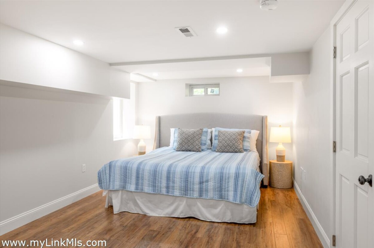 The finished lower level offers even more living space, including a large bedroom—ideal for guests or extended family. Outdoors, a stunning mahogany deck overlooks the newly landscaped backyard, complete with an outdoor shower and perfect areas for entertaining.