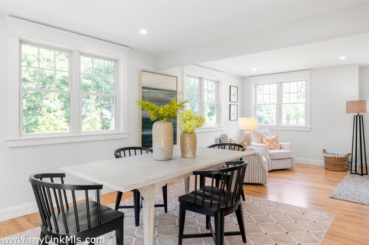 Inside, a thoughtfully designed floor plan welcomes you with generous living spaces. At the heart of the home is a chef’s kitchen featuring custom cabinetry, high-end appliances, and stylish finishes—perfect for both everyday living and entertaining. The open-concept living and dining areas flow seamlessly, enhanced by updated systems and central air conditioning for year-round comfort.