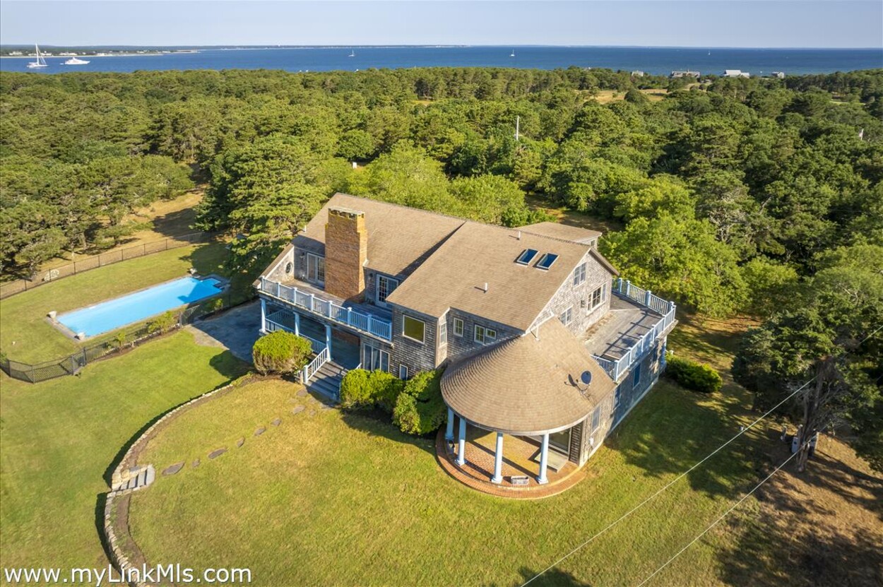 Tucked beside the historic Royal & Ancient Chappaquiddick Links and surrounded by conservation land, this compound offers unmatched seclusion while placing you moments from sandy beaches, island trails, and the gentle rhythm of Vineyard life. Main Residence | 8,335 sq. ft. Chef’s kitchen with Viking oven, dual Sub-Zero refrigerators, wine fridge, and granite counters. Expansive decks for morning coffee at sunrise and cocktail hours at sunset. Lower level with wet bar opening to pool and patio; private home office for remote work in paradise. Second Residence | 1,351 sq. ft. - 3 bedrooms, 2 bathrooms, full kitchen, screened-in porch, multi-level deck, and outdoor shower. Bunk House Retreat | 1 bedroom, kitchenette, living area, and full bath — perfect for overflow guests or a quiet getaway. Resort-Style Amenities include a Heated Gunite pool with outdoor shower, a Tennis court for friendly matches and a 4-bay garage with room for all the toys.
