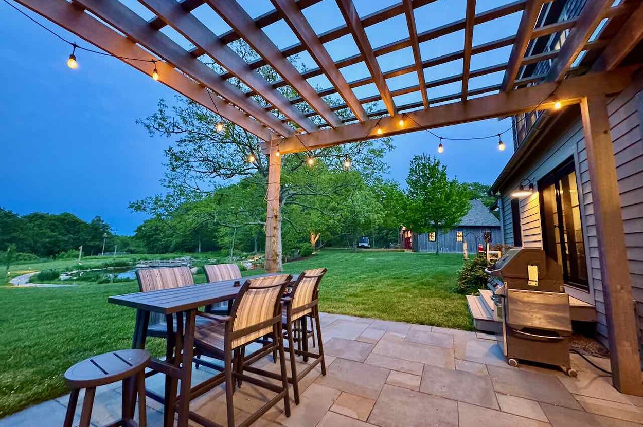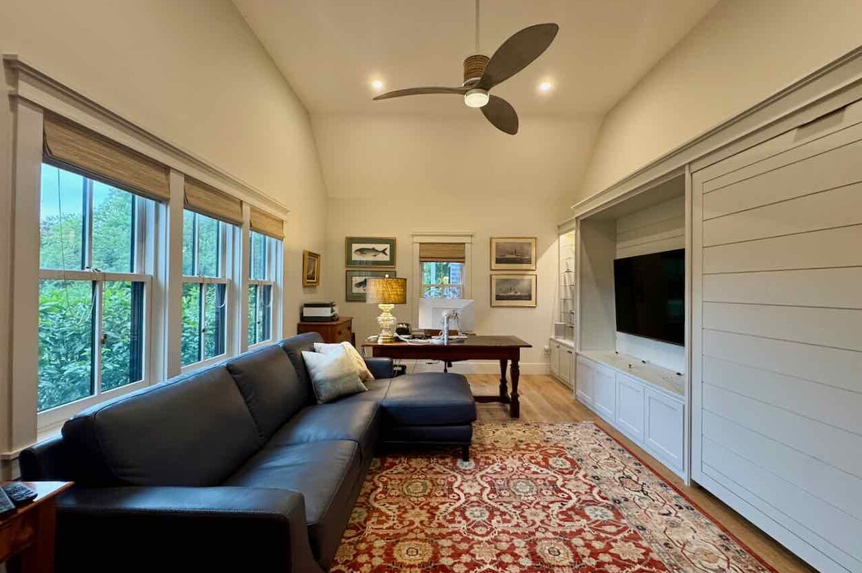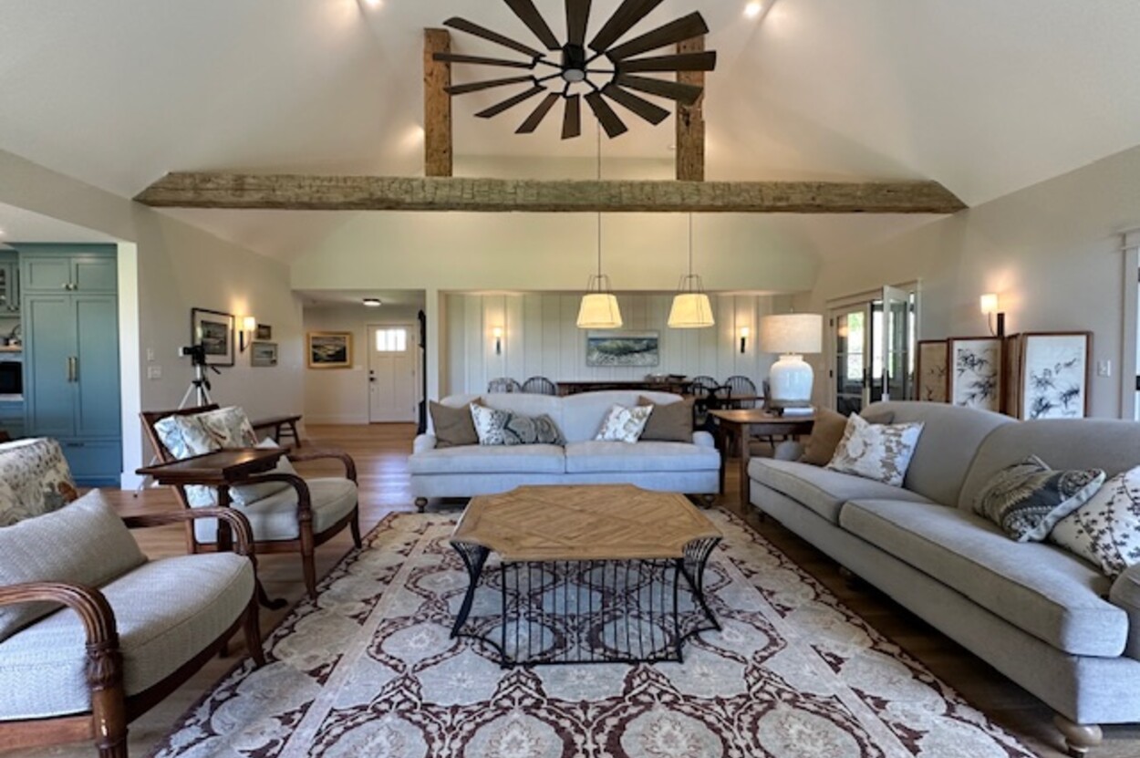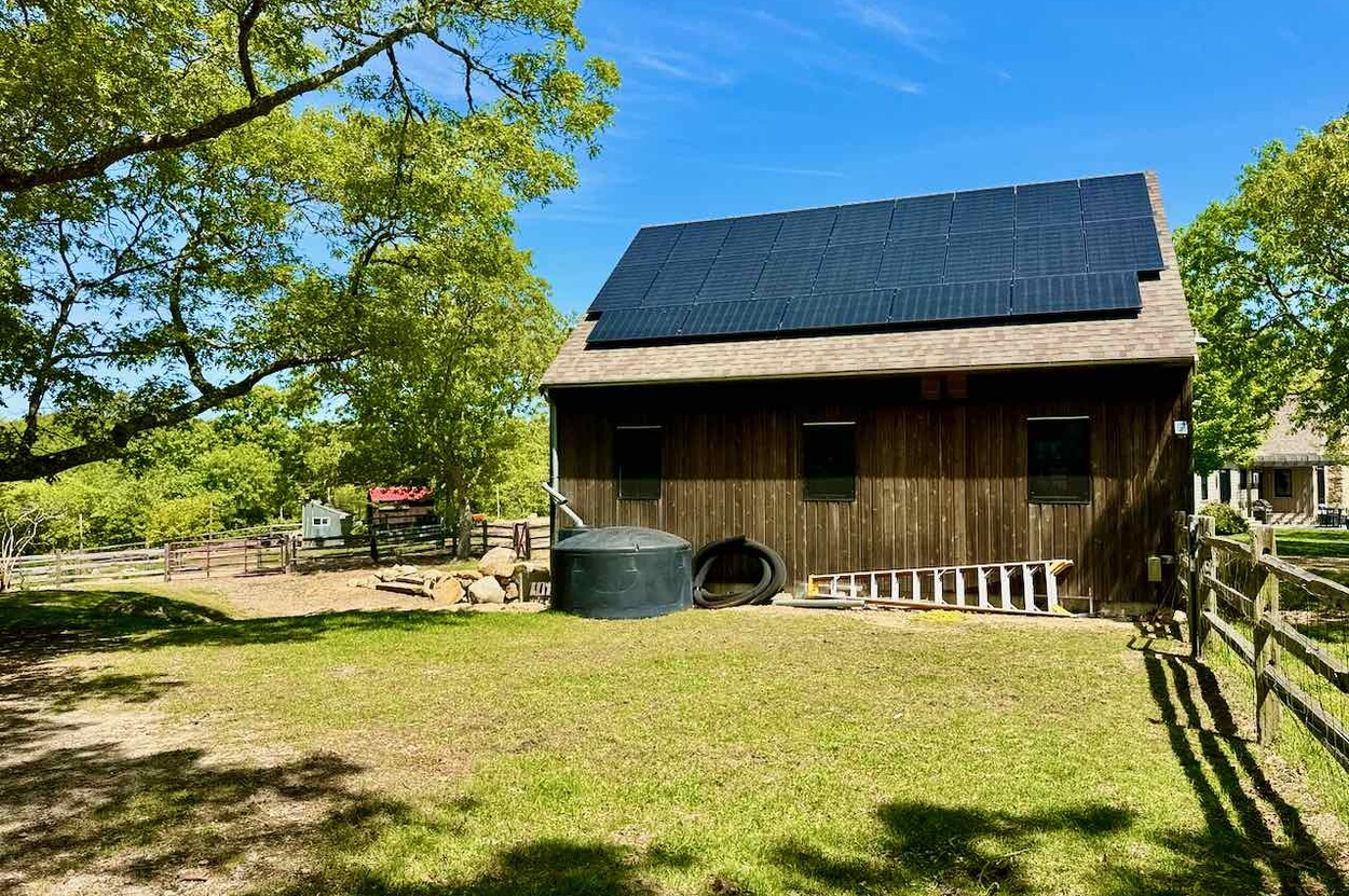 This spectacular and bright modern american farmhouse is perfectly sited to capture the varied scenic beauty that surrounds the farm. Built in 2021 with great attention to detail and materials, this home was created around gatherings and community with ample space for the extended family. The land has been lovingly curated into a place which can grow, generate and support those who want to have the best qualities of an island existance, minimize their impact and enjoy the literal fruits of life. The home has an 81 panel solar production system, granting it producer status and producing a surplus of energy that far surpasses the use. There are fruit orchards around the property that include fig, plum, apple, blueberry, cherry and more. (see addendum) The property achieved status as a Certified Organic Farm (USDA). The fantastic kitchen is designed for the serious chef with a huge 4 x 9 foot center island made of honed granite and a 48 gas range, subzero fridge and bosch dishwasher. The great room has a floor to ceiling rumford designed stone fireplace with cathedral ceilings, reclaimed antique beams, and a great floor plan that still maintains a sense of intimacy. Great mudroom with tons of built in that opens into the garage and the laundry room. Generator fed by 500 gallon buried propane tank provides security if weather goes bad. This is a really wonderful house and must be seen.