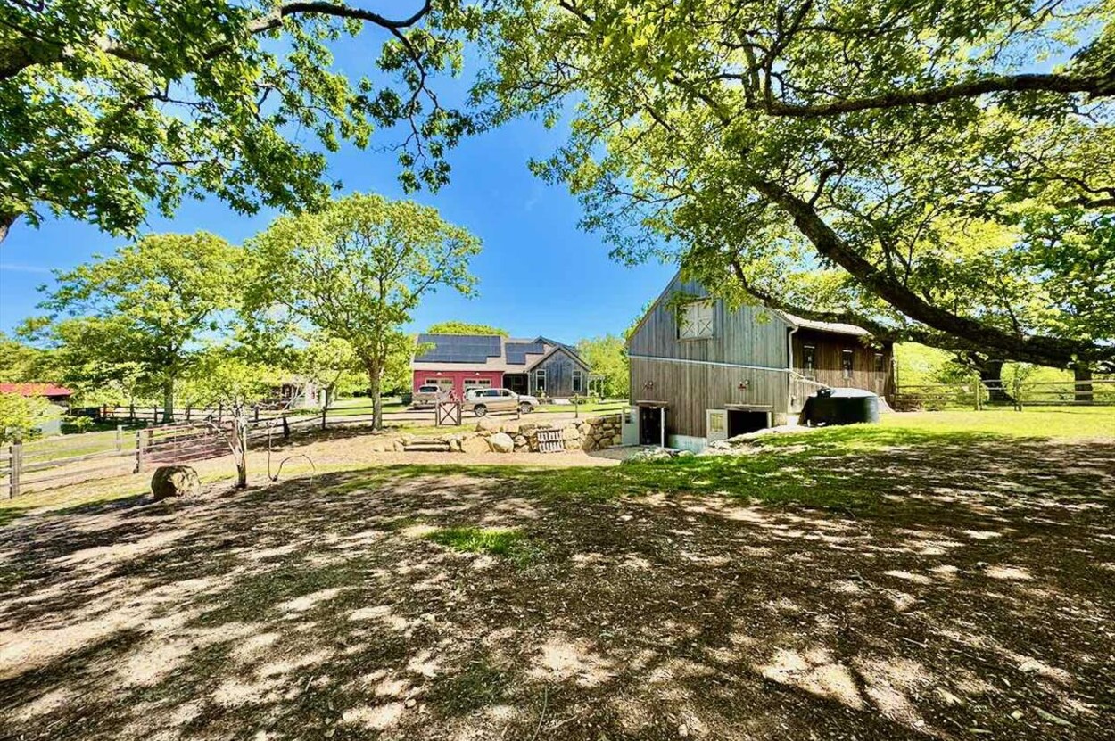 Commercial certified organic farm set in the hills of Chilmark. This wonderful small scale farm has been lovingly created and grows a variety of high value fruits and vegtables which are sold to local businsses and restaurants. The land has been lovingly curated into a place which can grow, generate and support those who want to have the best qualities of an island existance, minimize their impact and enjoy the literal fruits of life. Lots of opportunity to expand the commercial operation with value added products. There are fruit orchards around the property that include fig, plum, apple, blueberry, cherry and more. (see addendum) The property achieved status as a Certified Organic Farm (USDA) which is renewed annually. There is a rainwater catchment system to supplement watering with over 7500 gallons of capacity. In addition there is a spectacular and bright modern american farmhouse perfectly sited to capture the varied scenic beauty that surrounds the farm. Built in 2021 with great attention to detail and materials, this home was created around gatherings and community with ample space for the extended family. The home has an 81 panel solar production system, granting it producer status and producing a surplus of energy that far surpasses the use. The fantastic kitchen is designed for the serious chef with a huge 4 x 9 foot center island made of honed granite and a 48 gas range, subzero fridge and bosch dishwasher. The great room has a floor to ceiling rumford designed stone fireplace with cathedral ceilings, reclaimed antique beams, and a great floor plan that still maintains a sense of intimacy. Great mudroom with tons of built in that opens into the garage and the laundry room. Generator fed by 500 gallon buried propane tank provides security if weather goes bad. This is a really wonderful house and must be seen.