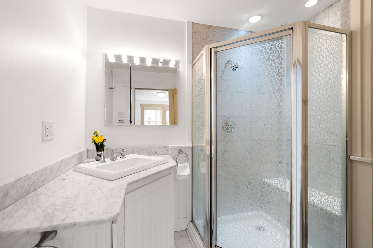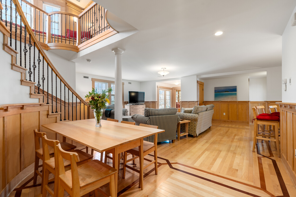 Village dreams come true… STUNNINGLY CRAFTED, **this four-bedroom five bath property in Edgartown Village with Garage is truly a rare find! Situated on a corner lot just two blocks north of Main Street and two blocks from the Harbor, it features walking convenience and luxury in one package. Main and second floors combine over 3,400 square feet of spacious, elegant living. The partially finished lower level abounds with an additional 1891 sf, opening even more possibilities for unique customization to suit any lifestyle. Three of the four bedrooms are en suite with all four quarters well separated, adding wonderful privacy from the next. The show-stopping central staircase with its grandeur and contour adds a touch of elegance to the home, complemented perfectly by the warmth and sophistication of the maple inlay flooring, which is comfortably radiant heated throughout all three floors. Despite its proximity to the bustling village life, the thoughtful sound-proof design allows for quiet relaxation when desired. The abundance of French doors not only brings in natural light but also seamlessly connects indoor and outdoor living spaces, enhancing the overall inviting atmosphere of the home. Overall, this superb Edgartown Village property offers exceptional location with a unique blend of charm and elegance, making it a wonderful investment for those seeking a truly special home in the highly desirable Village of Edgartown.