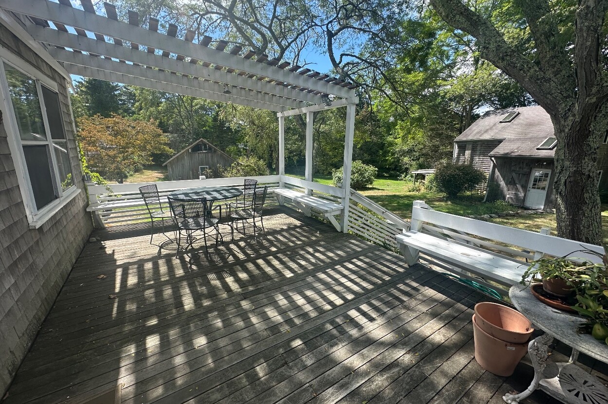 Fabulous multi-building compound offered in West Tisbury. Well maintained main house dating to 1880 has many features common to classic older homes but has been updated to provide comfort and year-round livability. Bright and cozy there are lots of rooms and spaces to provide for a larger group of individuals with a total of 4 bedrooms in the main house and a partially finished walk-out basement. In addition to the guest house which has 1 bedroom, there is a bunkhouse/office that could be finished off and there is a small garage in the center that has the feeling of a party barn and could be finished off to be a wonderful space for gathering, an art studio or a what ever you can imagine. A 5 bedroom septic system serves the property. Any expansion would need to be discussed with the engineer. All told this cherished property is a wonderful opportunity for a great island home.