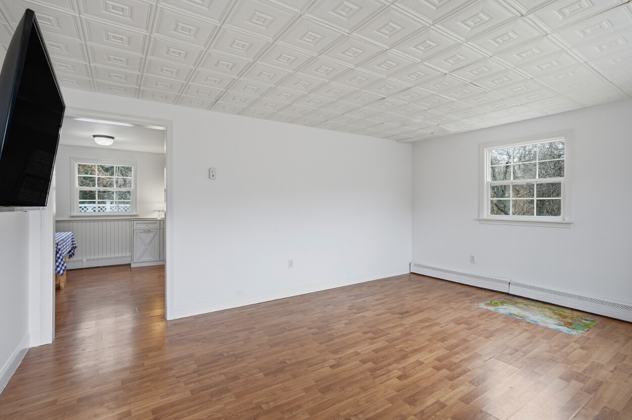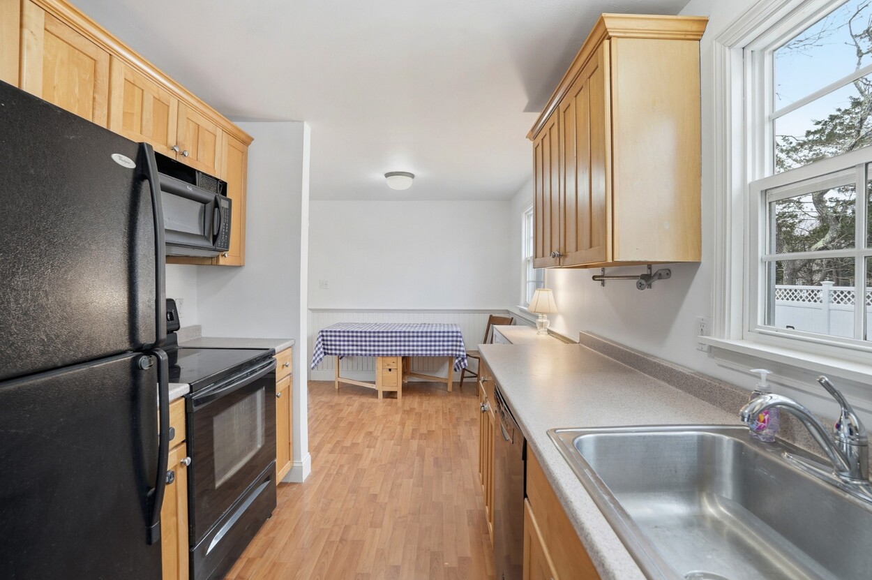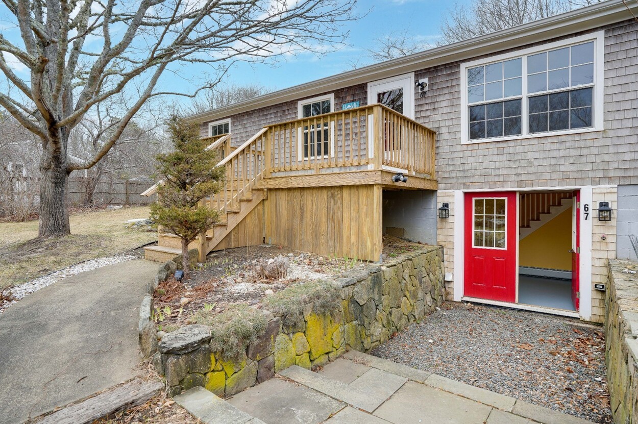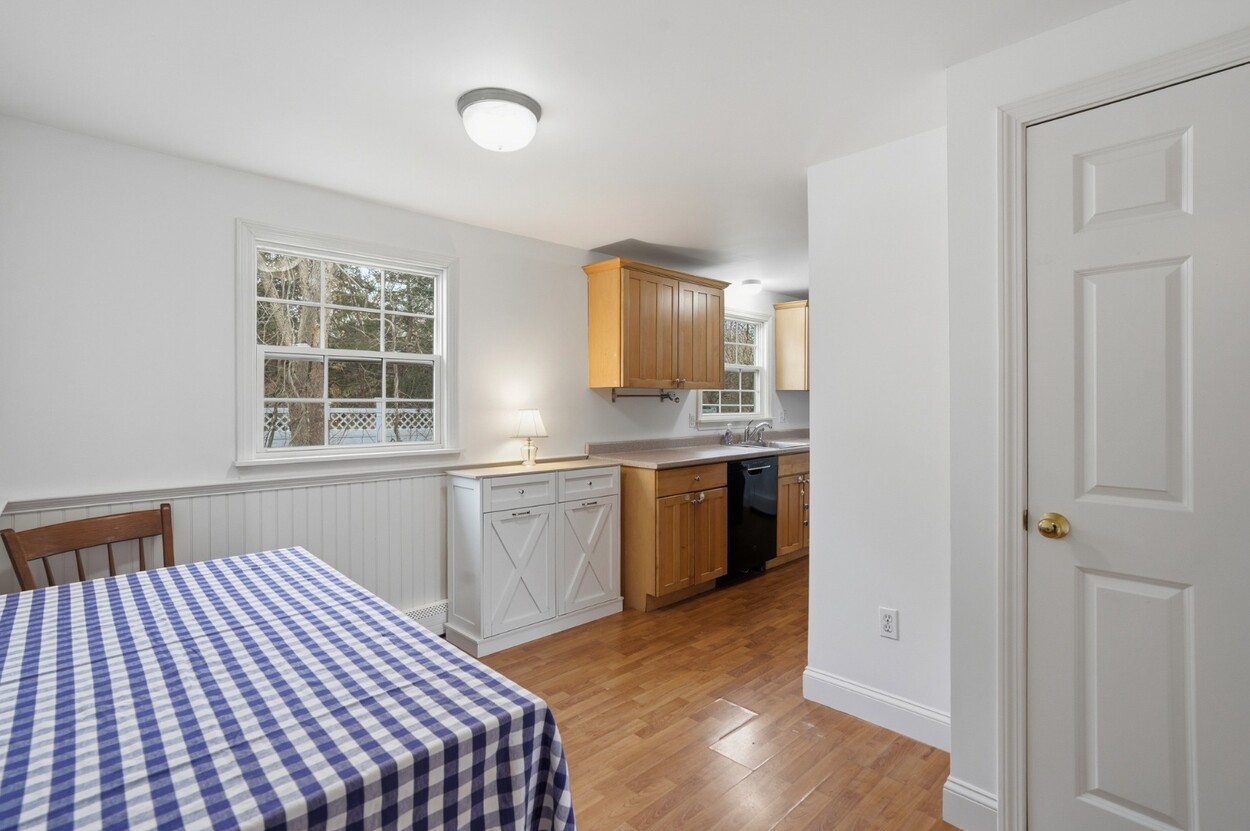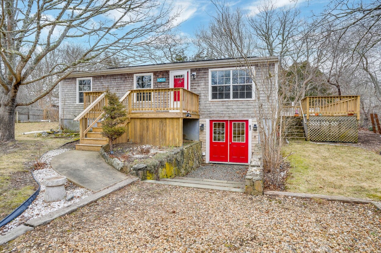 Turnkey ranch in a central island location with access to all towns and beaches. The main level features a sunny living area, kitchen, full bath, and three bedrooms, plus a front deck and a side deck perfect for outdoor dining, grilling, and laid-back summer evenings. The lower level offers an additional 960 sq ft with interior and exterior access, a full bath, two spacious rooms, laundry, and plenty of storage. Enjoy year-round comfort with oil heat and mini splits for heating and A/C. The property includes a generous yard with flowering bushes, fruit trees, a peaceful pond, and garden boxes ready for planting. Ample off-street parking makes hosting easy. This home is being sold as-is, you can add your personal touches. Leased solar panels help offset electric costs, often generating excess power back to the grid.
