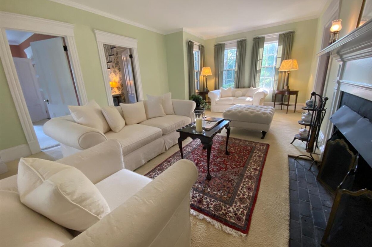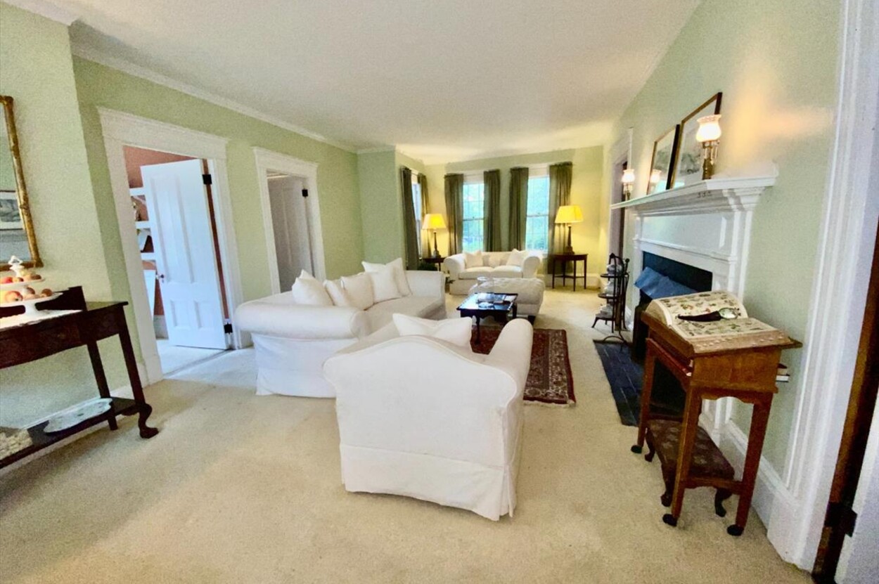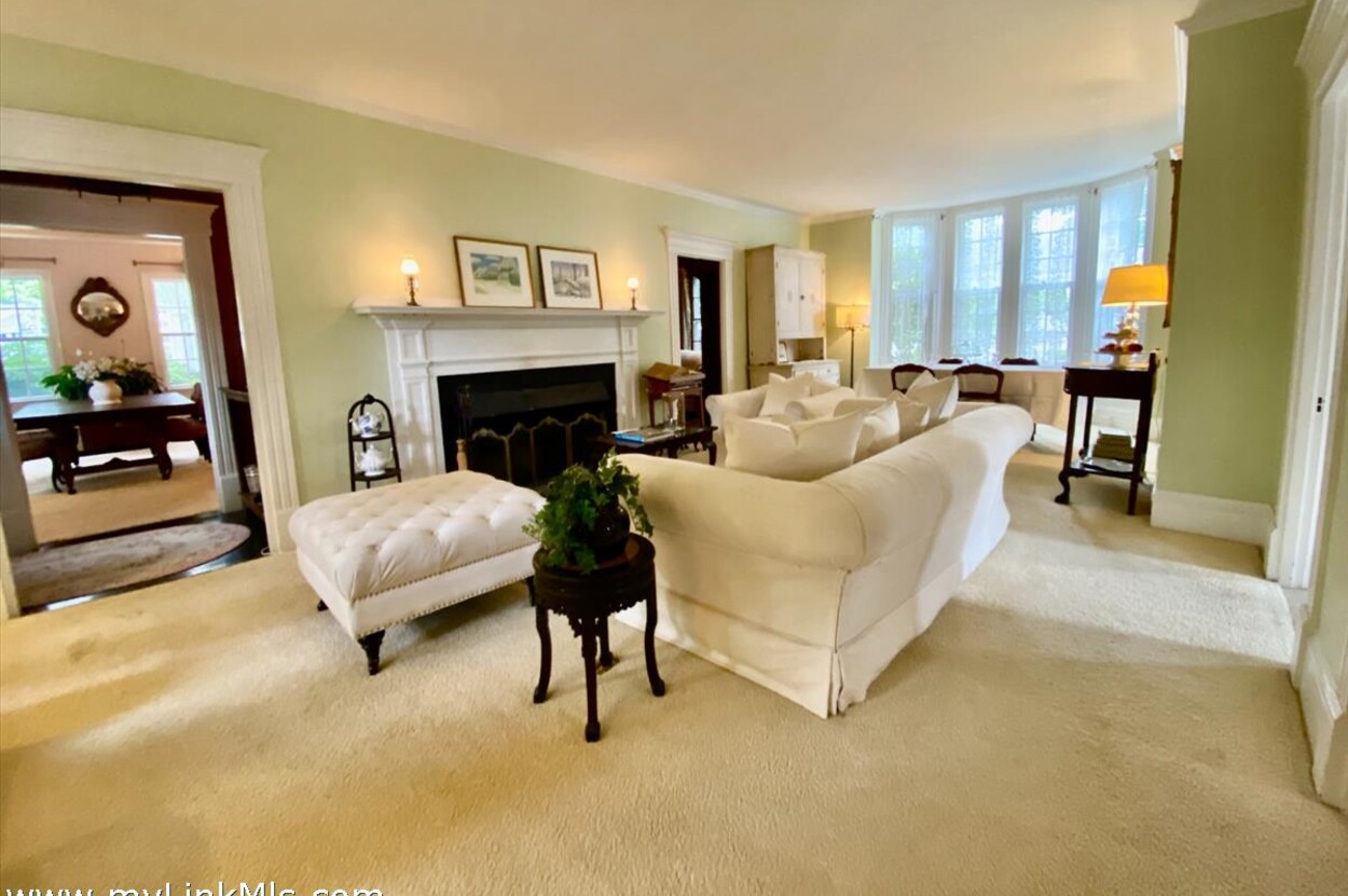 NOW INCLUDING RARE 12,527 S.F. TOWN APPROVED BUILDING LOT ON WILLIAM STREET! Storybook setting in the quaint seaside village of Vineyard Haven, the commanding Captain Gilbert L. Smith House*, c. 1854, affords an enchanting opportunity for space and privacy within the highly sought after William Street Historic District, just two blocks to all the shops, restaurants, galleries, town beach, tennis, and ferry. For 35 years, home of Susan Branch, the illustrious self-taught artist and author of New York Times best-seller "Martha's Vineyard, Isle of Dreams," this quintessential Greek Revival gem with Neoclassical touches enjoys over 3,300 s.f. of living space on .92 acre in-town with wood floors throughout and cheerful morning and afternoon sunlight. With period paneling, crown molding, and 9' ceilings, the floor plan includes a welcoming front hall entry with lovely curved staircase, front parlor, formal living room with fireplace and bay window, spacious dining room, second side entrance vestibule used as a dry bar, cozy wood paneled study/tv room, eat-in kitchen with wainscotting, east-facing side porch, laundry/storage room, and a half bath. With a convenient back staircase off the kitchen, the second floor includes additional spacious rooms: A large primary bedroom with fireplace, double closets and ensuite bath, sitting room, three additional bedrooms, two with double closets, one with bay window, plus two additional full baths. Wonderful two-story carriage house - barn, expansive lawn and yard, tea-house pergola for afternoon tea, cocktail social, and alfresco dining. Seller has plans for potential renovation of the barn to include a studio apartment - see Documents. Mature plantings including privet, flowering trees and bushes, perennials, historic Linden trees, and herb garden. Six (6) bedroom approved Title 5 septic. A rare opportunity for those who appreciate the history and value of historic homes in a sailing port which as been described as "the sweetest little harbor on the east coast." Extensive list of furnishings and household items available for purchase by separate bill of sale. Property is also available for purchase at $2,300,000 without the approved 12,527 s.f. buildable lot
