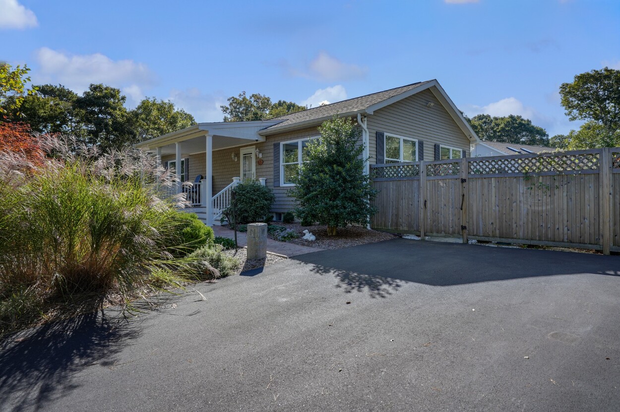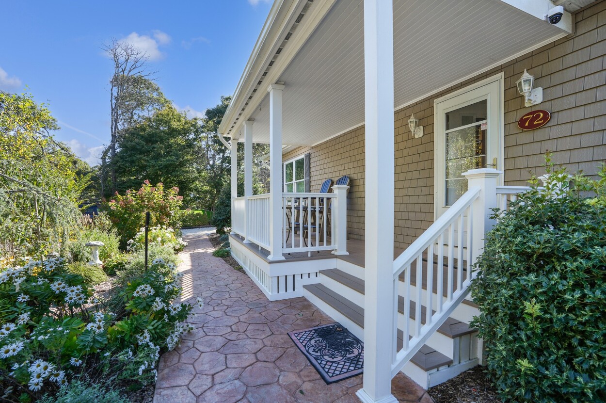 Covered Front porch to enjoy the beautiful butterfly and hummingbird garden.
