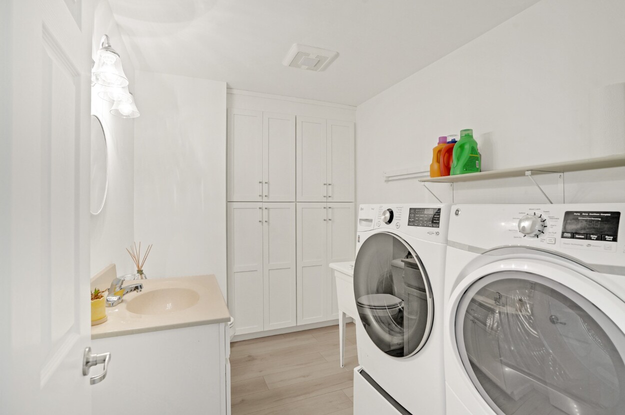 Laundry room with ½ bath and Ceiling to floor Custom Cabinets.