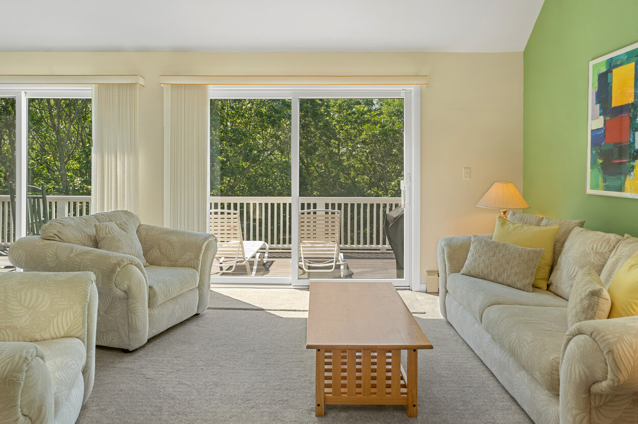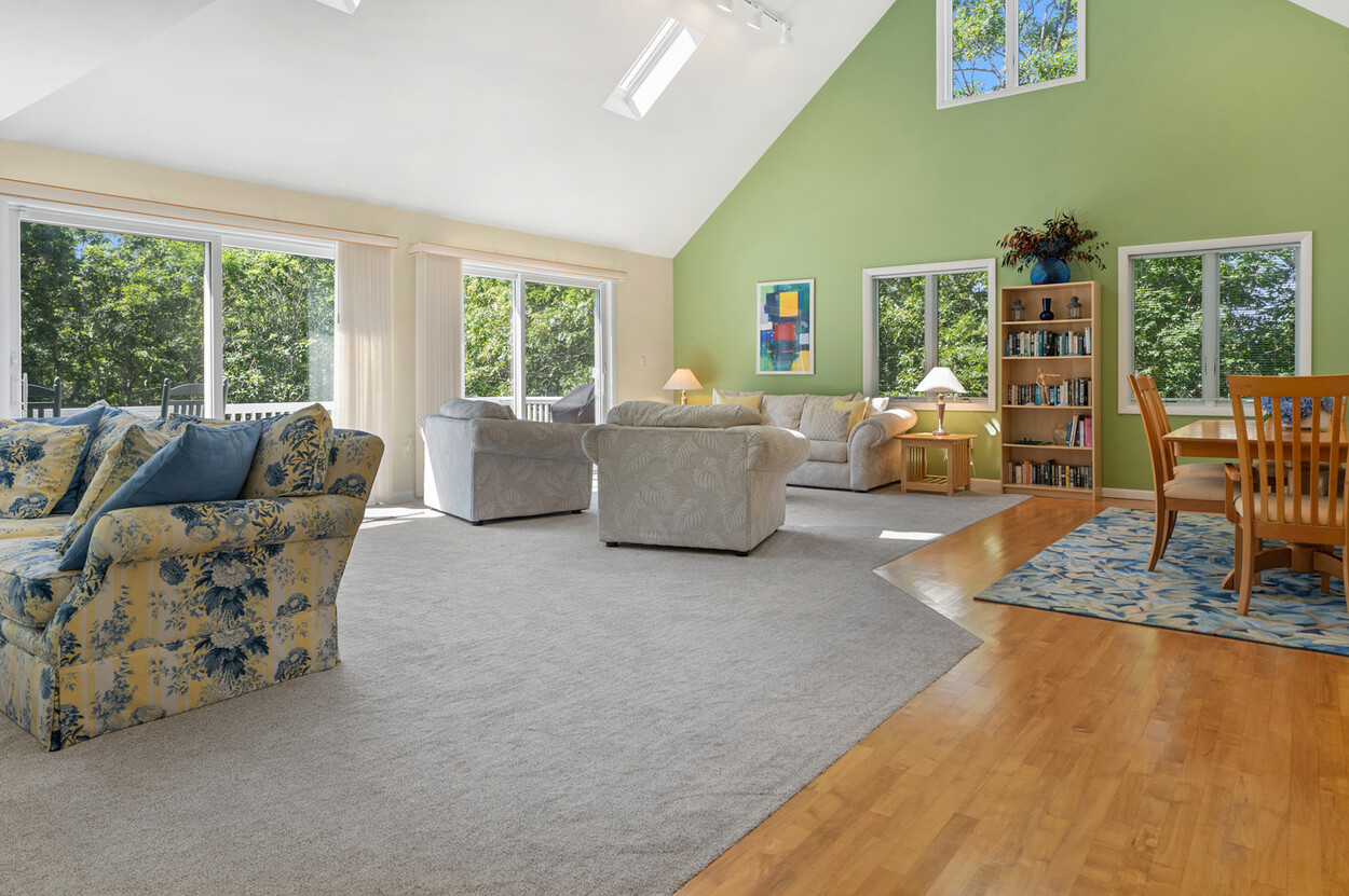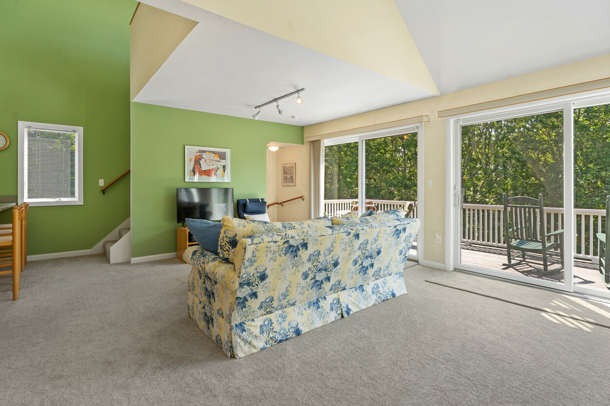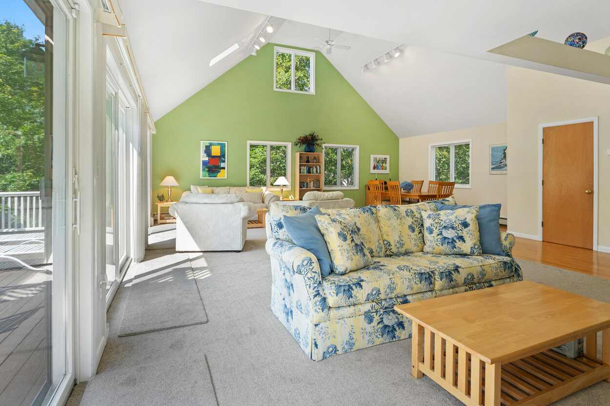 Nestled in a tranquil residential neighborhood, at the top of a curved drive through beautiful trees, this well-maintained home in move-in condition offers an idyllic Martha's Vineyard lifestyle. Custom-built for quality and convenience by a prestigious Island builder, every detail was thoughtfully planned for exclusive use by the family as a cherished year-round vacation home. The open floor plan centers around the bright second-floor great room illuminated by skylights in the cathedral ceiling, and a wall of sliding doors leading to a large deck overlooking lush green treetops with grill and dining areas for al fresco entertaining. A third-floor loft provides overflow for guests or a lounge area with its own balcony for sunbathing or stargazing. The entry level includes a large primary bedroom with en-suite bath, a convenient laundry alcove, and two additional bedrooms with a shared bath and soundproof insulation. New mahogany outdoor shower and shingles, recent rugs, roof and skylights are just a few of the improvements.