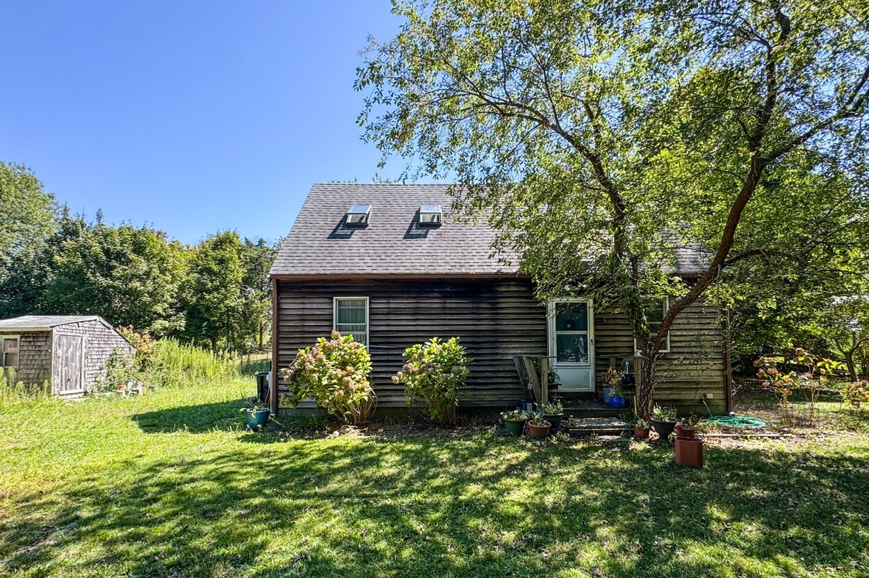 Nestled in a quiet Oak Bluffs neighborhood, less than a mile from the harbor, beaches, shops, and restaurants, this Cape-style home offers the perfect balance of convenience and tranquility. The interior features an open kitchen and living room, plenty of space for guests, and a full unfinished basement. The two bedroom Title V septic system has passed inspection. Outside, the property features a sunlit lawn framed by mature trees, offering space to garden, play, or simply relax. With plenty of potential and ready for your upgrades, this is a rare opportunity to own in great location for summer or year-round enjoyment.