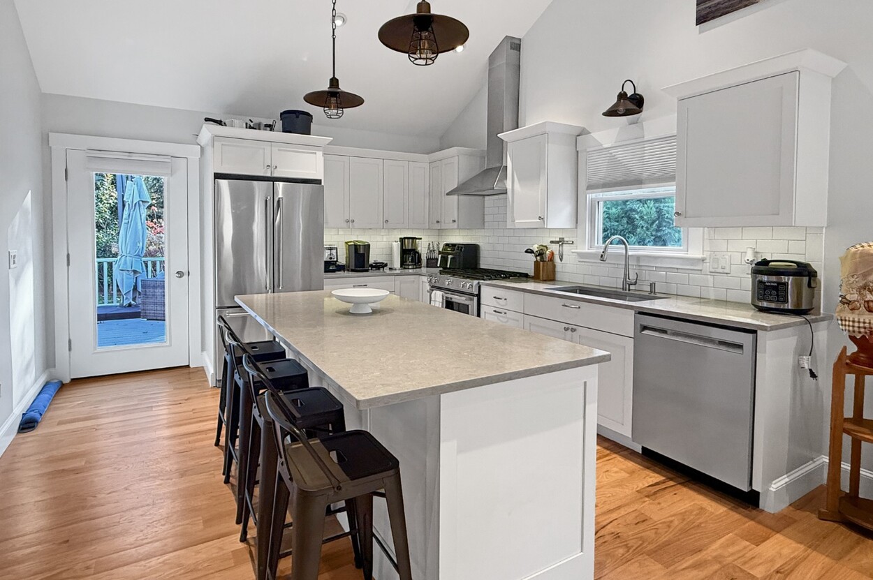 Thoughtful details and high-end finishes shine throughout this four-bedroom, two-bath Vineyard Haven residence. Its versatile layout offers both flexibility and functionality, appealing to buyers seeking a comfortable single-family home or the potential to create a separate accessory dwelling unit. No expense was spared on the beautifully landscaped yard, which features a fire pit, a large storage shed, and raised garden beds. Elegant hardscaping elevates the exterior and provides multiple inviting outdoor living spaces. Located in a quiet neighborhood, the property offers privacy while remaining close to Tashmoo, the boat landing, and downtown Tisbury's shops and restaurants. A home to take pride in.