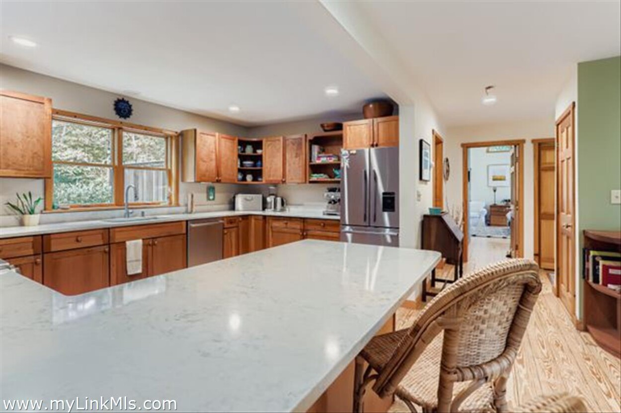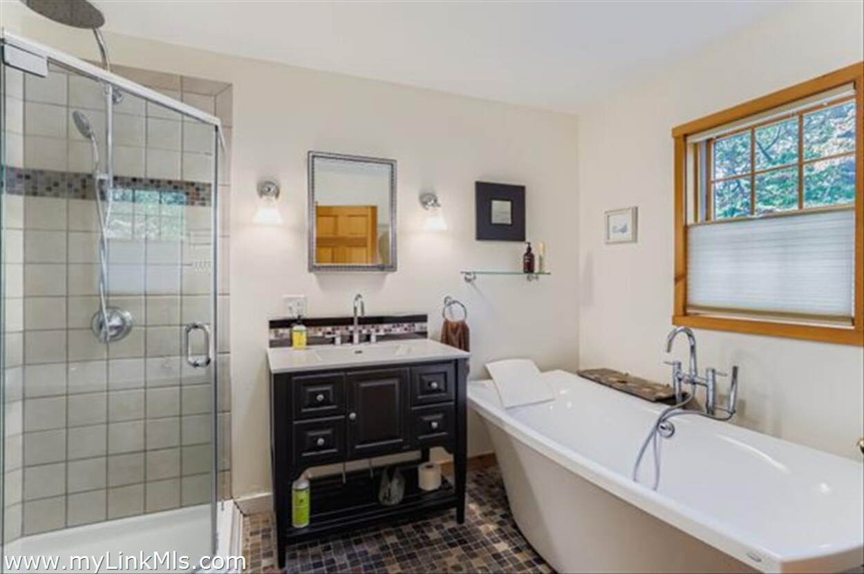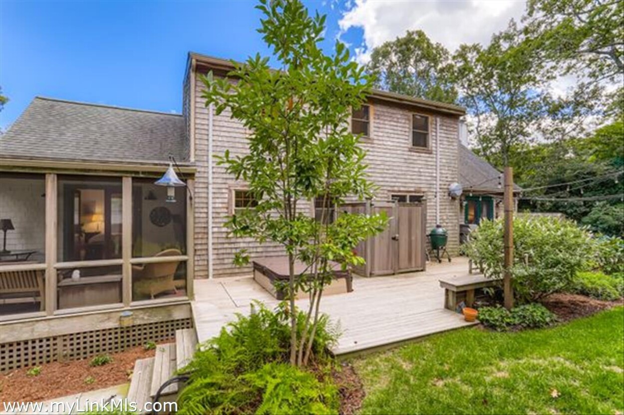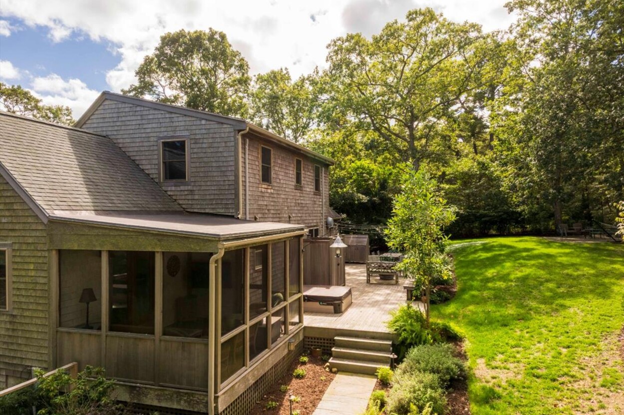 The level of landscape and hardscape on this property really elevates the setting. The yard is spacious and well-fenced. You can walk past an upper patio area to a private gate where you can jump on trails for a nice walk from your backyard. The sunny front covered porch has ample room for outdoor living and enjoying the south side of the property. The mature plantings really create a feeling of privacy on this serene lot with the Vineyard Haven amenities so close by (restaurants, Mink Meadows conveniently located behind the house, the VH Yacht Club, West Chop Yacht Club, Owen Park, Tashmoo, and the town tennis courts -clay and hard surface). Life is convenient in Tisbury!