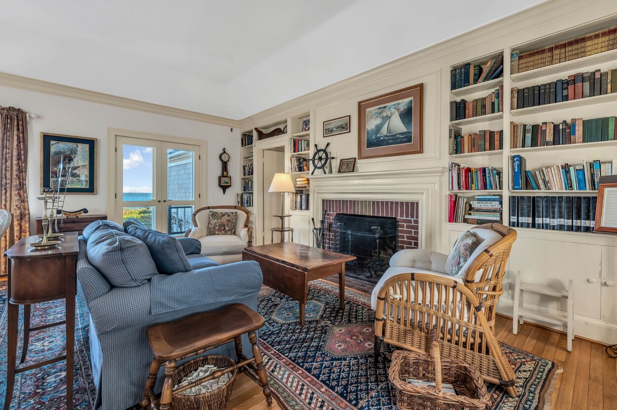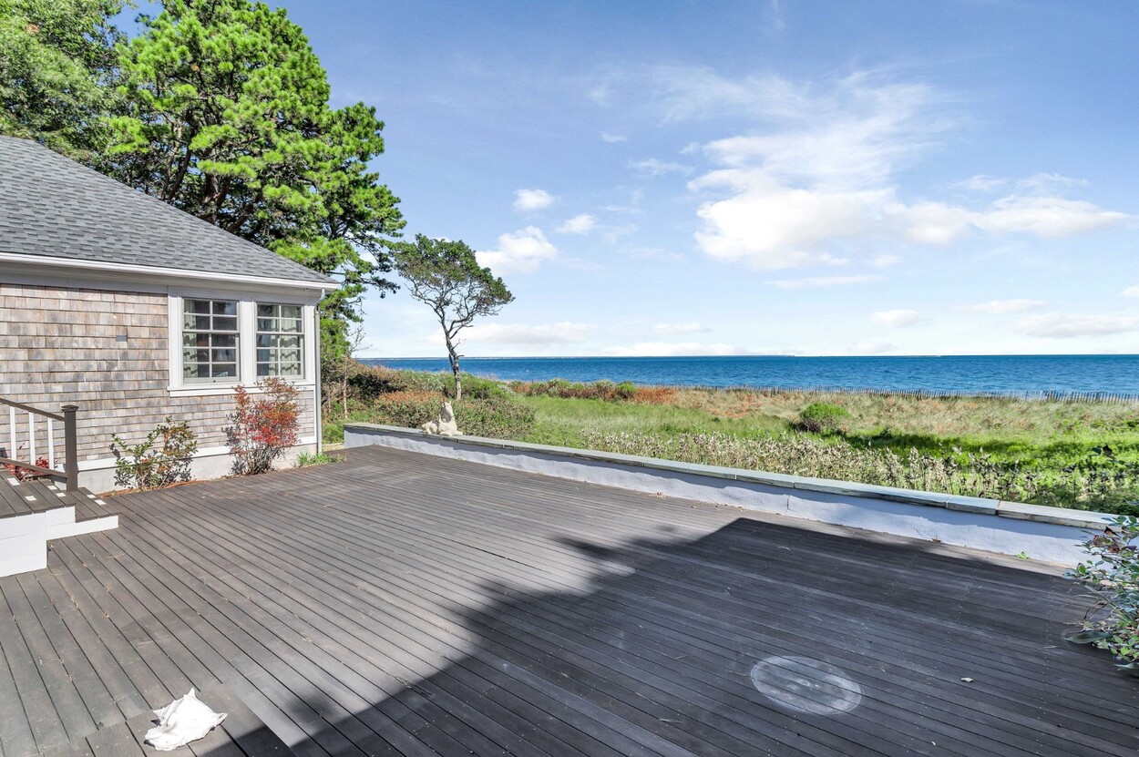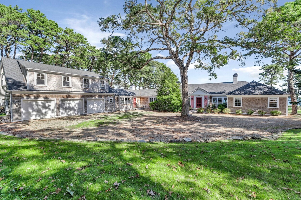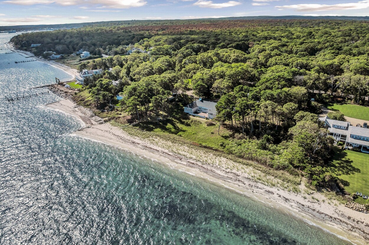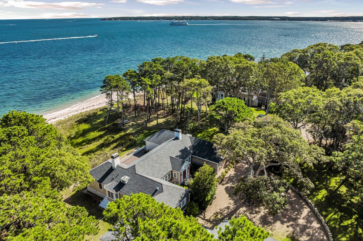 Set on 1.75 acres this waterfront home features 200+/- feet of sandy beach on the outer harbor in the community of West Chop. Upon entering the home, the stunning view of the outer harbor and Nantucket Sound is breathtakingly beautiful. Perfect for hosting large parties or intimate family gatherings the spacious living room spills onto the large deck through two sets of French doors. Gleaming hardwood floors and a fireplace surrounded by built in bookcases add to the charm of this inviting center of the home. The kitchen includes a breakfast nook complete with a raised hearth fireplace and opens to the screen porch and barbecue deck. The cooks in the family will enjoy gathering around the large center island for meal preparation. An abundance of cabinets and counters plus a large butler's pantry completes this well-designed space. Every room enjoys a view of the water, especially the master suite featuring a sitting area with its own fireplace and a corner framed by a cluster of windows looking out to Nantucket Sound. The luxurious bath and double walk-in closets add to the comfort of this private retreat. Three additional bedrooms, one with an en-suite bath and two with a shared bath, are tucked in a separate wing on the opposite side of the house. Over the attached three-car garage, a delightful guest suite offers two bedrooms, a full bath, sitting area, kitchenette and private deck with views of the Sound. Central air conditioning and forced hot air heat. Title 5 septic system designed for six bedrooms. Portable generator.