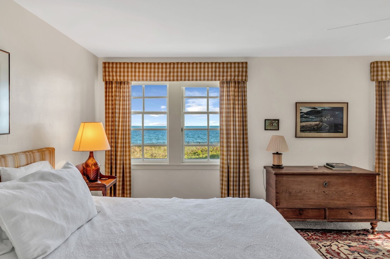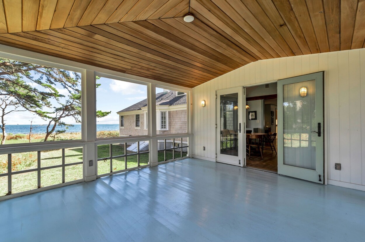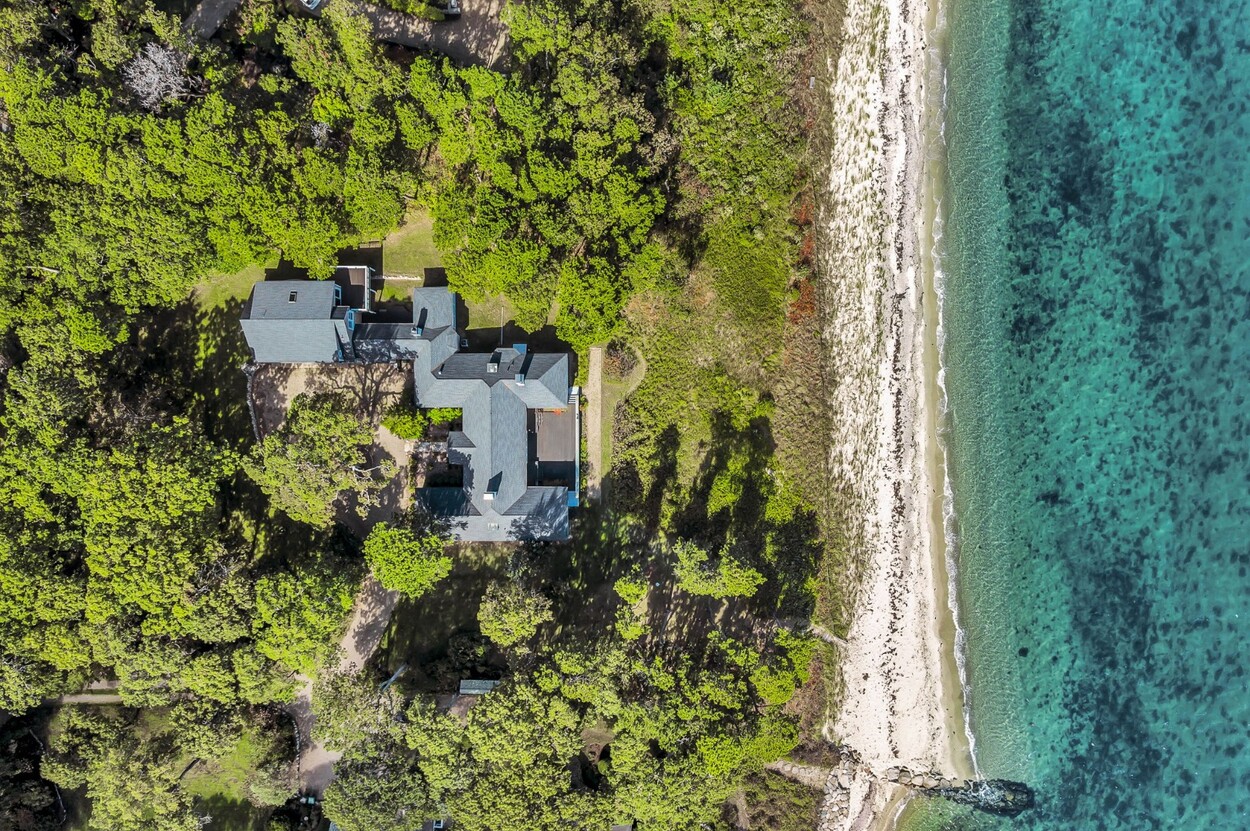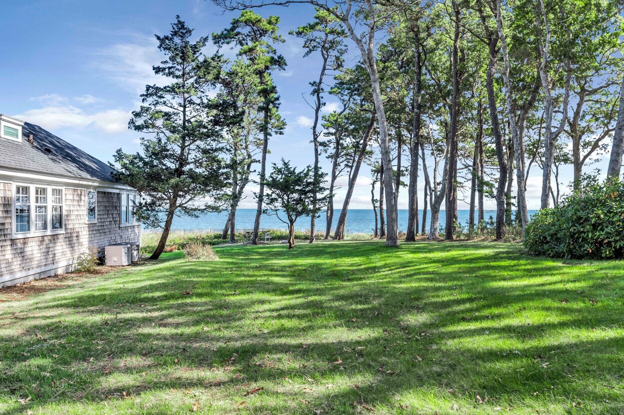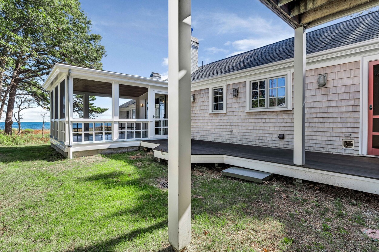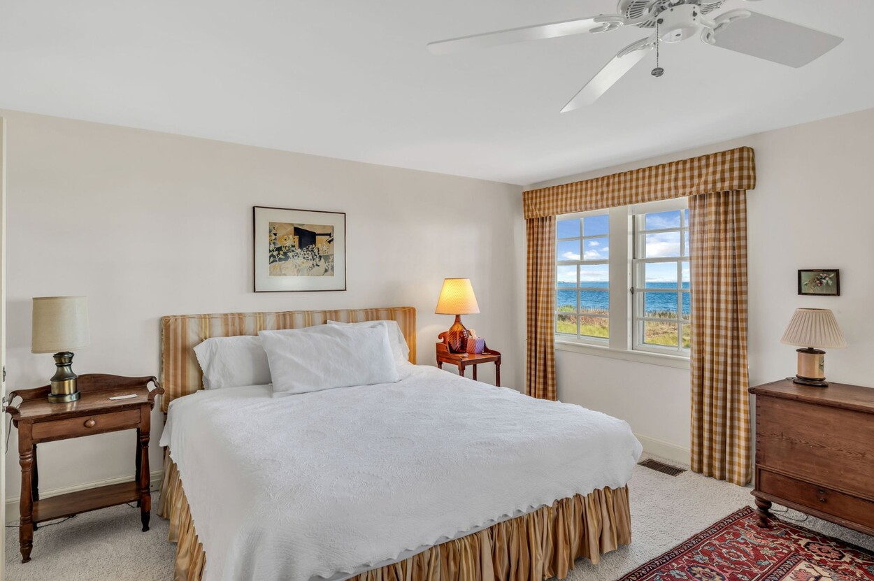 Set on 1.75 acres this waterfront home features 200+/- feet of sandy beach on the outer harbor in the community of West Chop. Upon entering the home, the stunning view of the outer harbor and Nantucket Sound is breathtakingly beautiful. Perfect for hosting large parties or intimate family gatherings the spacious living room spills onto the large deck through two sets of French doors. Gleaming hardwood floors and a fireplace surrounded by built in bookcases add to the charm of this inviting center of the home. The kitchen includes a breakfast nook complete with a raised hearth fireplace and opens to the screen porch and barbecue deck. The cooks in the family will enjoy gathering around the large center island for meal preparation. An abundance of cabinets and counters plus a large butler's pantry completes this well-designed space. Every room enjoys a view of the water, especially the master suite featuring a sitting area with its own fireplace and a corner framed by a cluster of windows looking out to Nantucket Sound. The luxurious bath and double walk-in closets add to the comfort of this private retreat. Three additional bedrooms, one with an en-suite bath and two with a shared bath, are tucked in a separate wing on the opposite side of the house. Over the attached three-car garage, a delightful guest suite offers two bedrooms, a full bath, sitting area, kitchenette and private deck with views of the Sound. Central air conditioning and forced hot air heat. Title 5 septic system designed for six bedrooms. Portable generator.