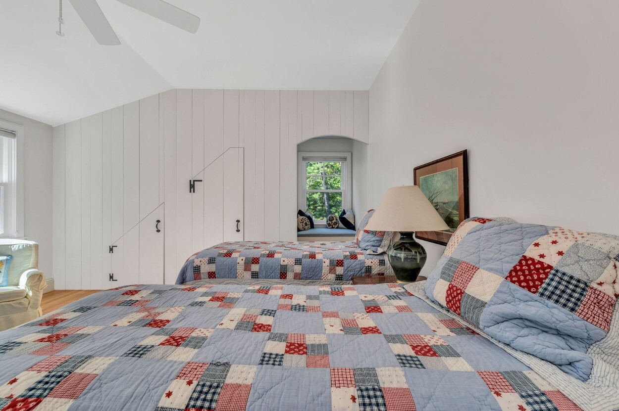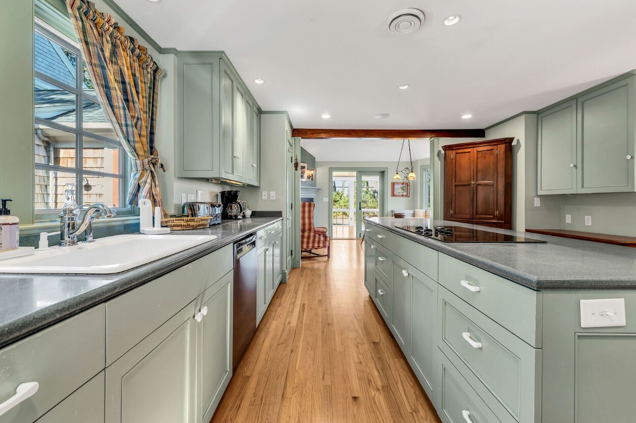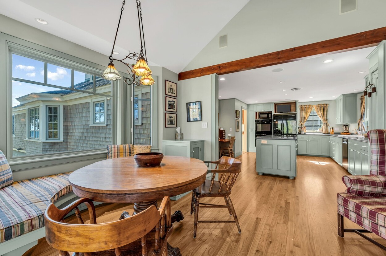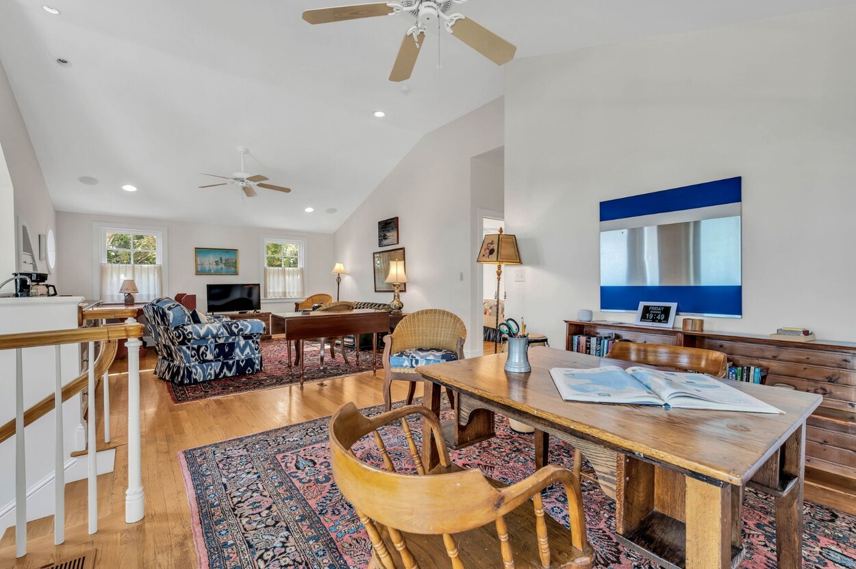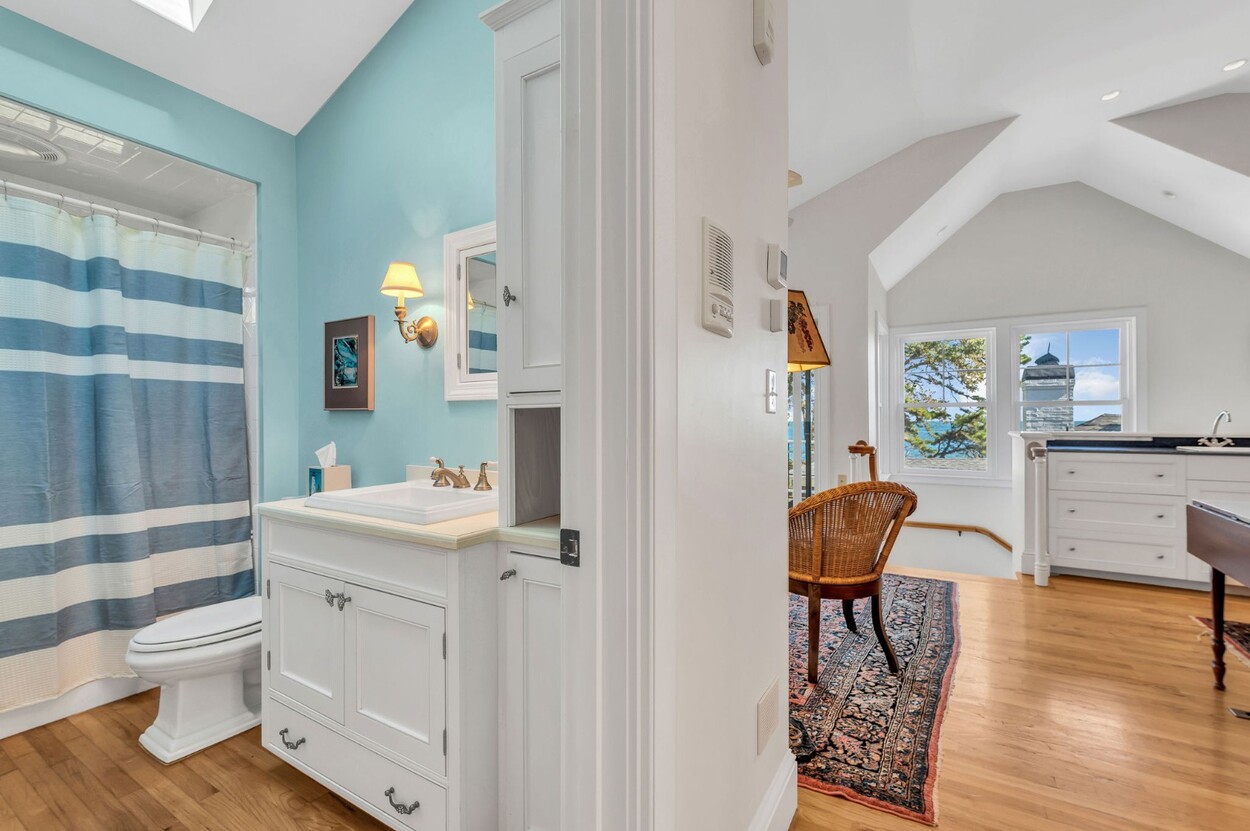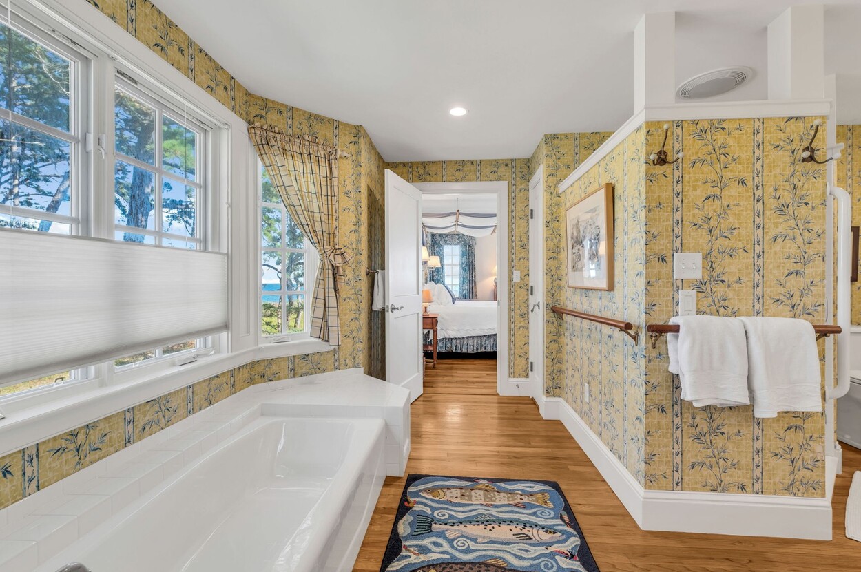 Set on 1.75 acres this waterfront home features 200+/- feet of sandy beach on the outer harbor in the community of West Chop. Upon entering the home, the stunning view of the outer harbor and Nantucket Sound is breathtakingly beautiful. Perfect for hosting large parties or intimate family gatherings the spacious living room spills onto the large deck through two sets of French doors. Gleaming hardwood floors and a fireplace surrounded by built in bookcases add to the charm of this inviting center of the home. The kitchen includes a breakfast nook complete with a raised hearth fireplace and opens to the screen porch and barbecue deck. The cooks in the family will enjoy gathering around the large center island for meal preparation. An abundance of cabinets and counters plus a large butler's pantry completes this well-designed space. Every room enjoys a view of the water, especially the master suite featuring a sitting area with its own fireplace and a corner framed by a cluster of windows looking out to Nantucket Sound. The luxurious bath and double walk-in closets add to the comfort of this private retreat. Three additional bedrooms, one with an en-suite bath and two with a shared bath, are tucked in a separate wing on the opposite side of the house. Over the attached three-car garage, a delightful guest suite offers two bedrooms, a full bath, sitting area, kitchenette and private deck with views of the Sound. Central air conditioning and forced hot air heat. Title 5 septic system designed for six bedrooms. Portable generator.