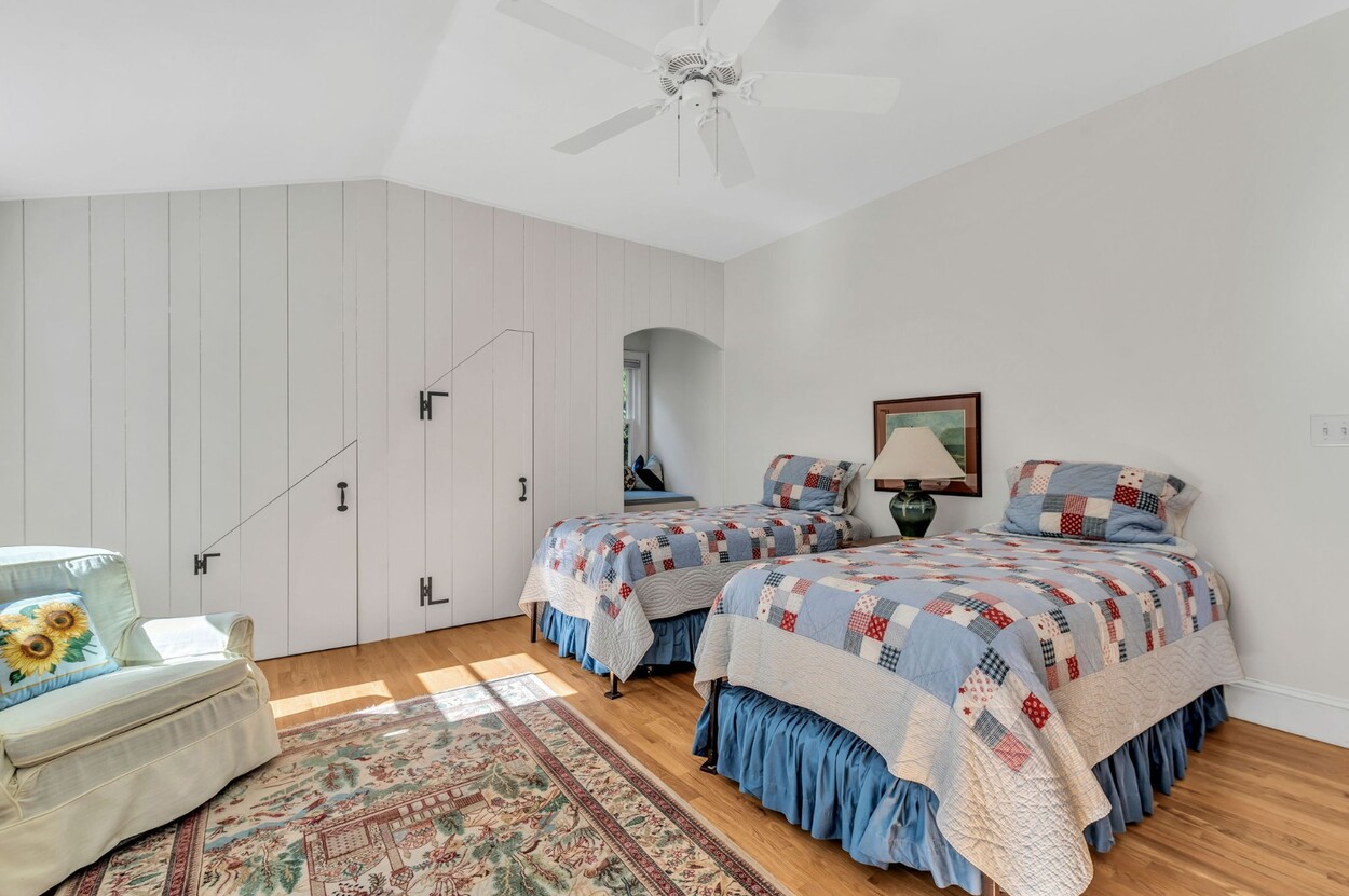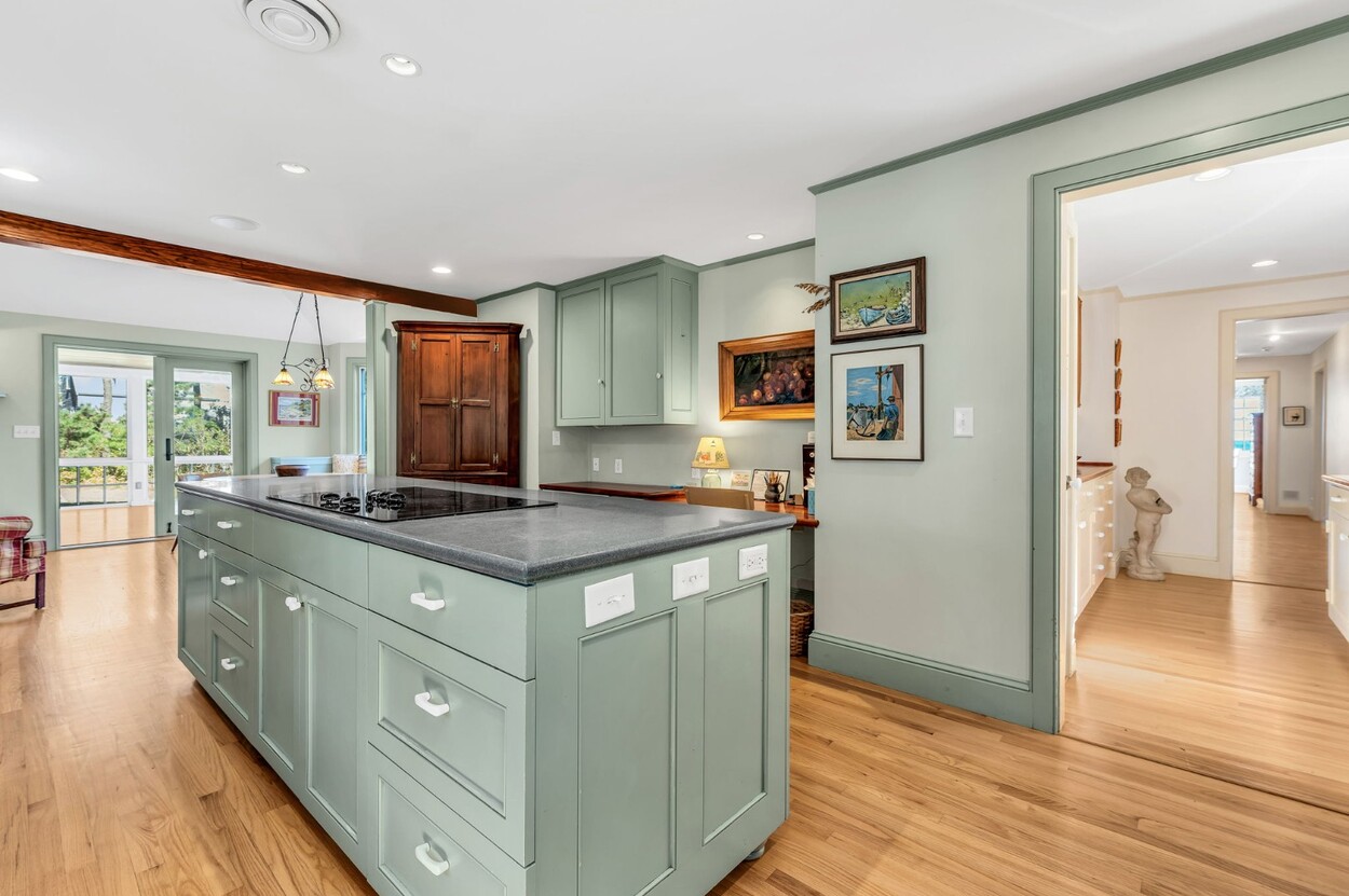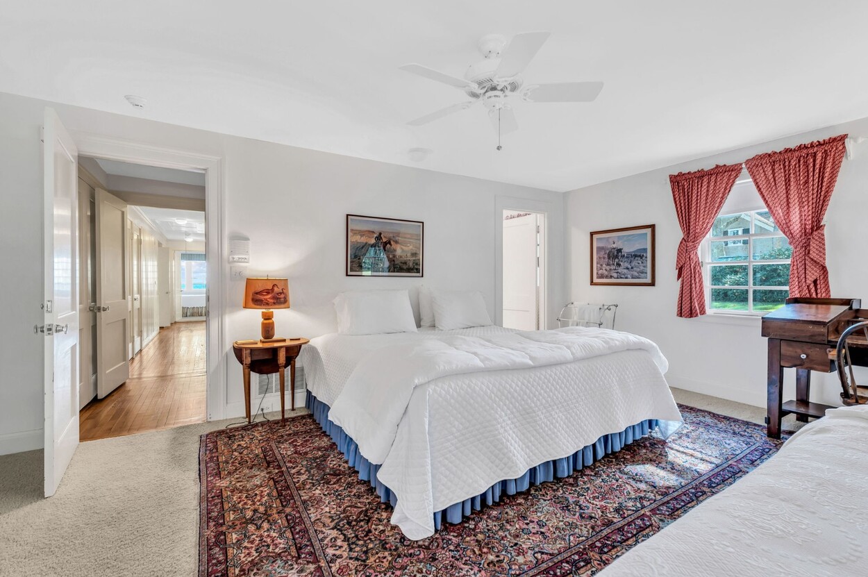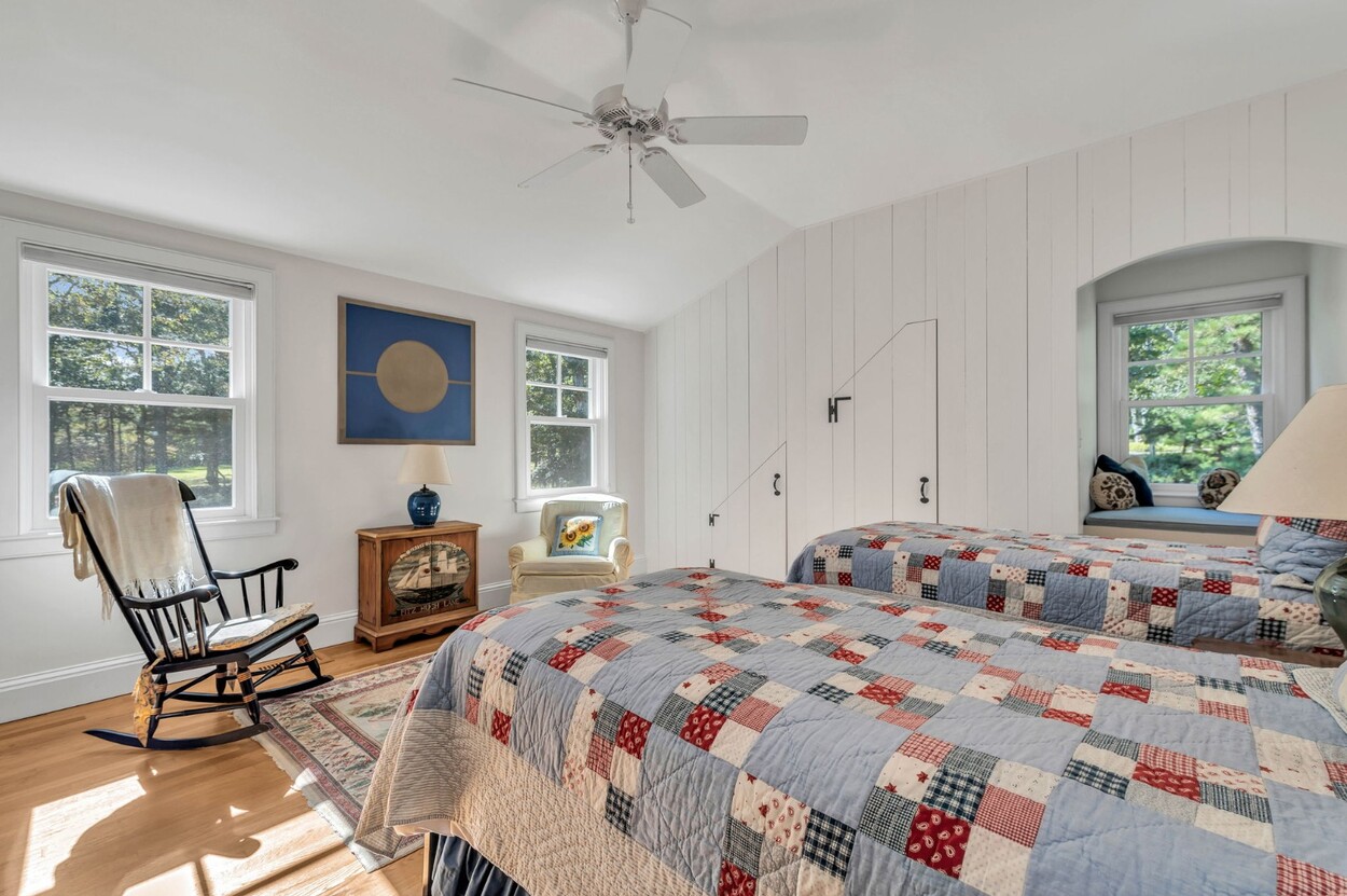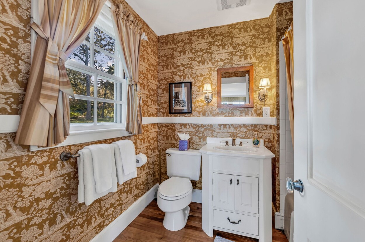 Set on 1.75 acres this waterfront home features 200+/- feet of sandy beach on the outer harbor in the community of West Chop. Upon entering the home, the stunning view of the outer harbor and Nantucket Sound is breathtakingly beautiful. Perfect for hosting large parties or intimate family gatherings the spacious living room spills onto the large deck through two sets of French doors. Gleaming hardwood floors and a fireplace surrounded by built in bookcases add to the charm of this inviting center of the home. The kitchen includes a breakfast nook complete with a raised hearth fireplace and opens to the screen porch and barbecue deck. The cooks in the family will enjoy gathering around the large center island for meal preparation. An abundance of cabinets and counters plus a large butler's pantry completes this well-designed space. Every room enjoys a view of the water, especially the master suite featuring a sitting area with its own fireplace and a corner framed by a cluster of windows looking out to Nantucket Sound. The luxurious bath and double walk-in closets add to the comfort of this private retreat. Three additional bedrooms, one with an en-suite bath and two with a shared bath, are tucked in a separate wing on the opposite side of the house. Over the attached three-car garage, a delightful guest suite offers two bedrooms, a full bath, sitting area, kitchenette and private deck with views of the Sound. Central air conditioning and forced hot air heat. Title 5 septic system designed for six bedrooms. Portable generator.