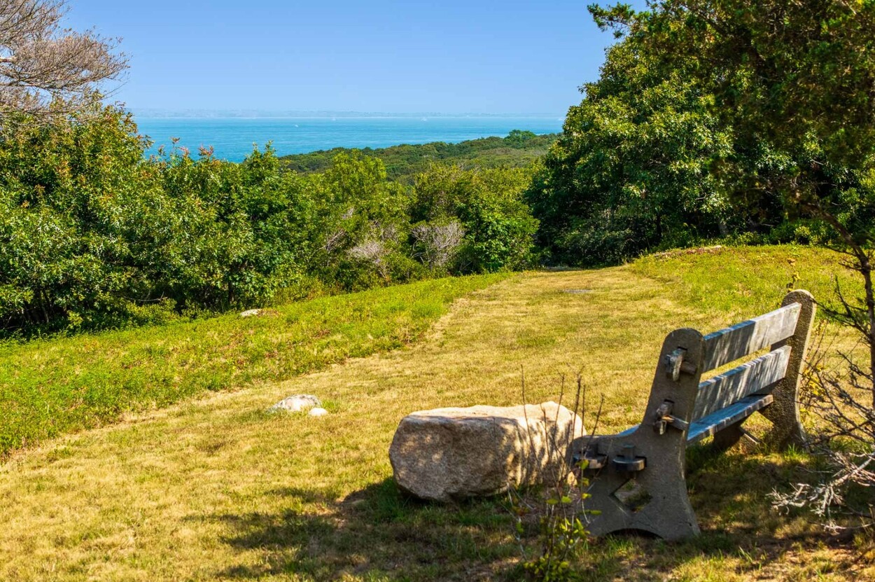 Nestled within Seven Gates Farm, one of Martha's Vineyard's most storied and scenic communities, this 26.5-acre estate offers a beautifully renovated farmhouse that seamlessly blends modern comforts with historic charm. Surrounded by ancient stone walls, mature trees, and lush gardens, the property includes a charming guest house, scenic walking paths, and a peaceful hilltop retreat with a stone bench, offering stunning water views of Vineyard Sound and the Elizabeth Islands. Ideally located just steps from Gray's Beach and dock, this is one of the most picturesque properties in Seven Gates Farm. The Seven Gates Farm community consists of 45 homesites on 1,600 acres with 1,000 acres of protected conservation land, open fields, woodlands, ponds, and miles of trails for walking and horseback riding. Residents of Seven Gates Farm also enjoy exclusive access to 1.5 miles of private beach, two piers, and two tennis courts. This rare opportunity allows you to become part of a remarkable community, once an assembly of farms, that remains dedicated to the preservation and stewardship of the land.