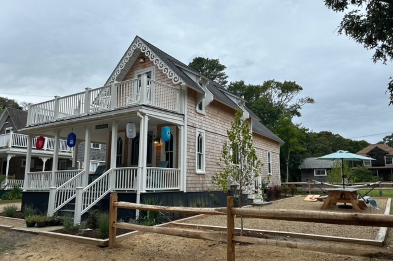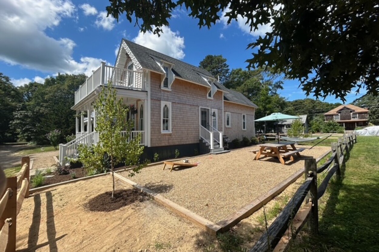 PRIME LOCATION! Beautifully Renovated in Oak Bluffs! This move-in ready home at 9 Brunswick Ave has been thoughtfully and extensively UPDATED inside and out. Enjoy peace of mind with a NEW septic system, siding, windows, water line from the street, and upgraded electrical and plumbing. The interior boasts NEW flooring, insulation, fresh paint, a stylishly renovated kitchen, and efficient new heat/AC systems for extended shoulder season comfort. Professionally landscaped grounds offer curb appeal and outdoor enjoyment, complete with shower and patio furniture for al fresco dining and relaxing. Also included are ALL FURNISHINGS and a handy owner’s shed for extra storage. An exceptional value just moments from downtown Oak Bluffs and Beaches. 5-min walk to Harbor and Library. Rental history $1000. per night (Not part of the Campground Association). OVER $100,000. GROSS RENT POTENTIAL EXCEPTIONAL! SEE "DOCUMENTS" FOR LONG LIST OF IMPROVEMENTS. $57,000. in rental income booked for Summer 2026.