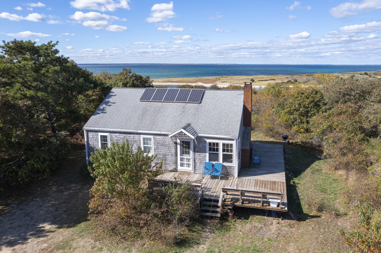COMMANDING WATER VIEWS ON CHAPPAQUIDDICK - This beloved fishing cottage rests high above one of the premier fishing areas on the island of Chappaquiddick. Set apart from the hustle and bustle of downtown, but within easy reach of all Edgartown offers, the pristine views over the wilds of Cape Pogue and the outer harbor bring peace and serenity for all who visit. Fishing, clamming, swimming, sailing, and relaxing with friends or family are just a few of the daily dalliances of time spent on Chappy. There is simply no better place to relax and unwind.