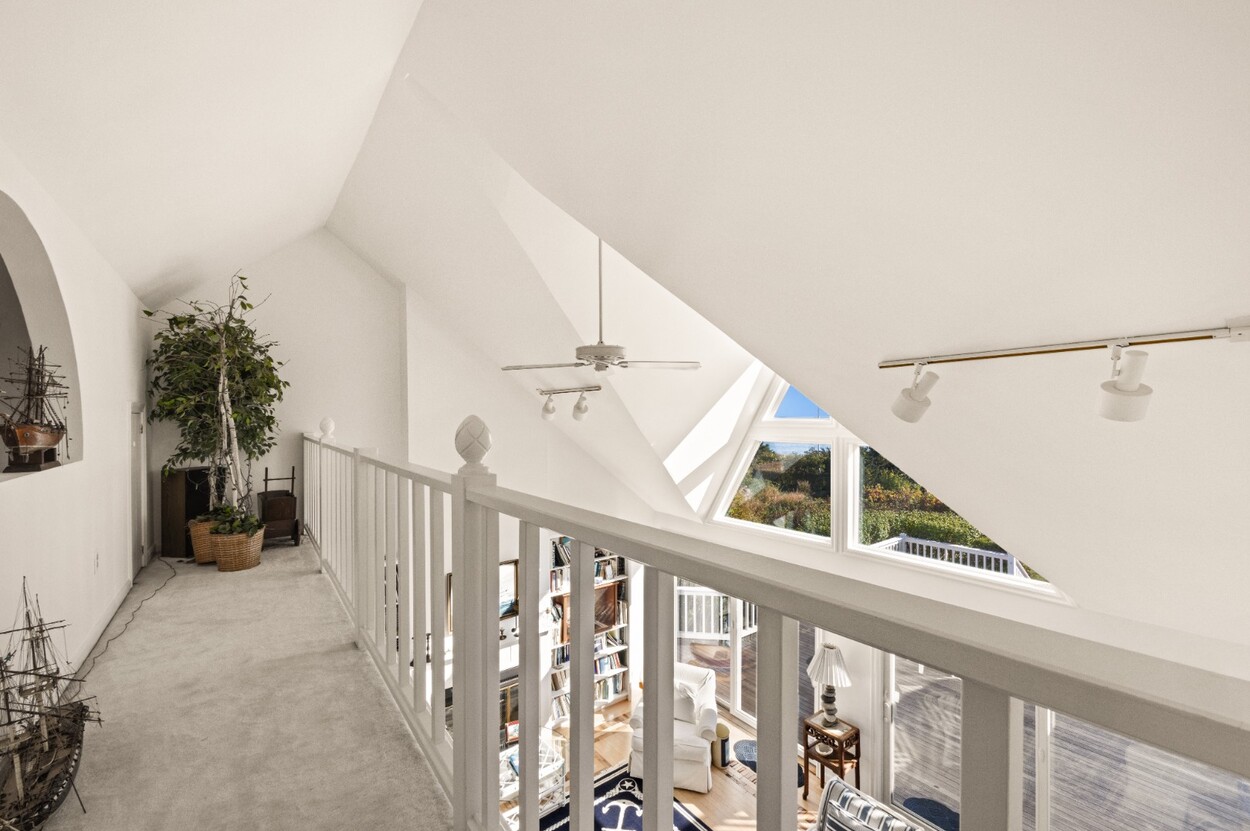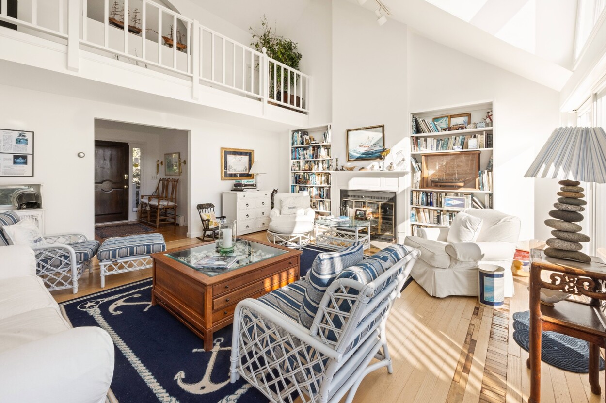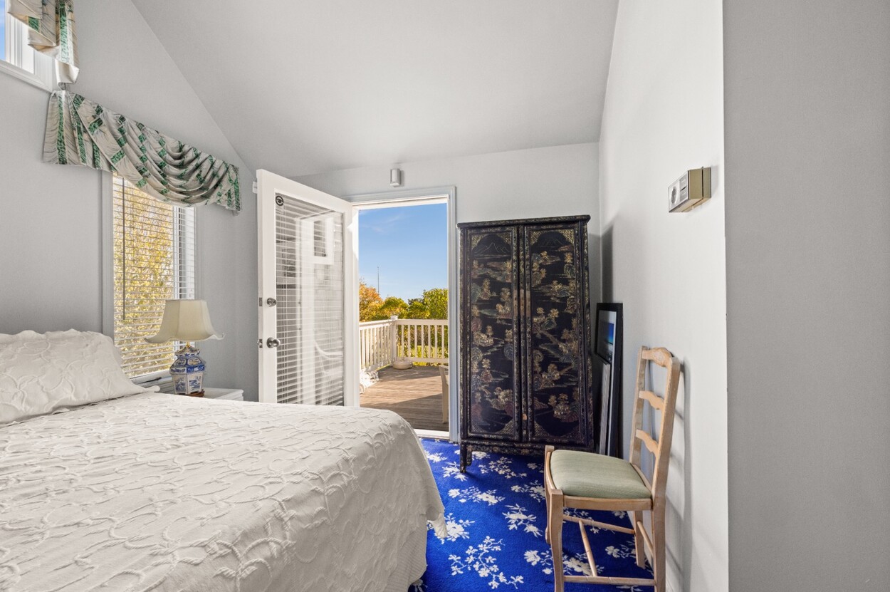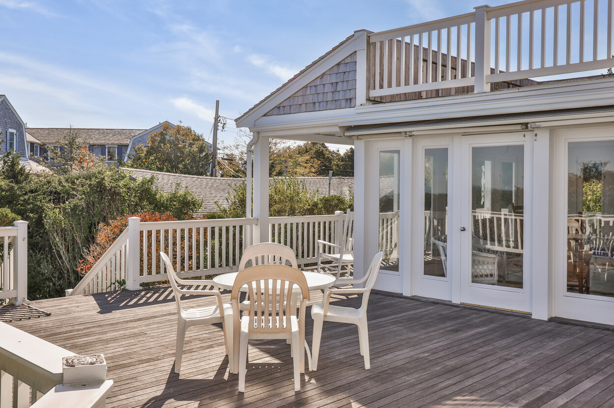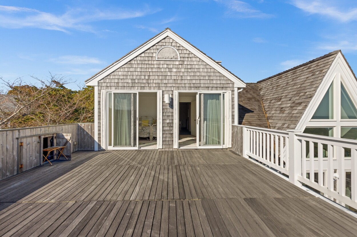 This 4-bedroom / 3-bath home lies in the middle of East Chop at the highest point on the bluff offering expansive views of Vineyard Sound. The home features a large clear story living room with fireplace, a family room/kitchen also with fireplace, a huge screened porch opening up to a large deck area and a first floor bedroom with private bath. The 2nd floor offers two guest bedrooms and a master bedroom with large deck that share two baths. There are entrances on two roads, the grounds are nicely landscaped and there is a garage that could be used for a number of usages.