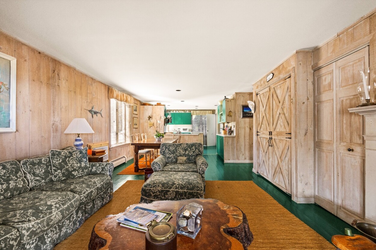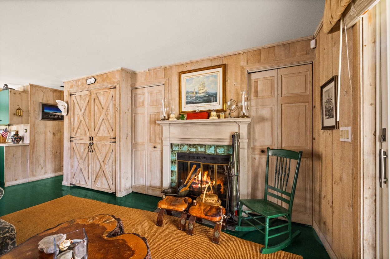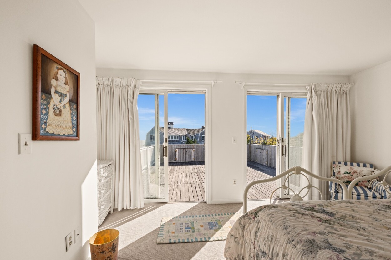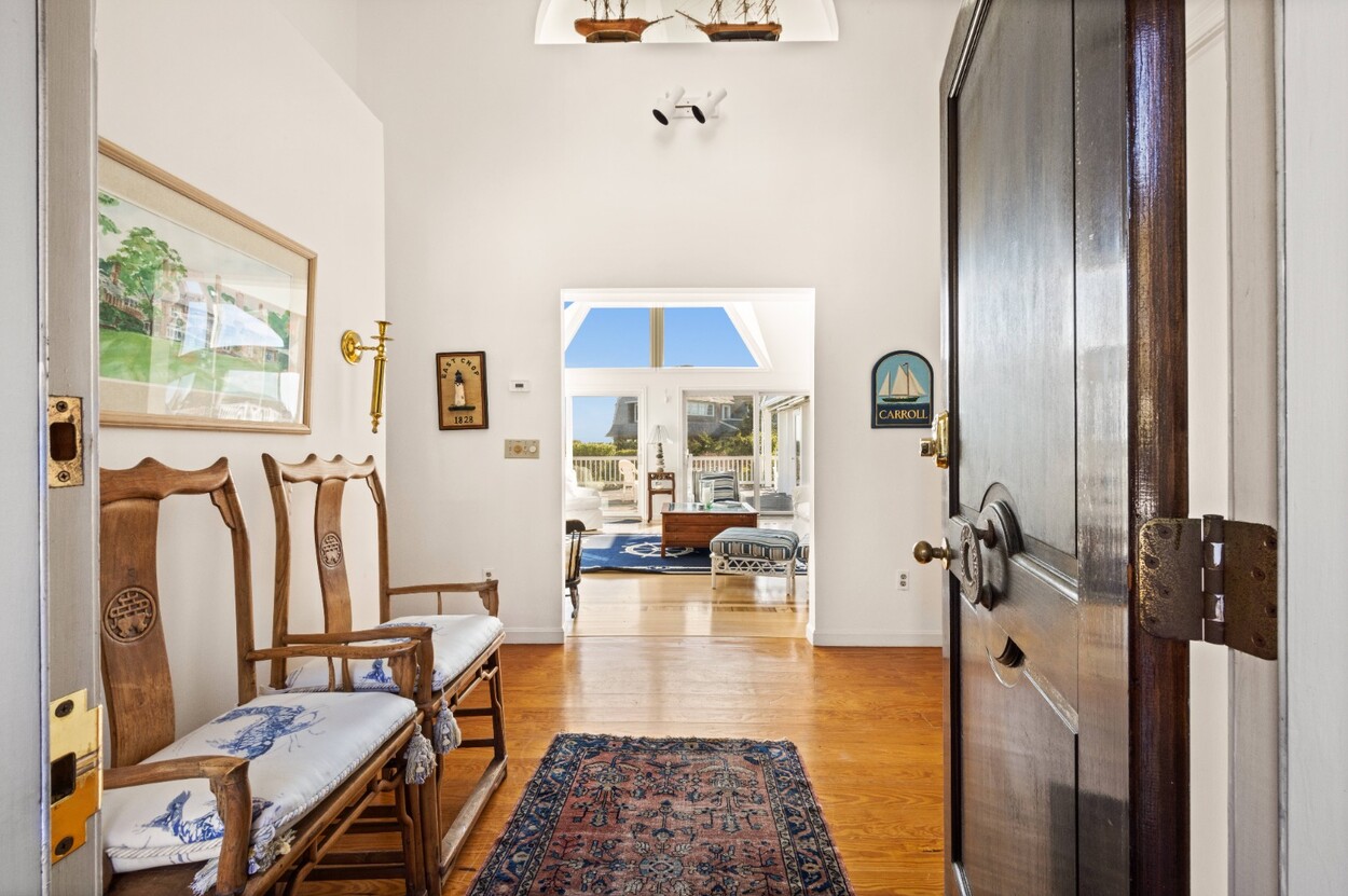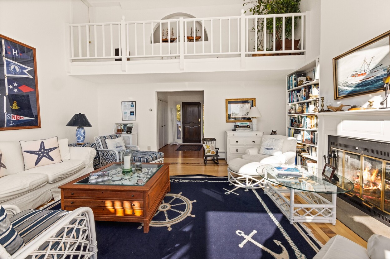 This 4-bedroom / 3-bath home lies in the middle of East Chop at the highest point on the bluff offering expansive views of Vineyard Sound. The home features a large clear story living room with fireplace, a family room/kitchen also with fireplace, a huge screened porch opening up to a large deck area and a first floor bedroom with private bath. The 2nd floor offers two guest bedrooms and a master bedroom with large deck that share two baths. There are entrances on two roads, the grounds are nicely landscaped and there is a garage that could be used for a number of usages.