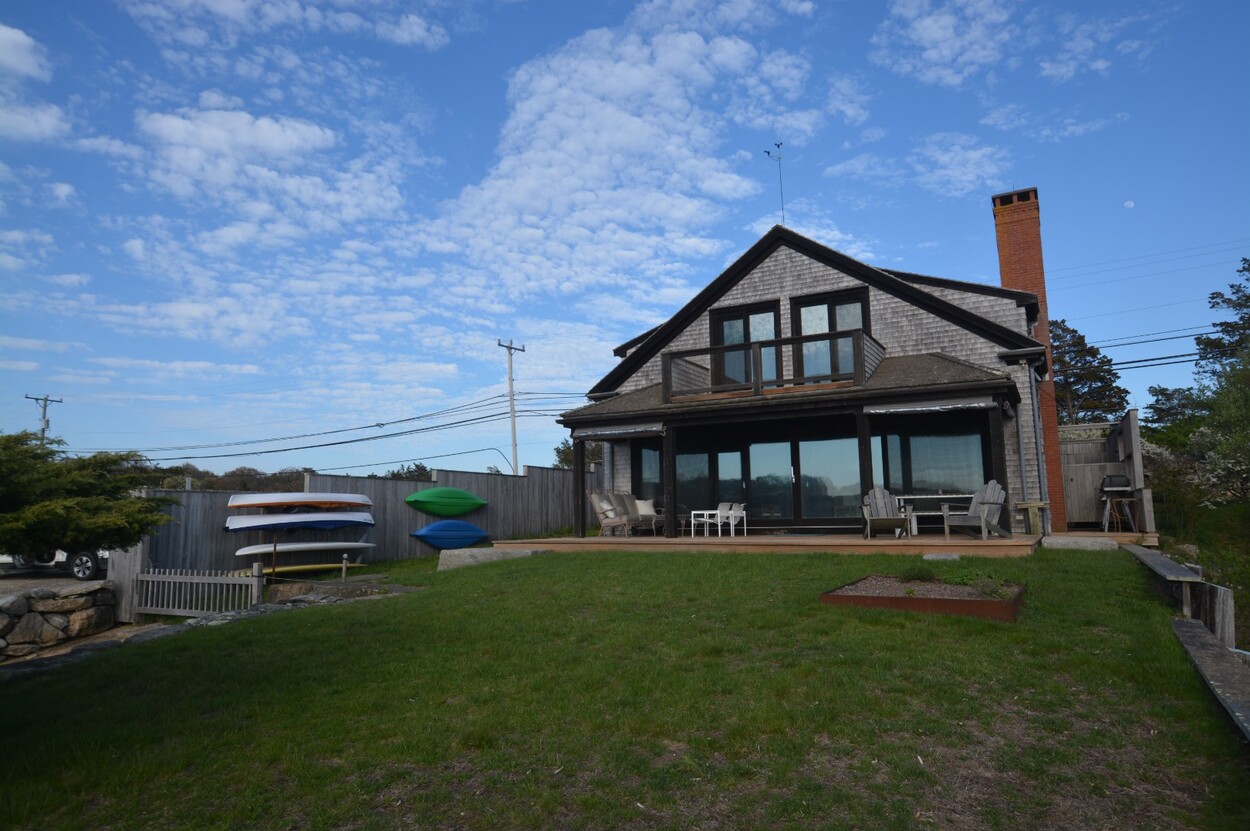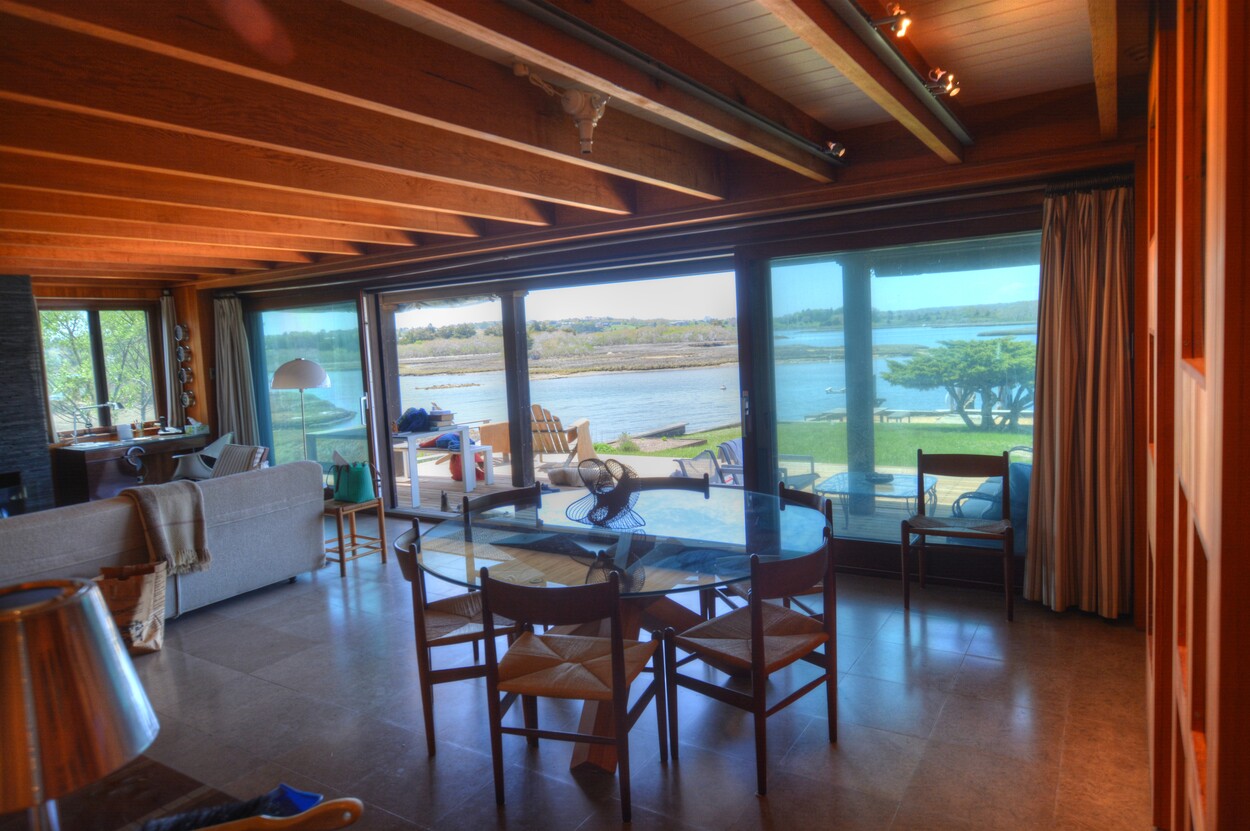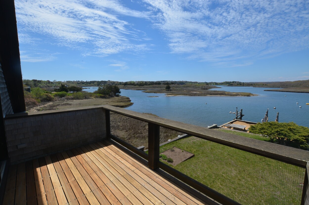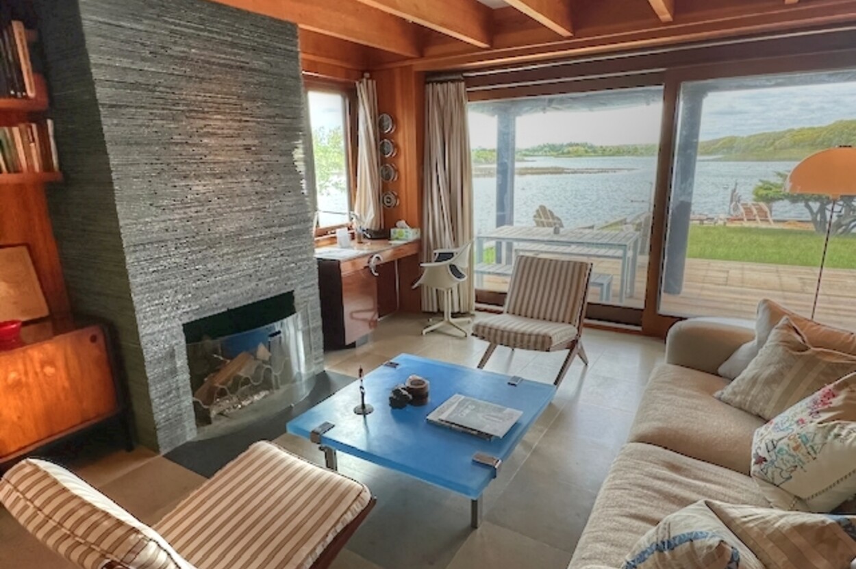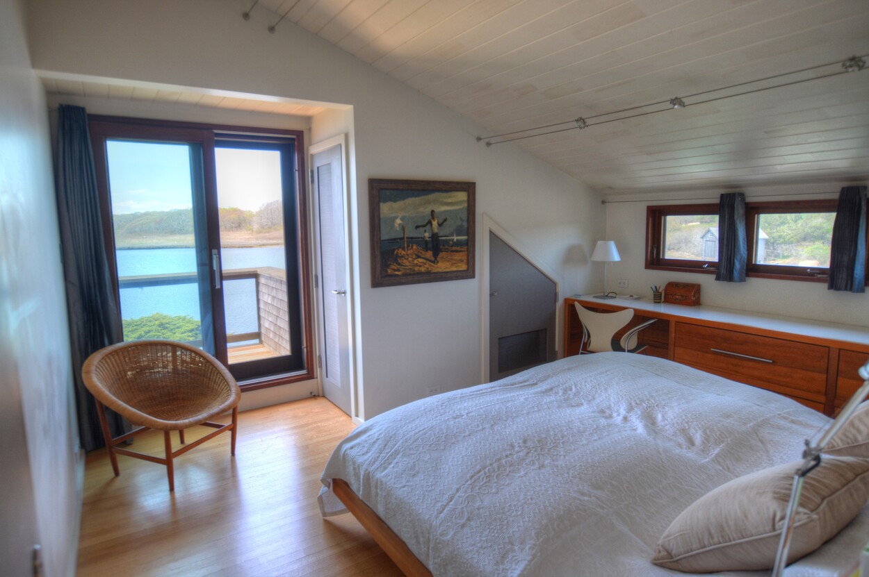 Magical waterfront Quitsa pond cottage with private dock. This home has the most spectacular views including sunsets and an intimate relationship with the charming and timeless waterfront at Quitsa Pond. Designed with the setting in mind this sublime piece of architecture has wonderful spaces, fantastic detail and so much packed into a smaller home. Landscape design by Edwina von Gal accentuates the simplistic beauty of this propery. A unique and inspirational built-in art installation by Andy Goldsworthy adorns the northeastern wall of the living room. A fireplace created with slate roof tiles unlike any other is built into the southwest wall. Custom Will Parry windows and doors throughout with giant floor to ceiling glass doors that slide wide to join the inside and outside of the home bringing the natural beauty of the area into the house. Step outside and onto your private dock with power and water, or walk down your boat ramp into the warm waters of the pond for a swim, kayak or paddleboard adventure. A custom staircase influenced by Frank LLoyd Wright has built-in book cases and metal work by artisan Whit Hanschka which brings you to the upper floor where there are 3 bedrooms and 2 baths. 2 of the bedrooms open out onto a small deck overlooking the pond and all have views of the water. This home is cozy with radiant floor heat under the tile floor