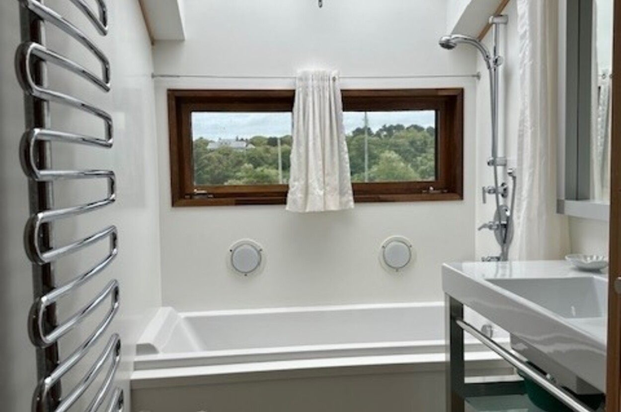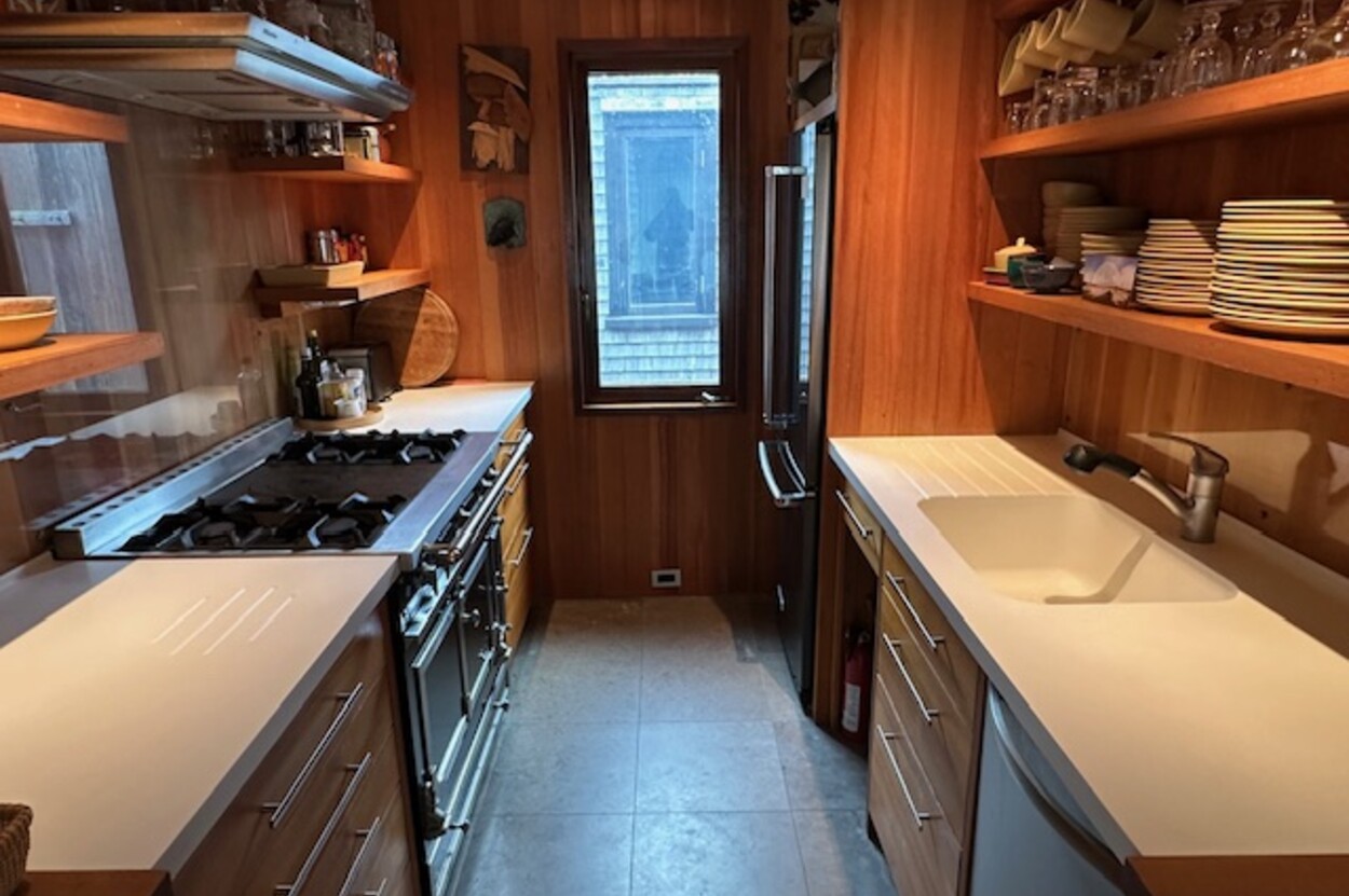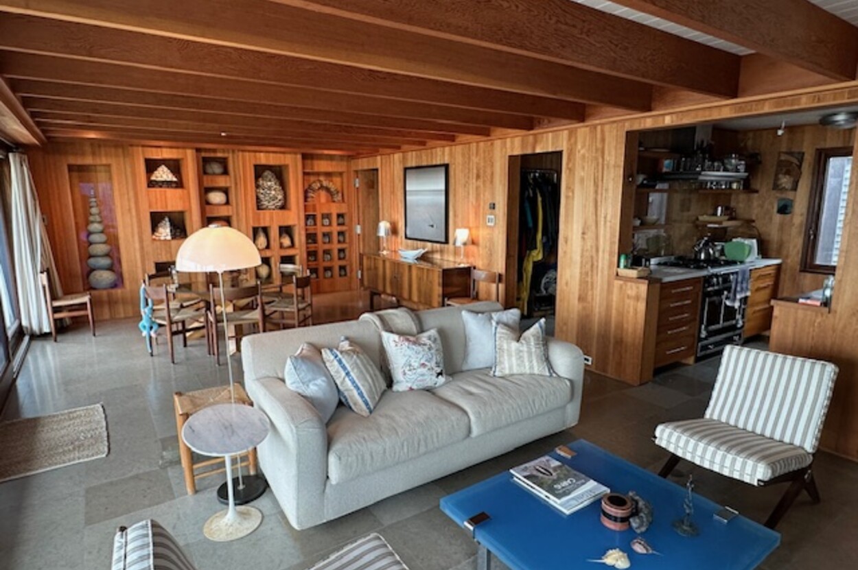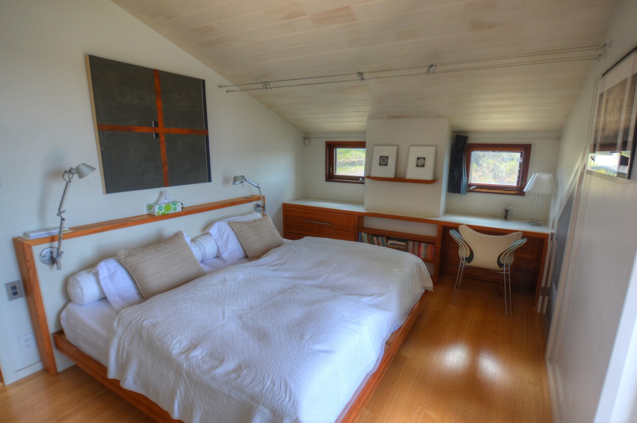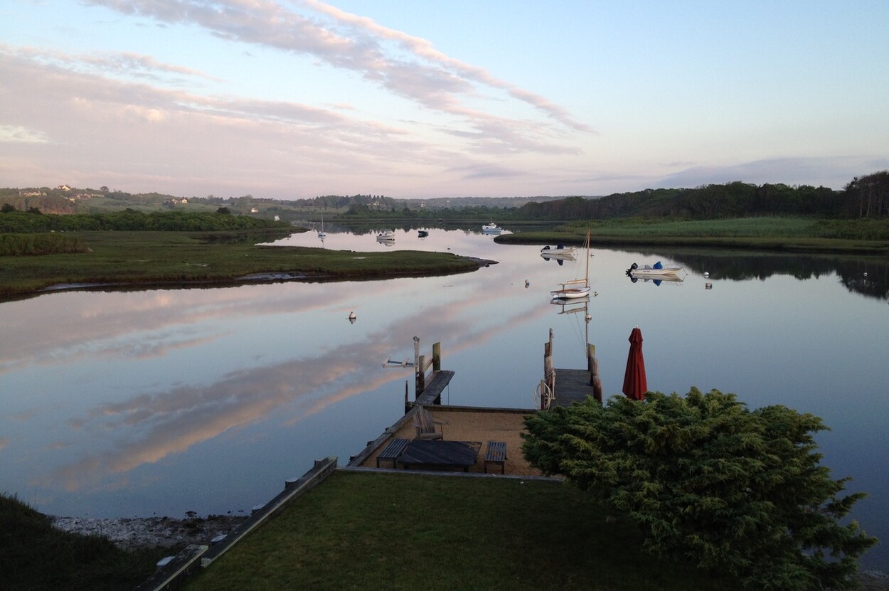 Magical waterfront Quitsa pond cottage with private dock. This home has the most spectacular views including sunsets and an intimate relationship with the charming and timeless waterfront at Quitsa Pond. Designed with the setting in mind this sublime piece of architecture has wonderful spaces, fantastic detail and so much packed into a smaller home. Landscape design by Edwina von Gal accentuates the simplistic beauty of this propery. A unique and inspirational built-in art installation by Andy Goldsworthy adorns the northeastern wall of the living room. A fireplace created with slate roof tiles unlike any other is built into the southwest wall. Custom Will Parry windows and doors throughout with giant floor to ceiling glass doors that slide wide to join the inside and outside of the home bringing the natural beauty of the area into the house. Step outside and onto your private dock with power and water, or walk down your boat ramp into the warm waters of the pond for a swim, kayak or paddleboard adventure. A custom staircase influenced by Frank LLoyd Wright has built-in book cases and metal work by artisan Whit Hanschka which brings you to the upper floor where there are 3 bedrooms and 2 baths. 2 of the bedrooms open out onto a small deck overlooking the pond and all have views of the water. This home is cozy with radiant floor heat under the tile floor