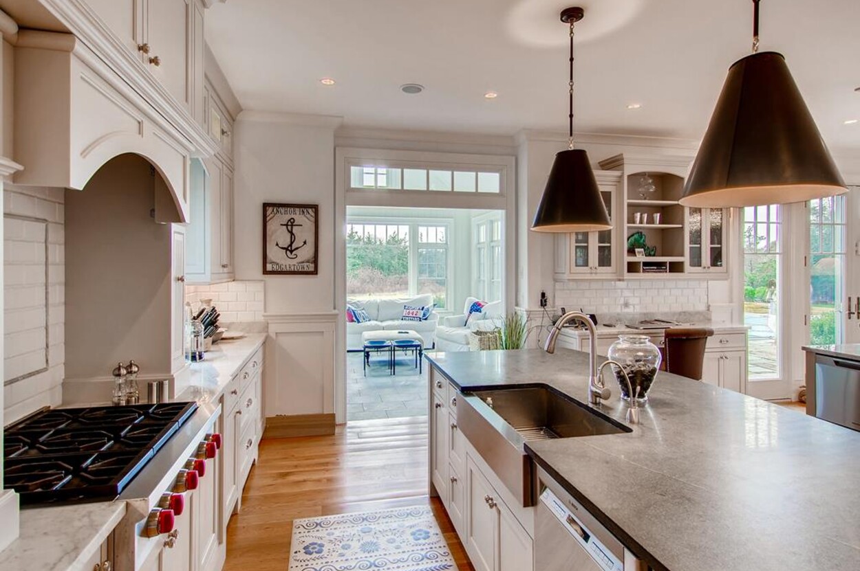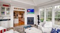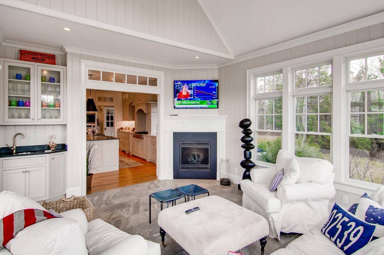 A sweeping circular driveway approach invites you to the 4300 square foot home with open plan living kitchen and dining room, There is a great gourmet kitchen with high end appliances, breakfast bar and adjacent sun room/tv room and bar and door to the pool. A second media room offers a 60 inch TV with surround sound and plenty of spaces for your family to enjoy. This 5 bedroom 4.5 bath property can accommodate 8/10 people comfortably. The private first floor primary bedroom has private bath and doors to the pool and patio outside. There is a second primary bedroom/bath on the 2nd floor with private balcony overlooking the pool 2 further bedrooms on the second floor each have private baths too. The 5th bedroom is accessible through a slider from the second floor across a sun deck. This additional space has a half bath with access to the outside shower and is perfect for a nanny or for your teenager. This is a really comfortable high end home, with lovely furnishings and spaces for everyone to enjoy both the interior and exterior. Enjoy an afternoon by the heated swimming pool, with plenty of lounge chairs and exterior seating, fire-pit, outdoor grill. Central AC, SONOS and strong Wi-Fi throughout the home.