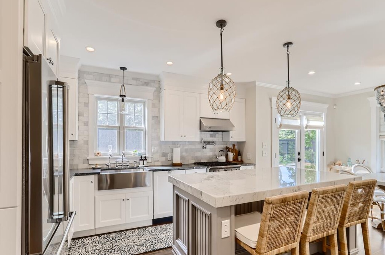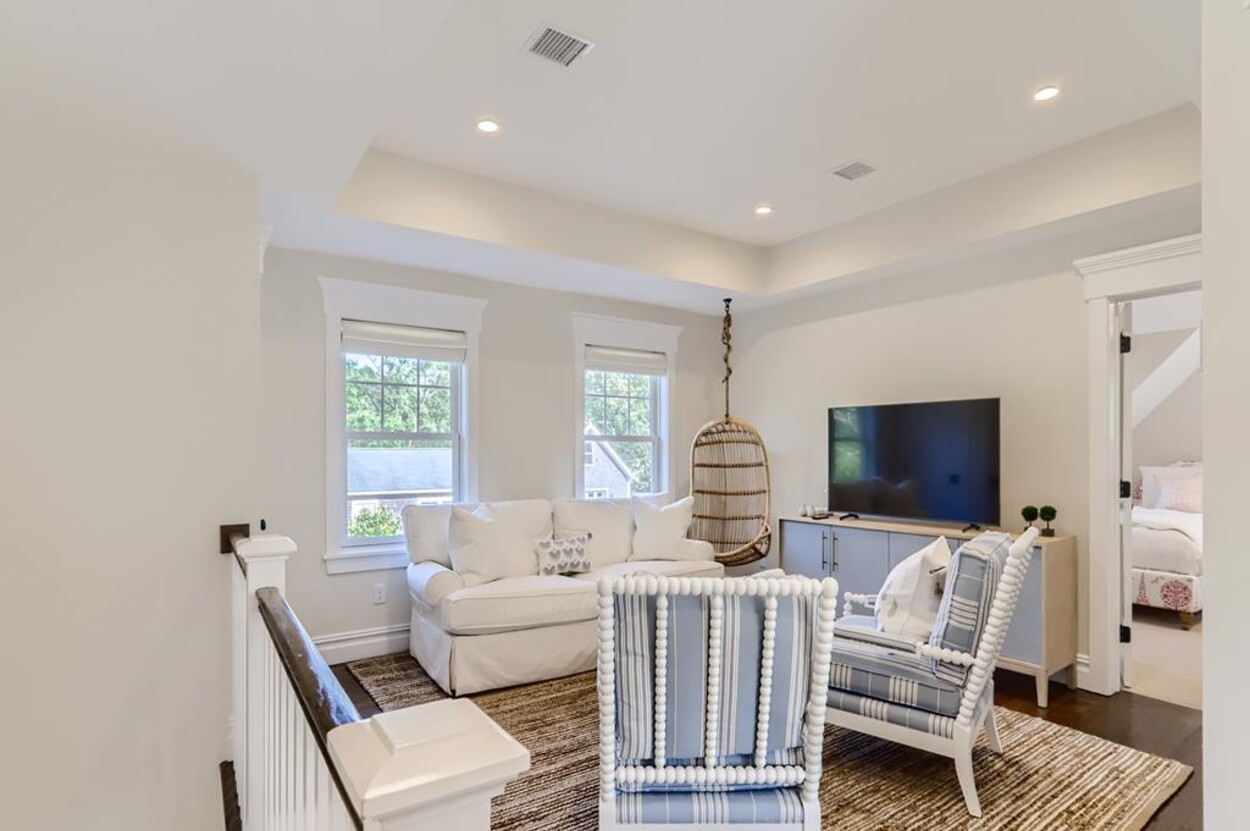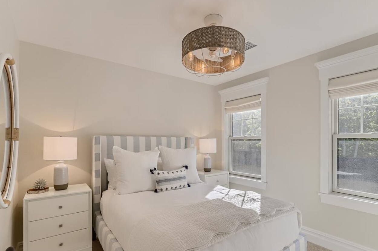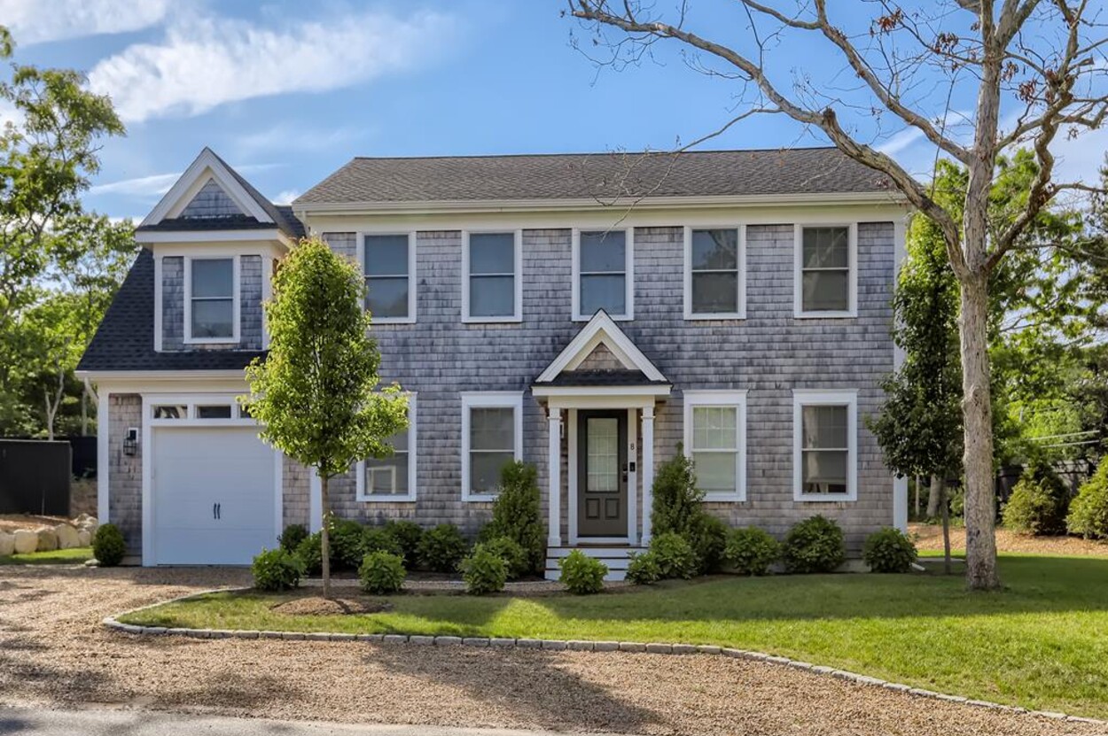 Close to town, this newly constructed Edgartown home offers gracious, elegant summer living. Professionally decorated with an open and spacious first floor featuring a chef s kitchen with Carrara marble and Viking appliances, a formal dining space, powder room, laundry and inviting living room with a gas fireplace. French doors off the kitchen open to a back deck, perfectly set up for outdoor entertaining. The large fenced backyard and outdoor shower are off the furnished deck. The second floor has a large primary bedroom with king sized bed and private ensuite bathroom, in addition there are two generous guest bedrooms, one with an ensuite bath, the other uses the well appointed hall bathroom. The second floor also offers a cozy TV space. Half a mile to Sengekontacket, boat launch & short drive or bike ride to downtown and State or South Beach this is a perfect location for summer visitors looking to enjoy all the best beach fun, shopping, and dining experience that the Vineyard has to offer!
